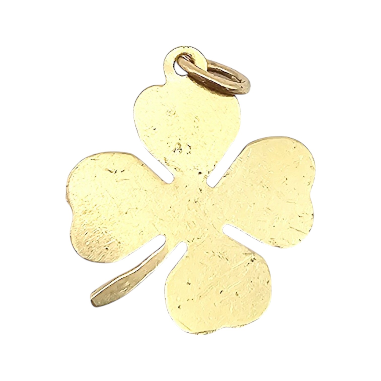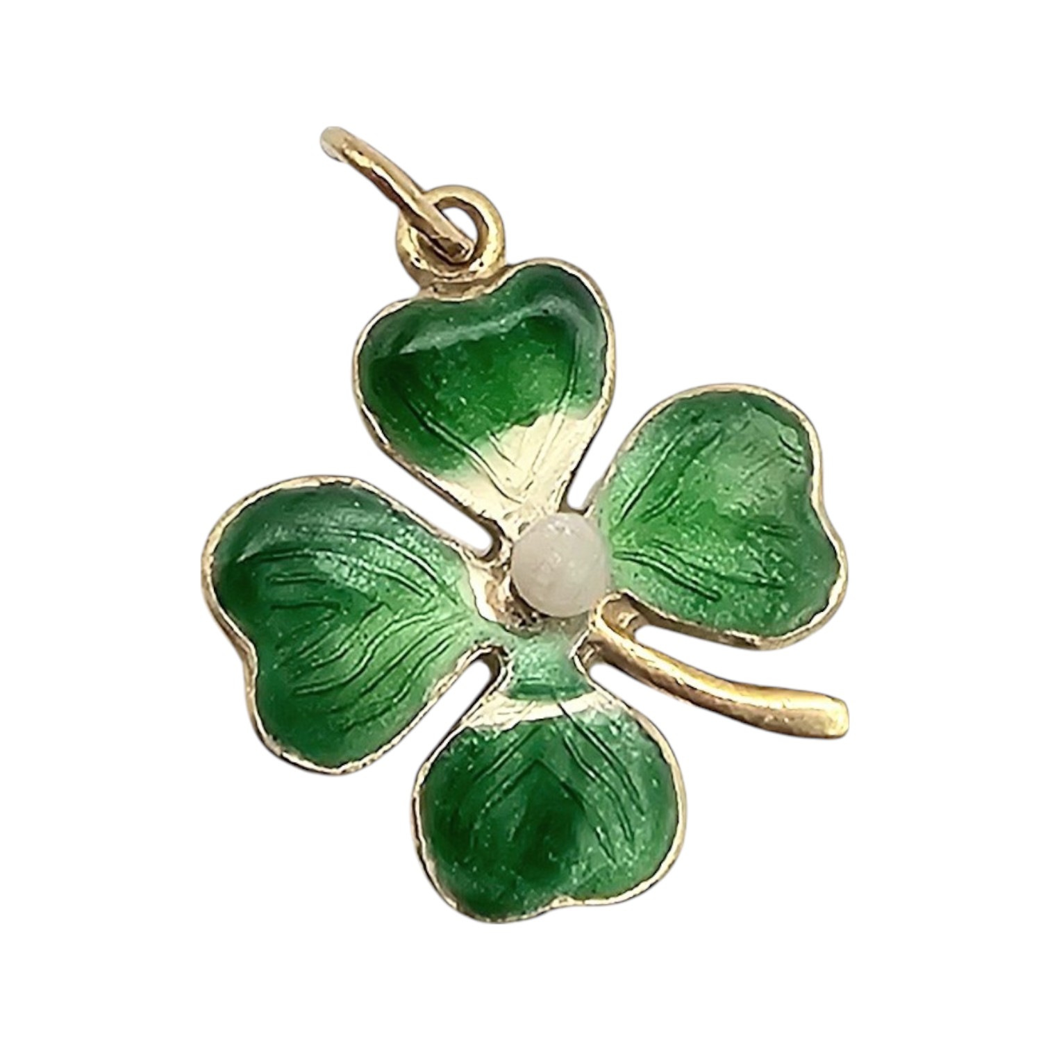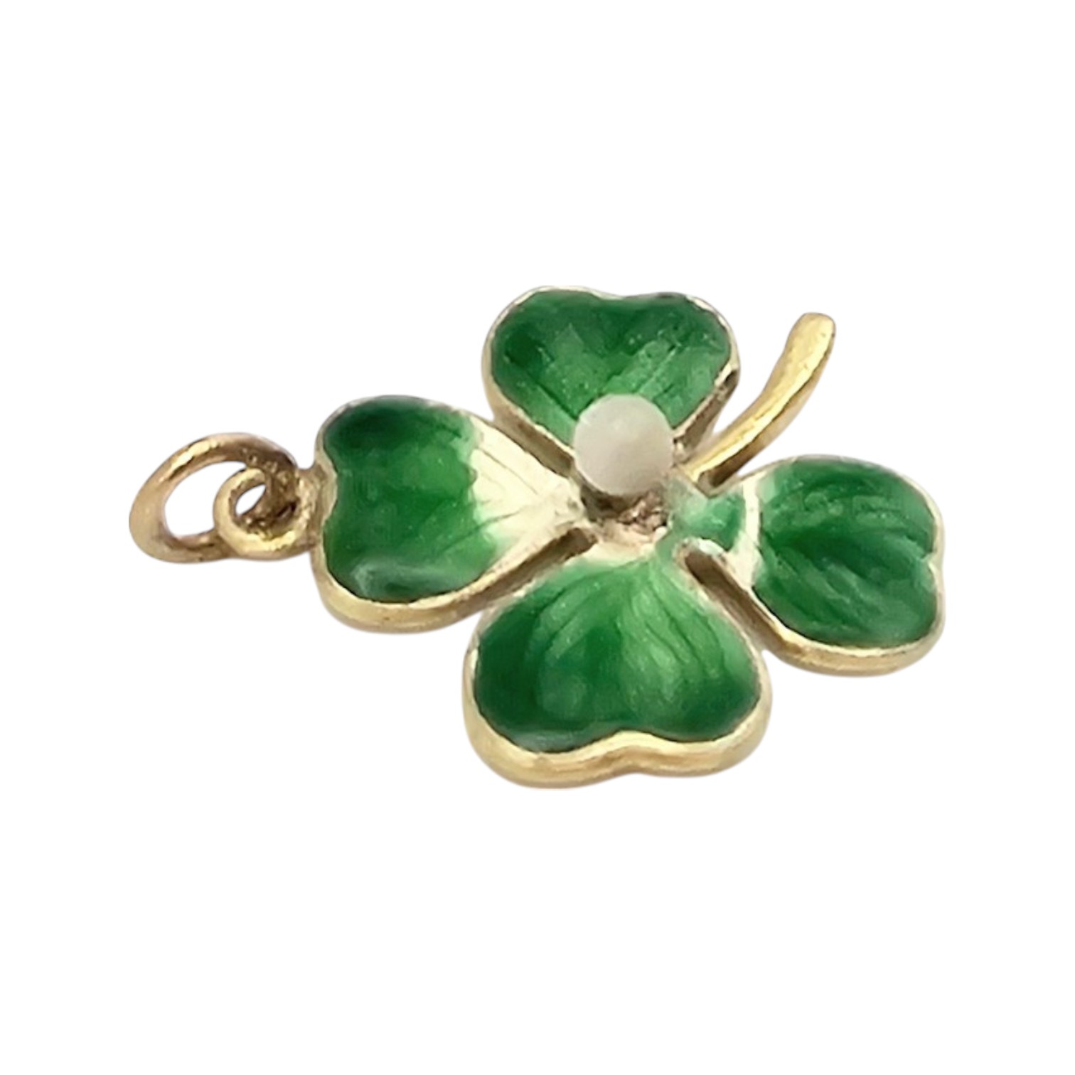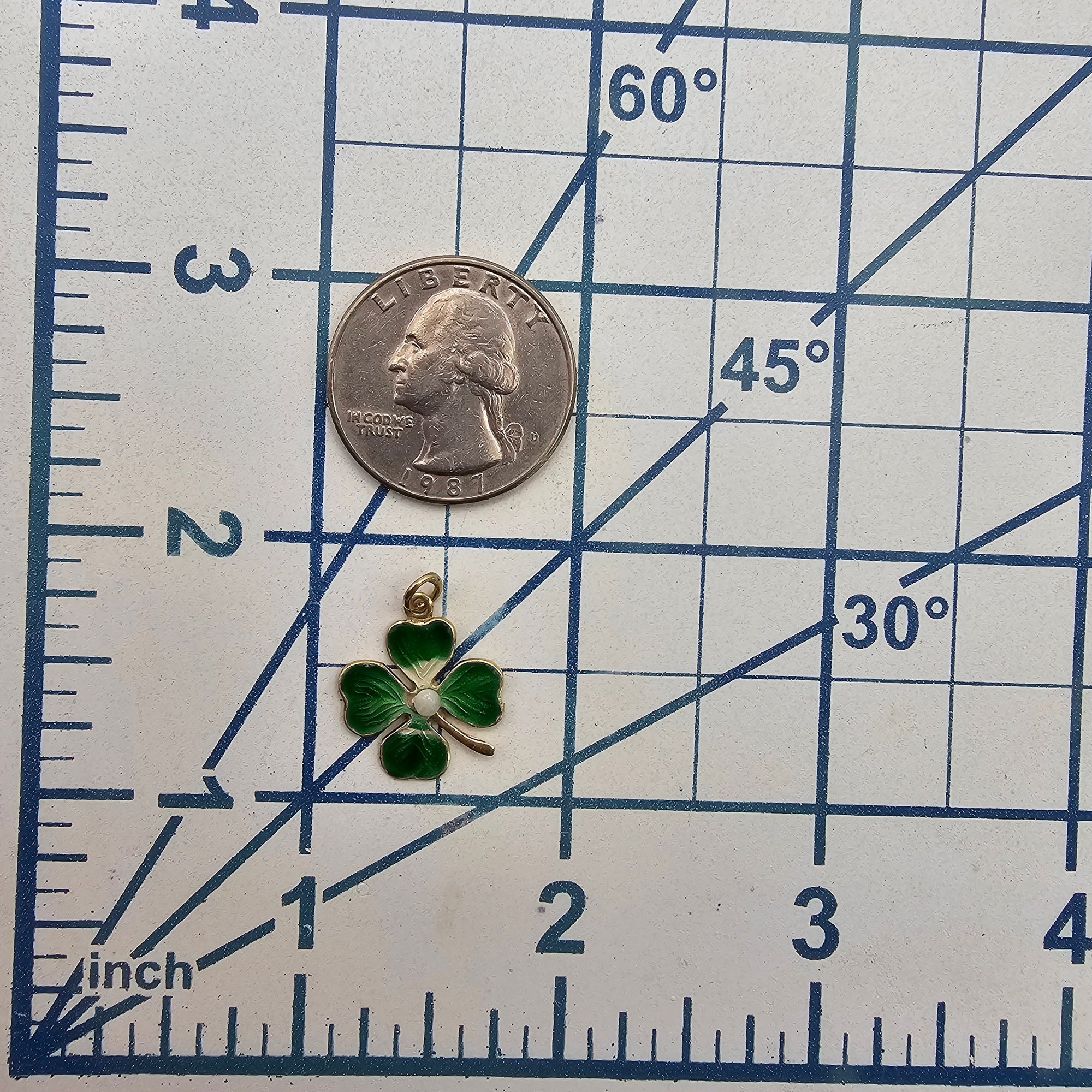 Signed 14K Gold Seed Pearl Enamel Four Leaf Clover Pendant 1.5 G