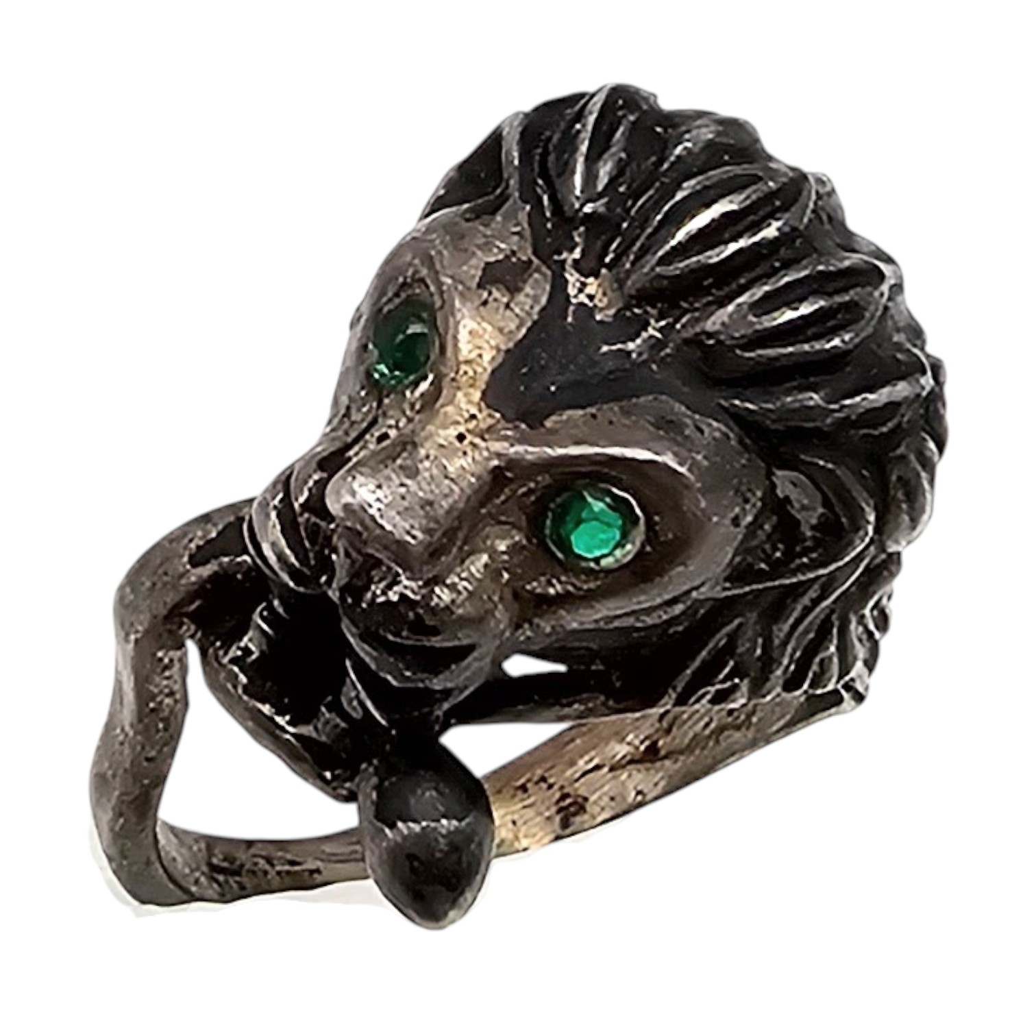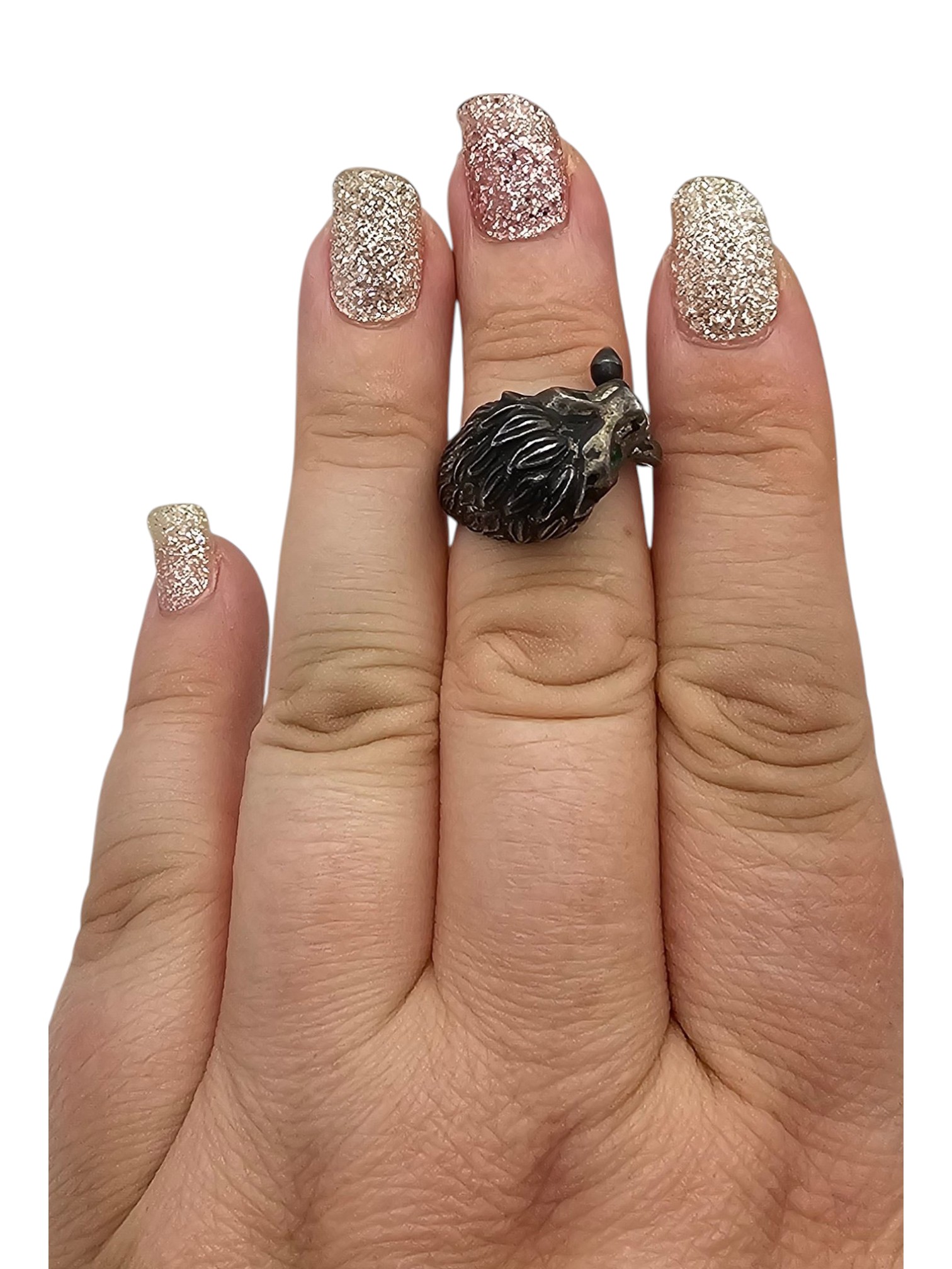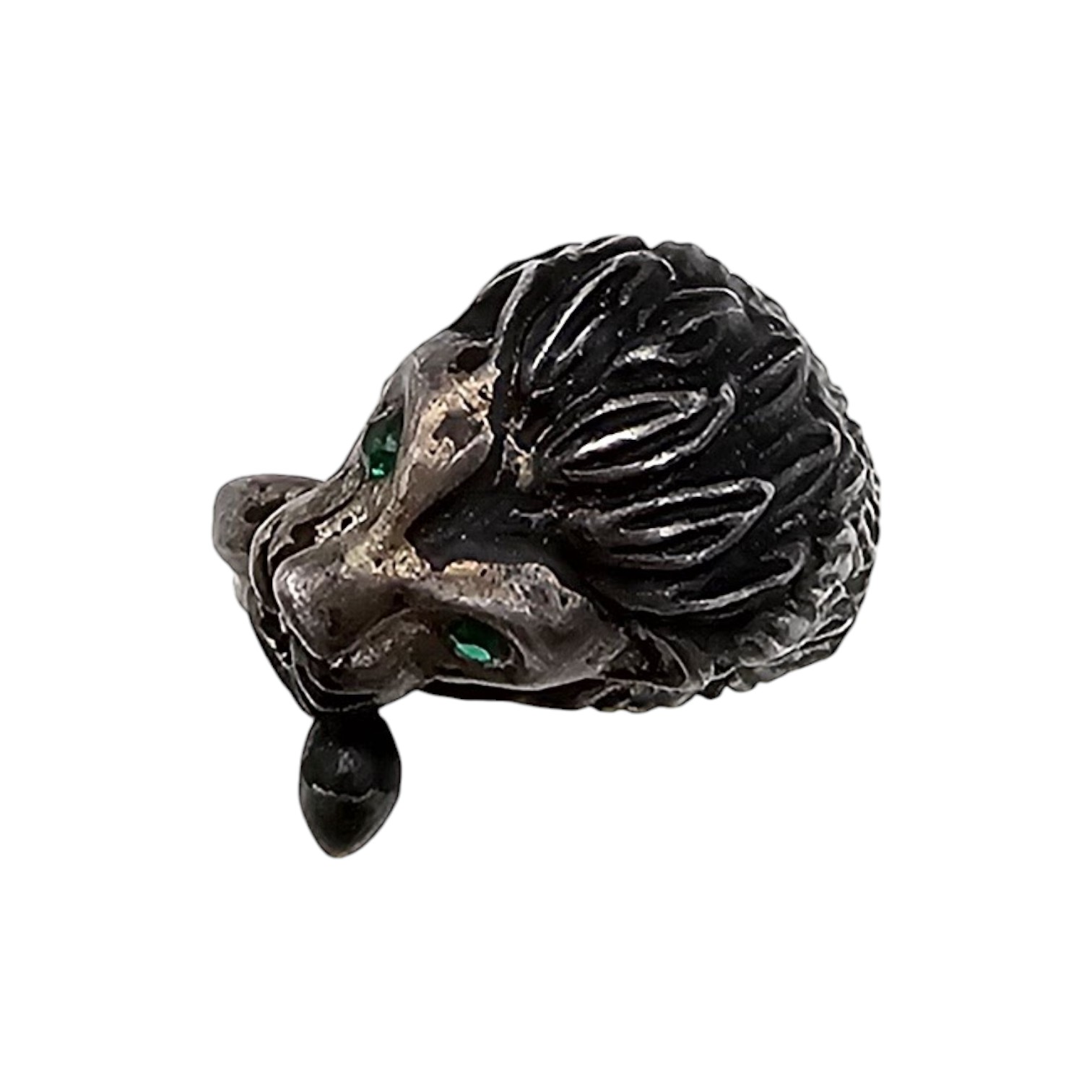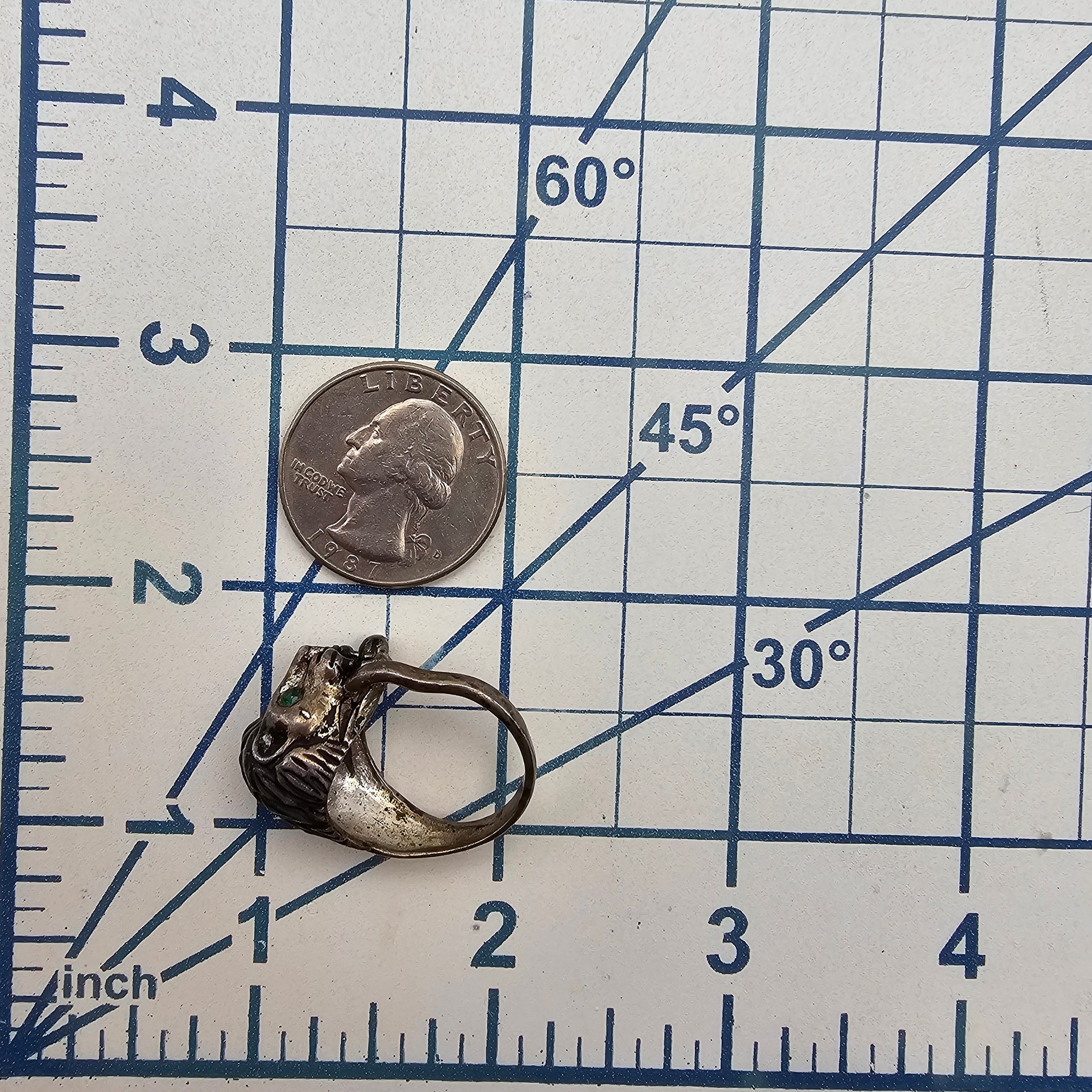 Rhinestone Sterling Silver Lion Ring Size 6.5 7.8 G