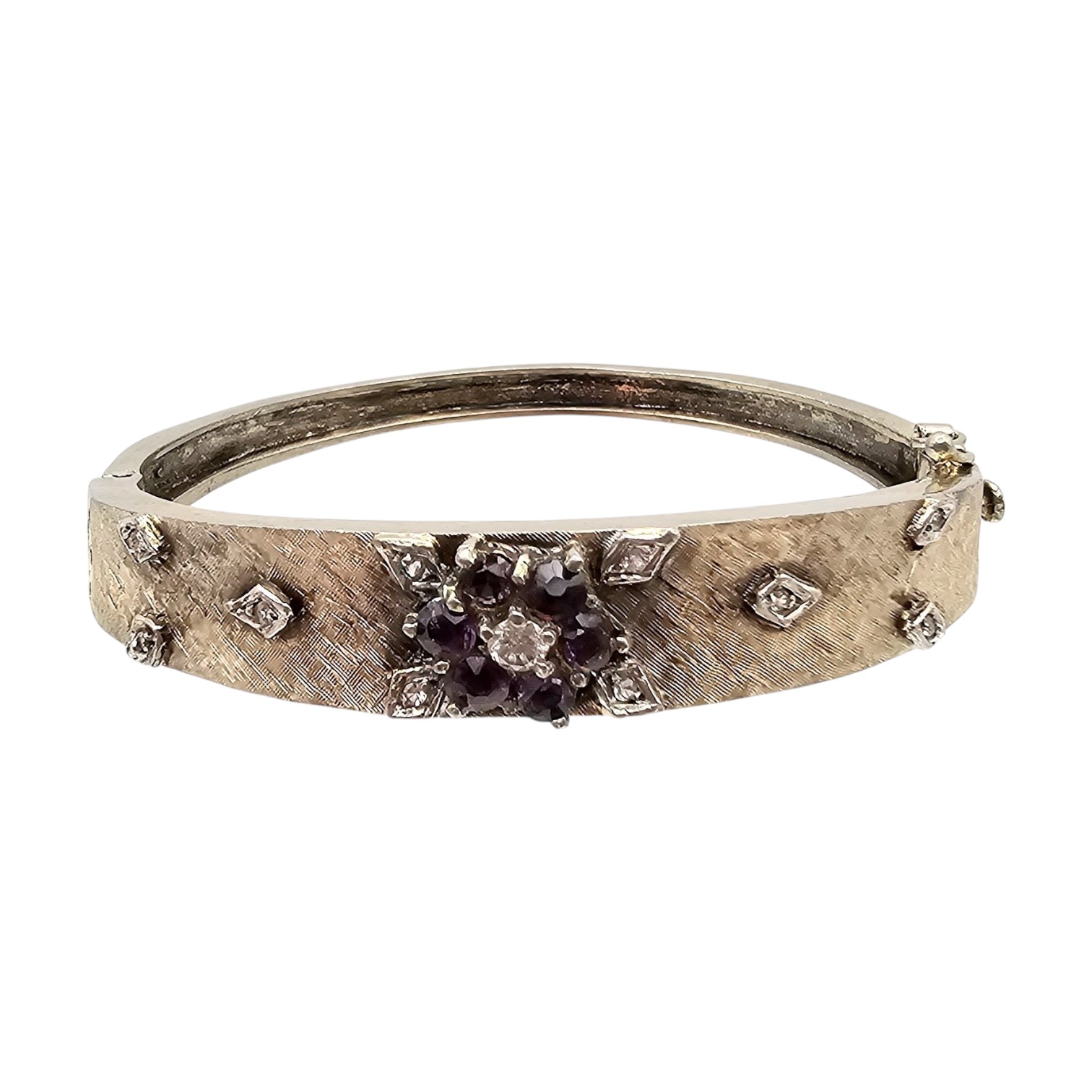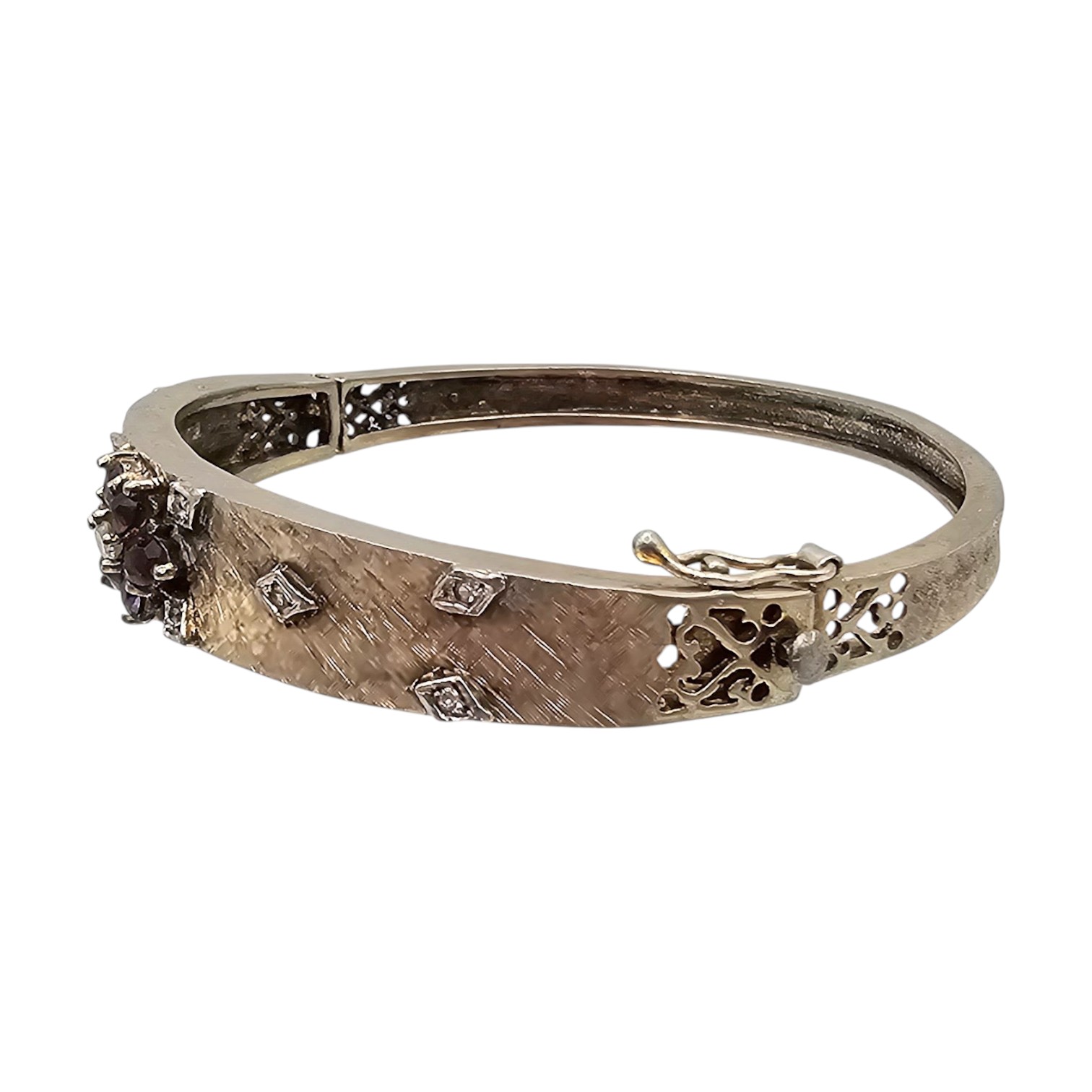 Rhinestone Sterling Silver Hinge Bangle Bracelet 18 G