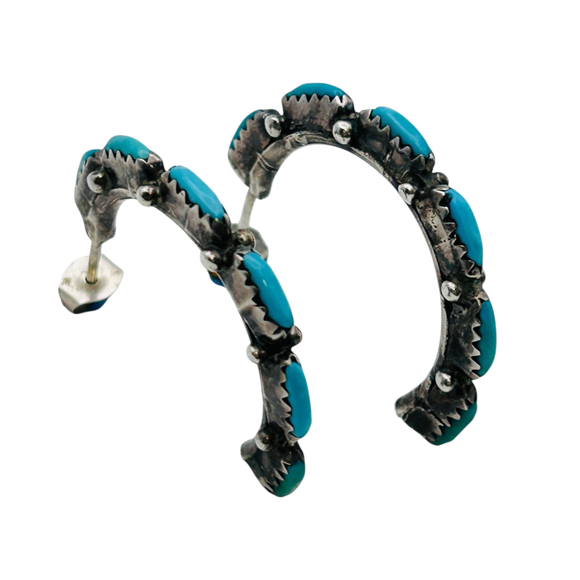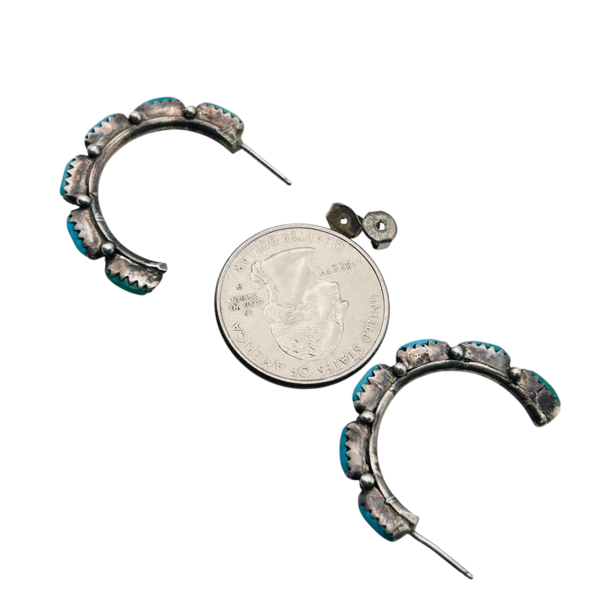 Zuni Sterling turquoise half hoop earrings 5.99 g