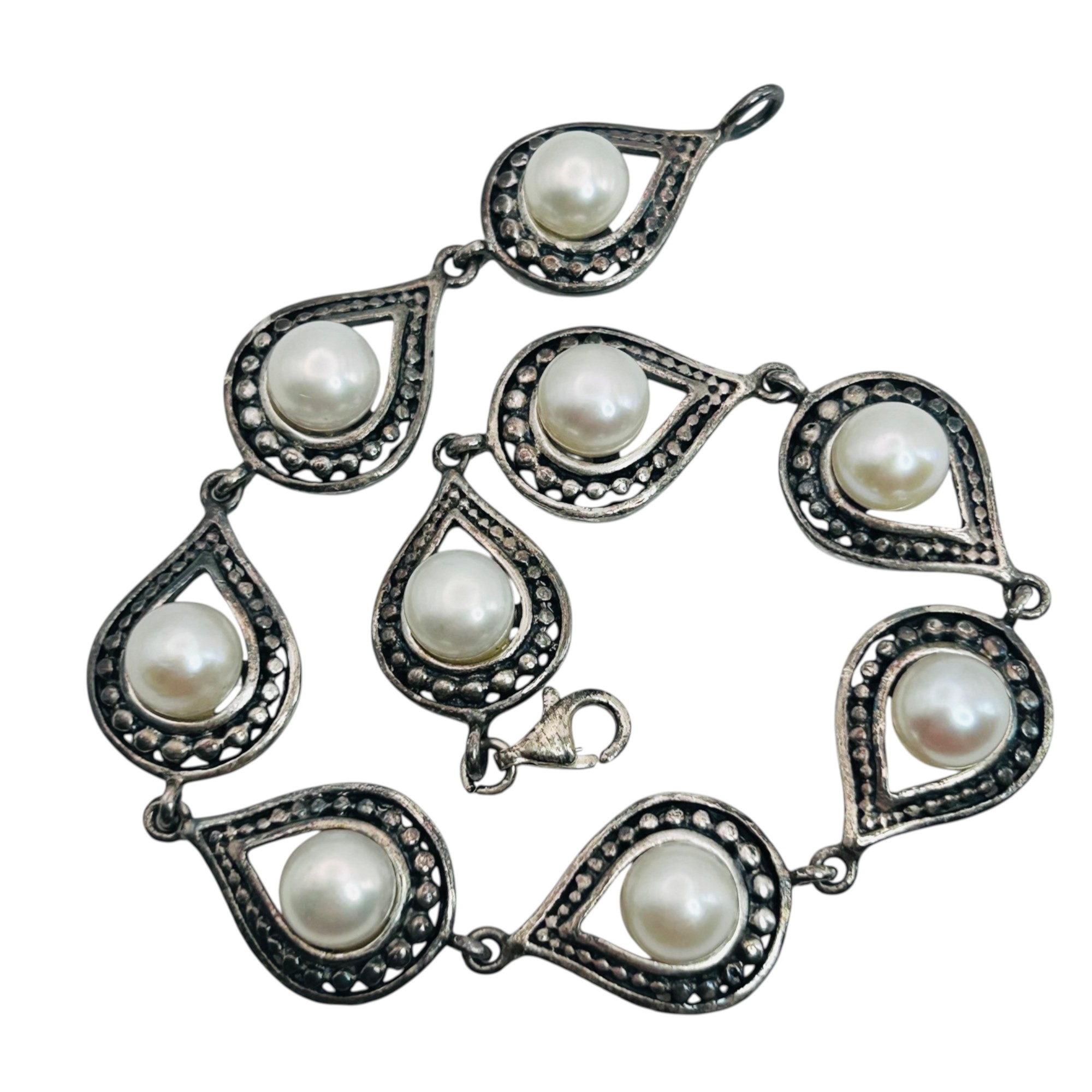 CFJ Pearl Sterling oval linked bracelet 14.85 g