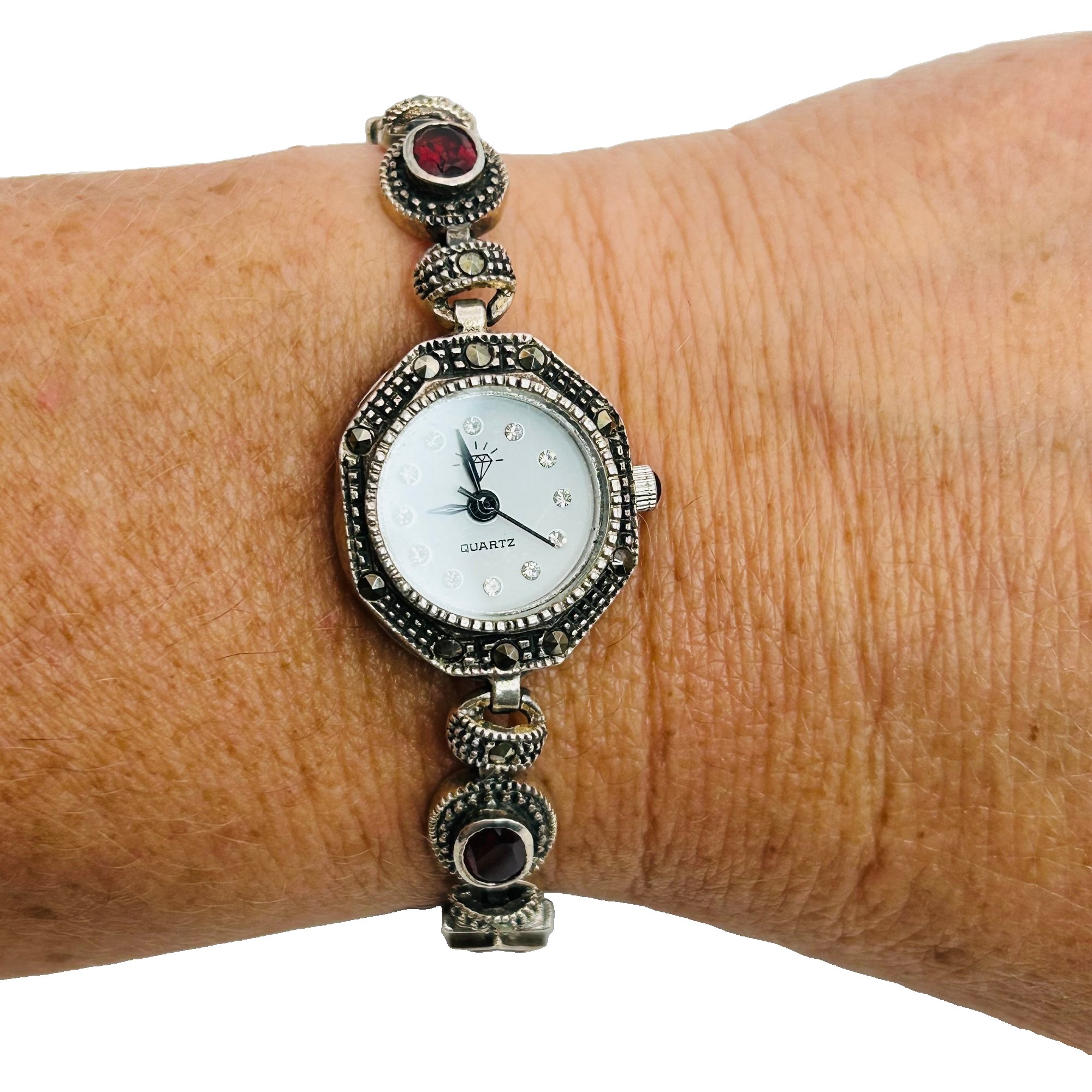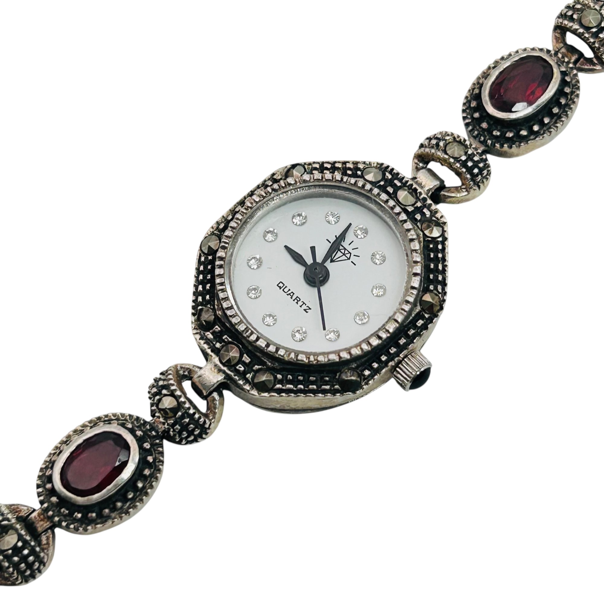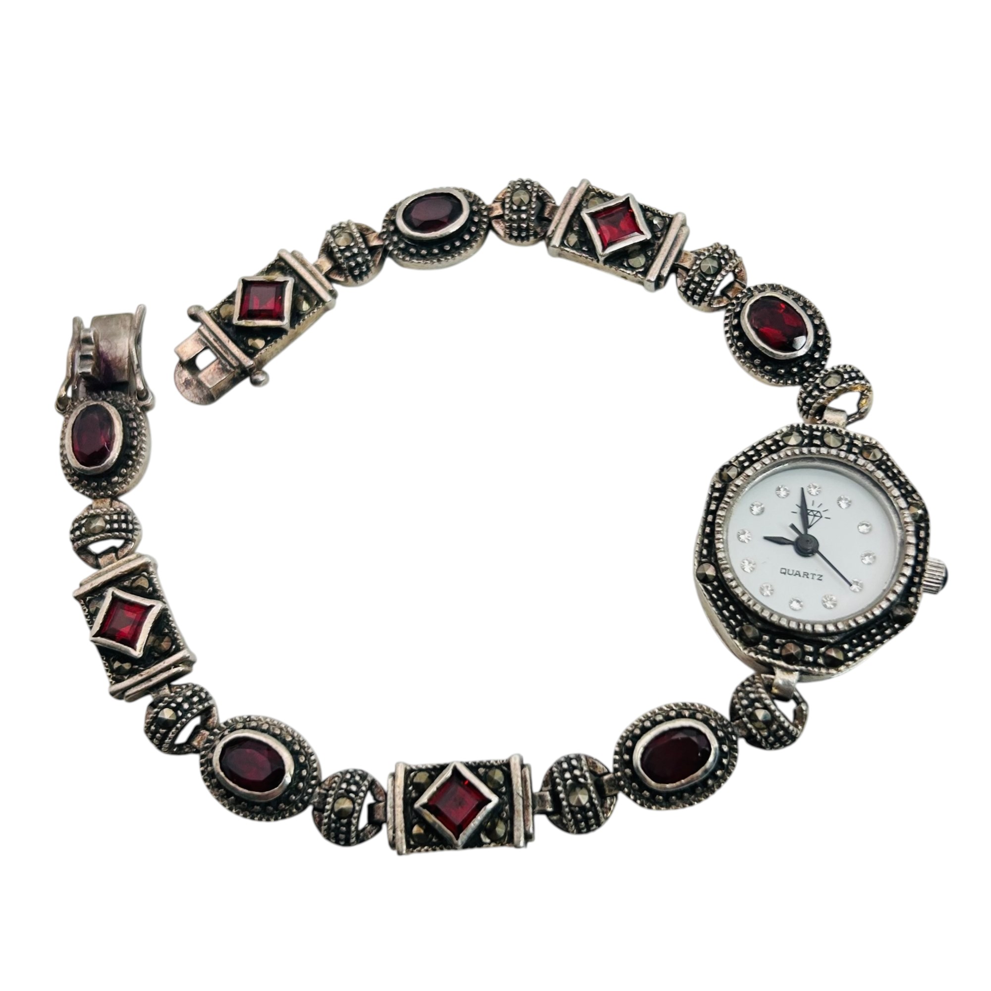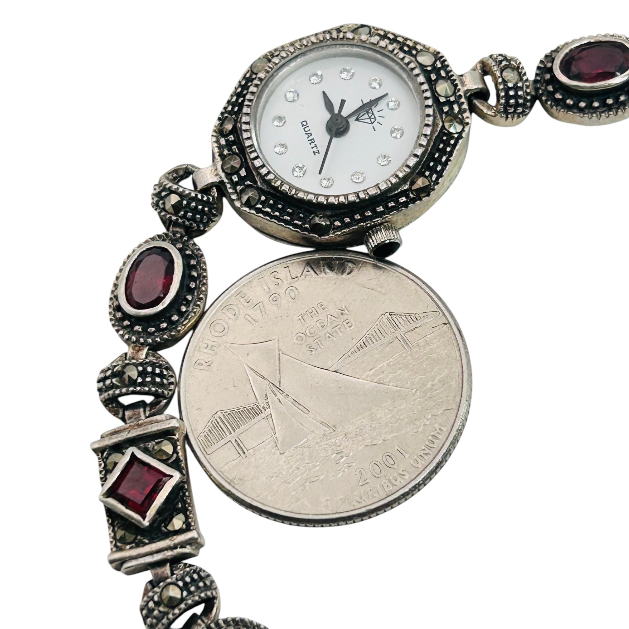 DBJ Japan quartz Sterling Garnet marcasite watch 23.56 g