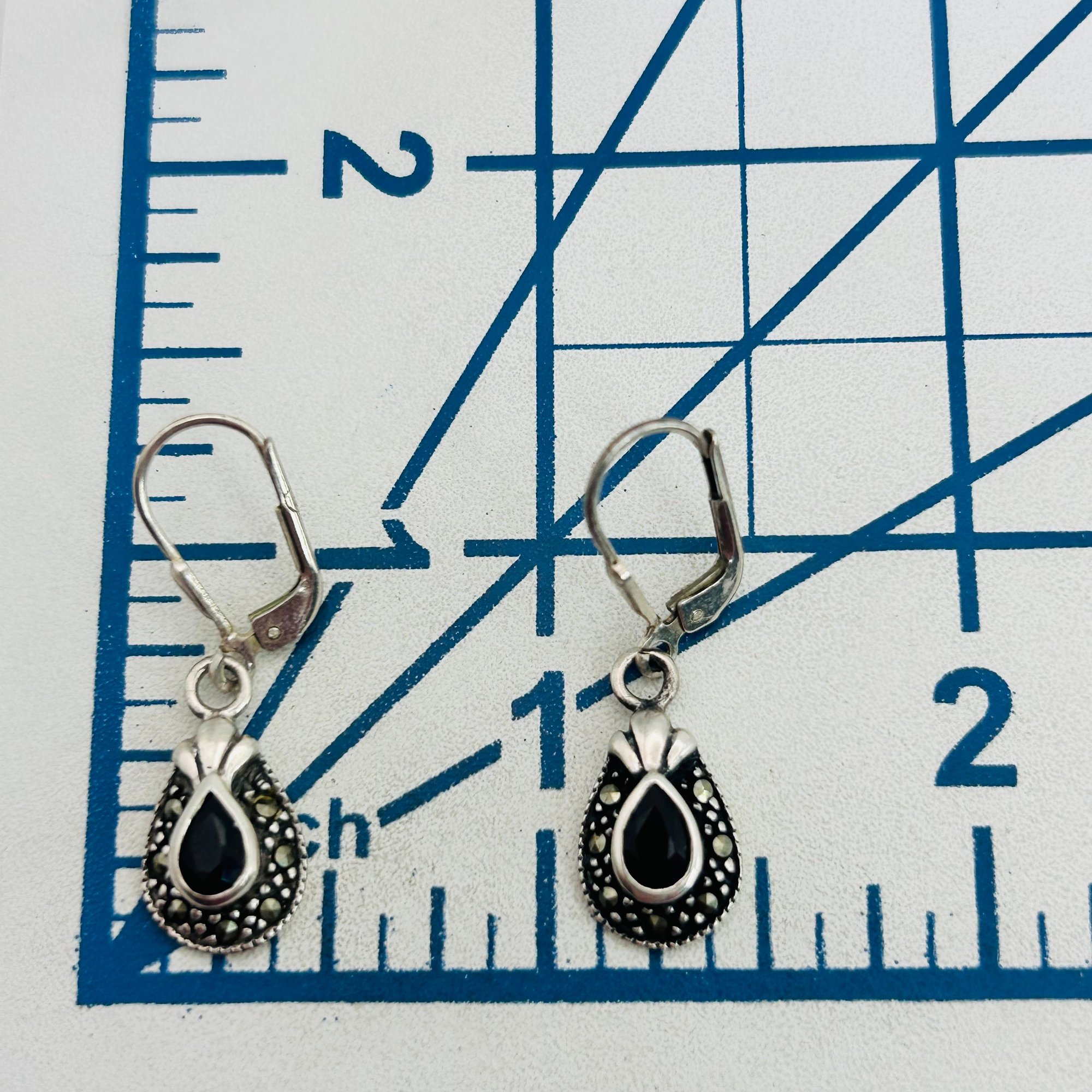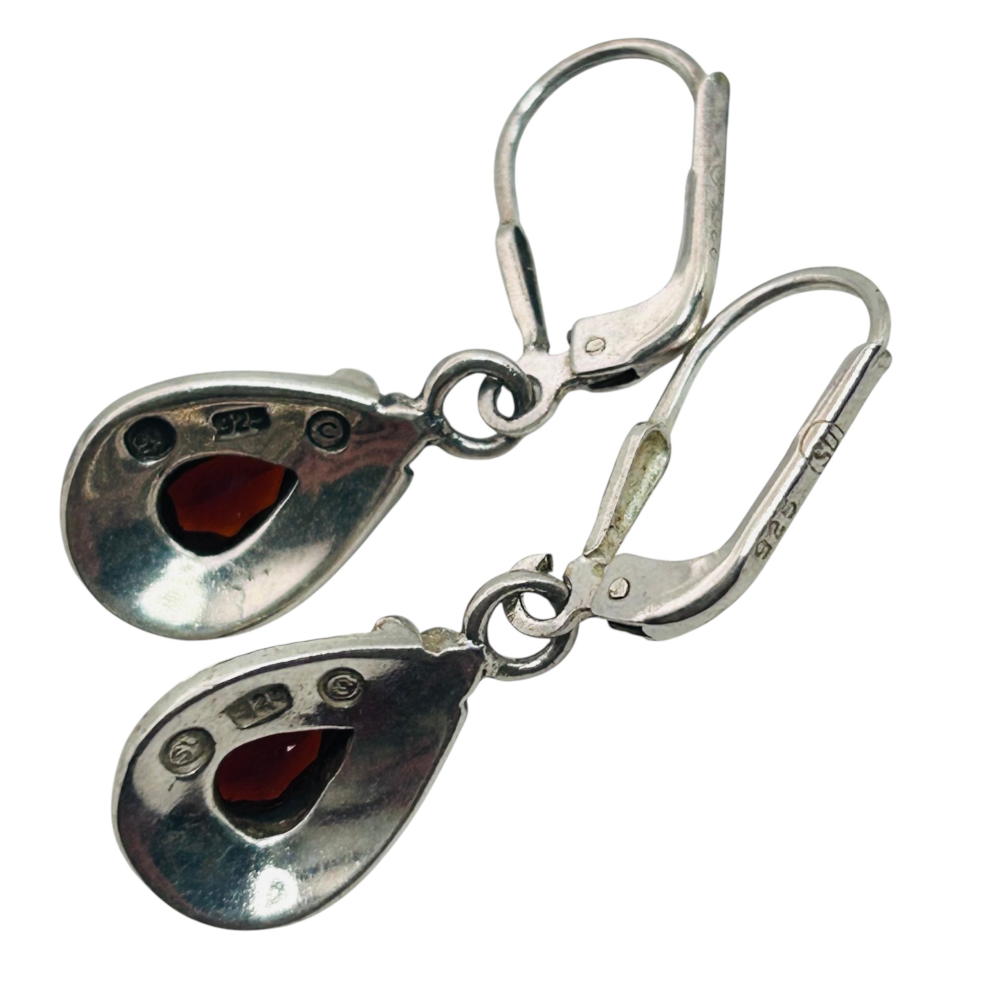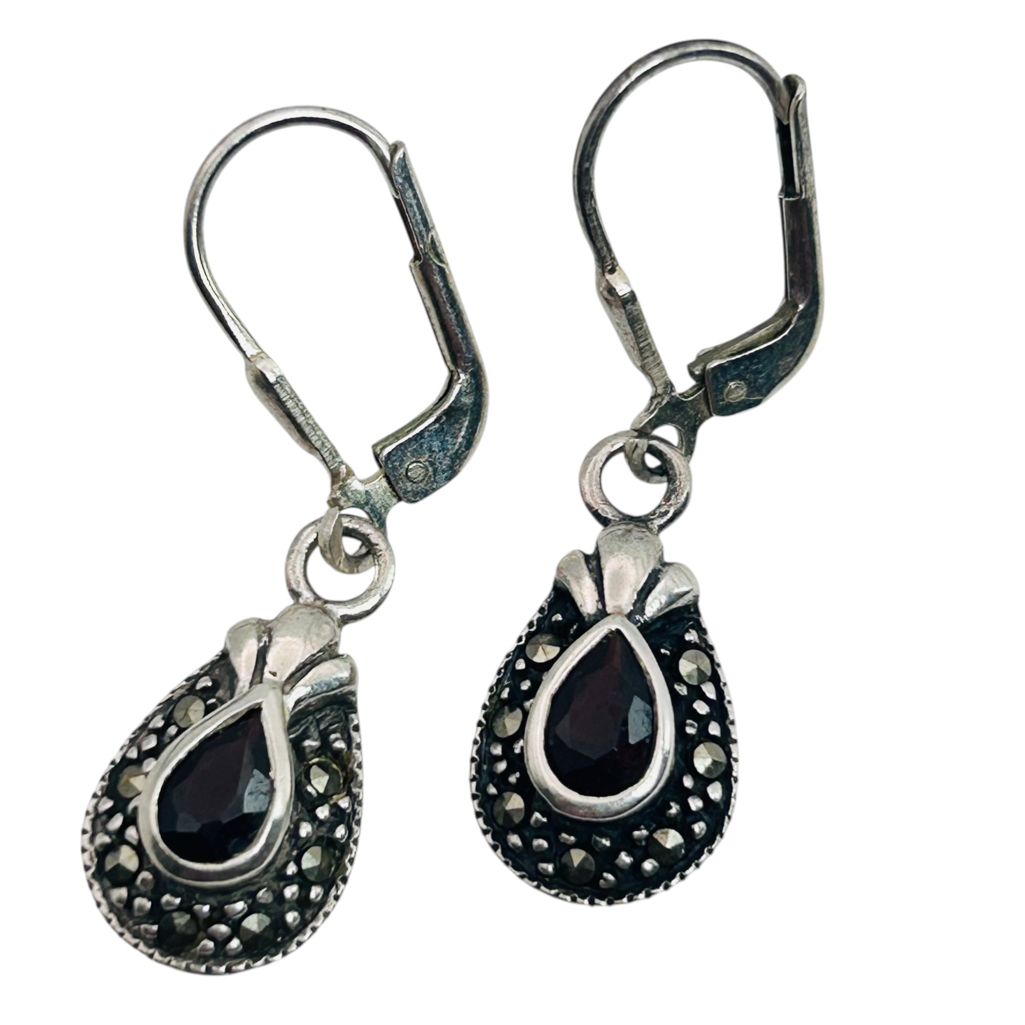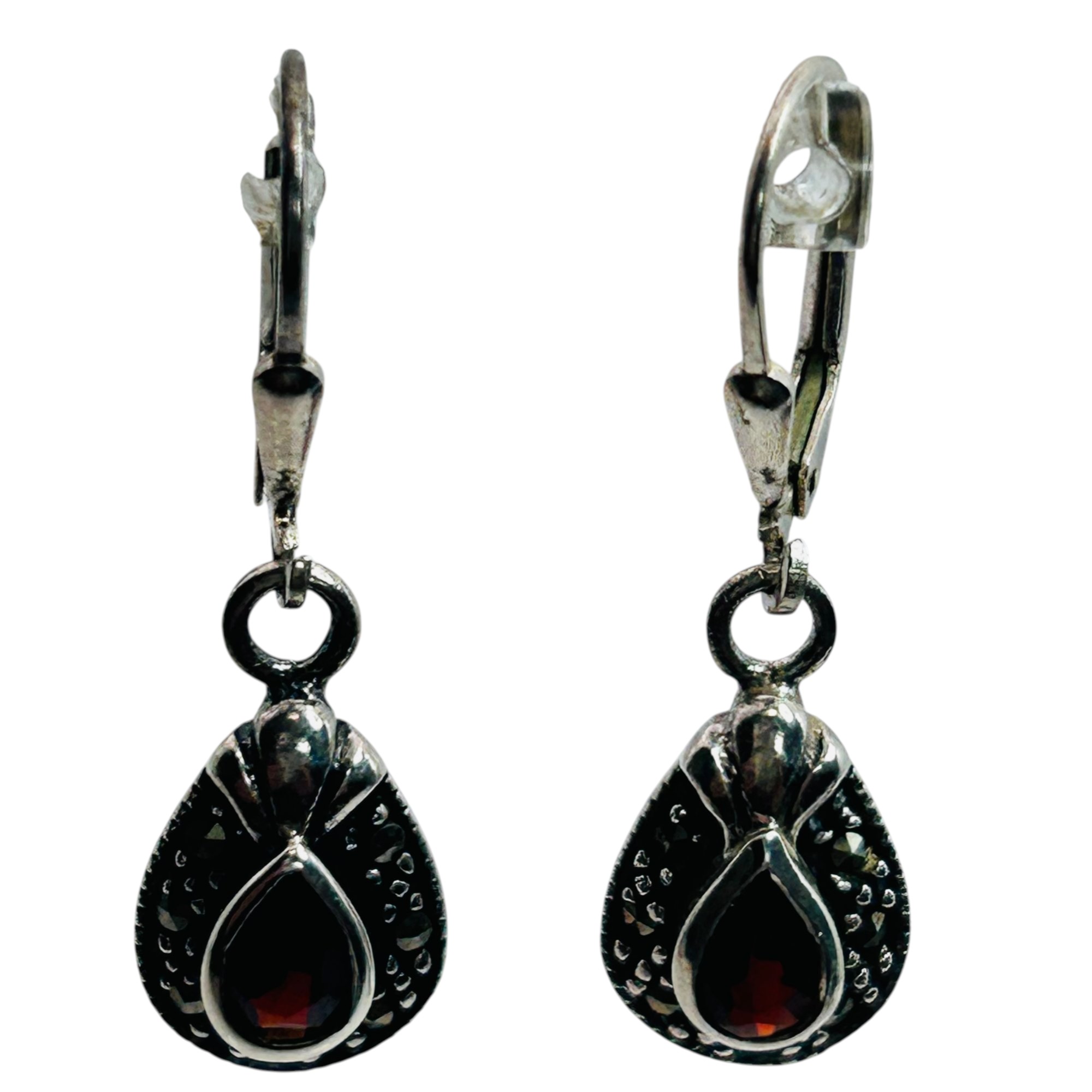 SU Garnet and marcasite Sterling jacket dangle earrings 3.5 g