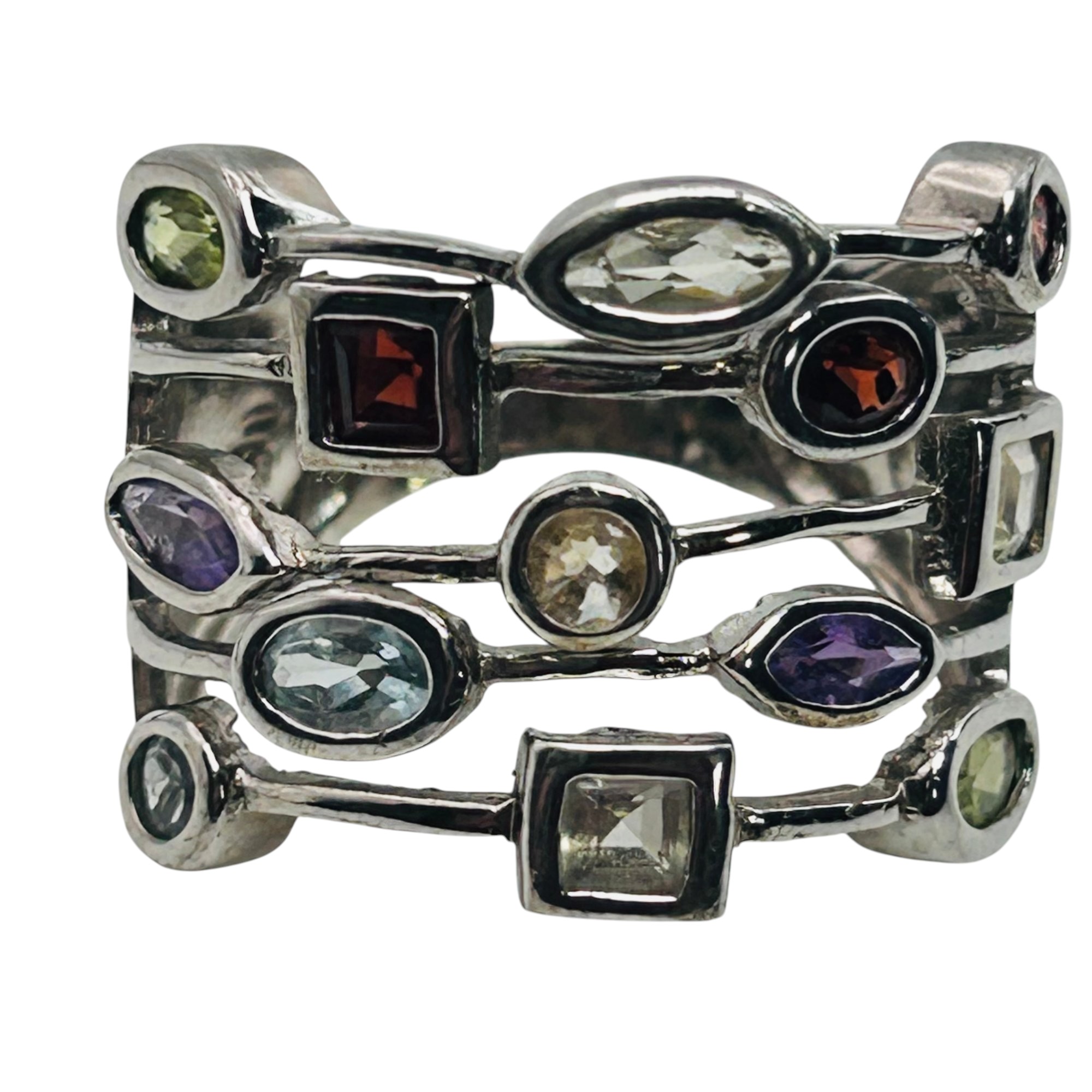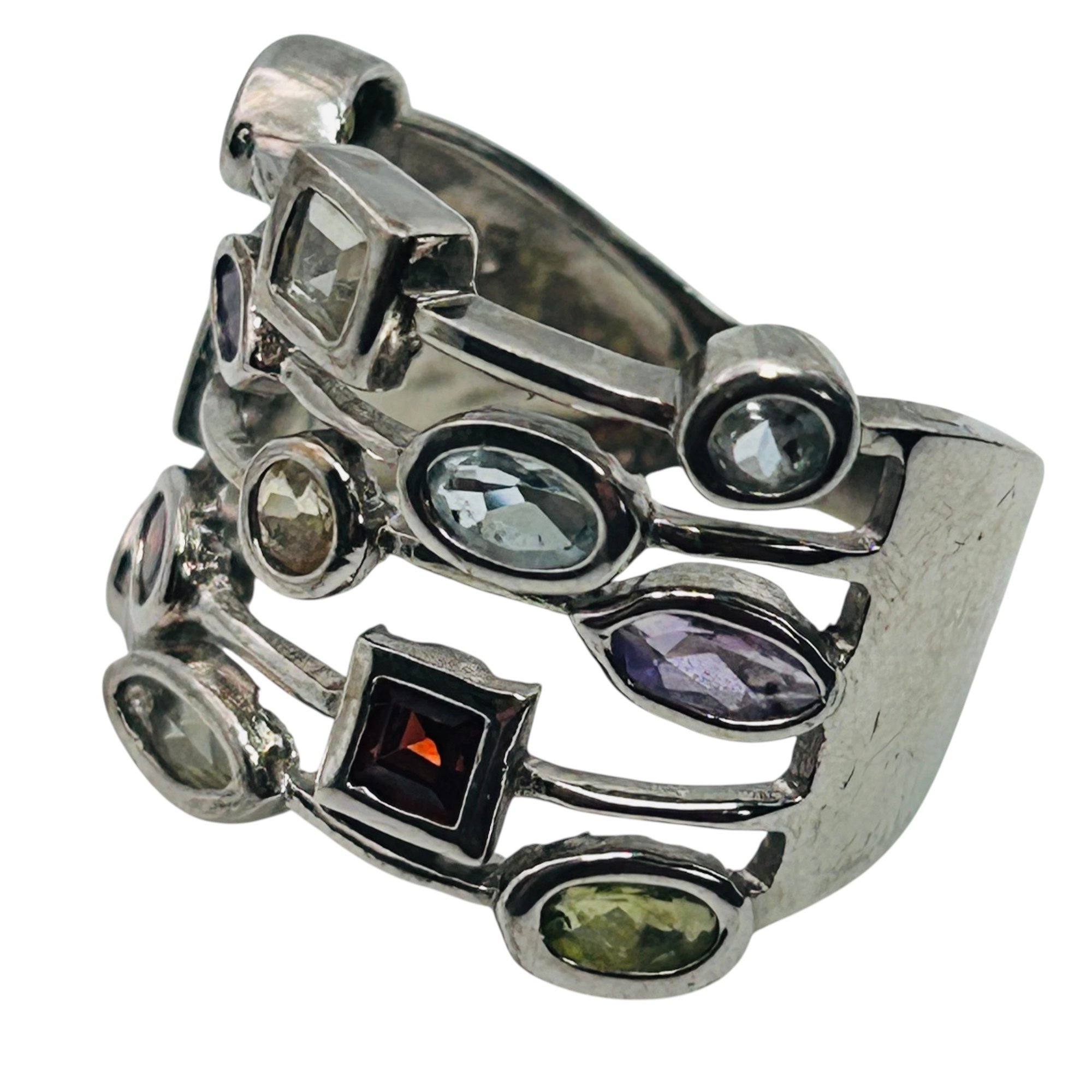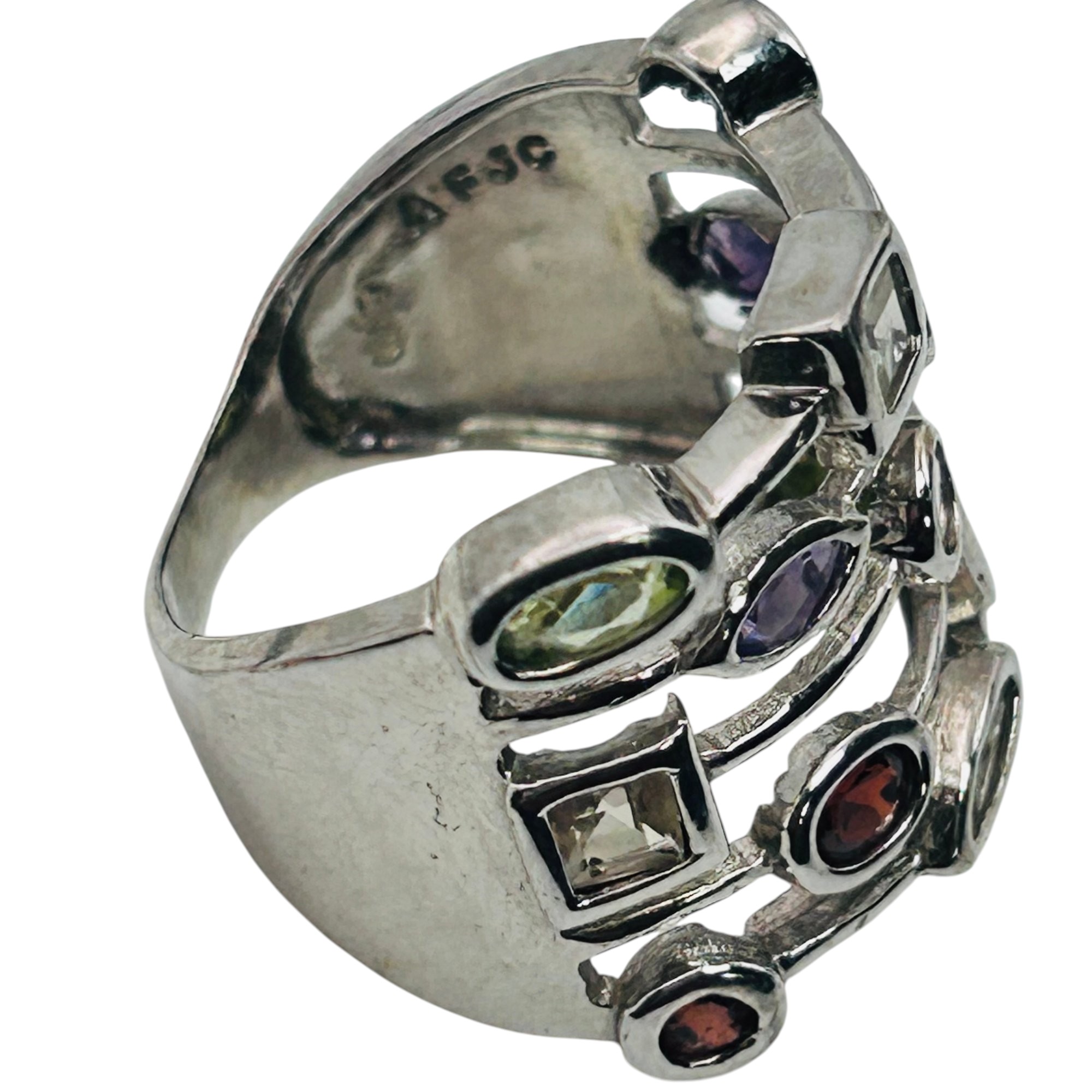 AFJC multi gemstone Sterling ring size 7 4.71 g