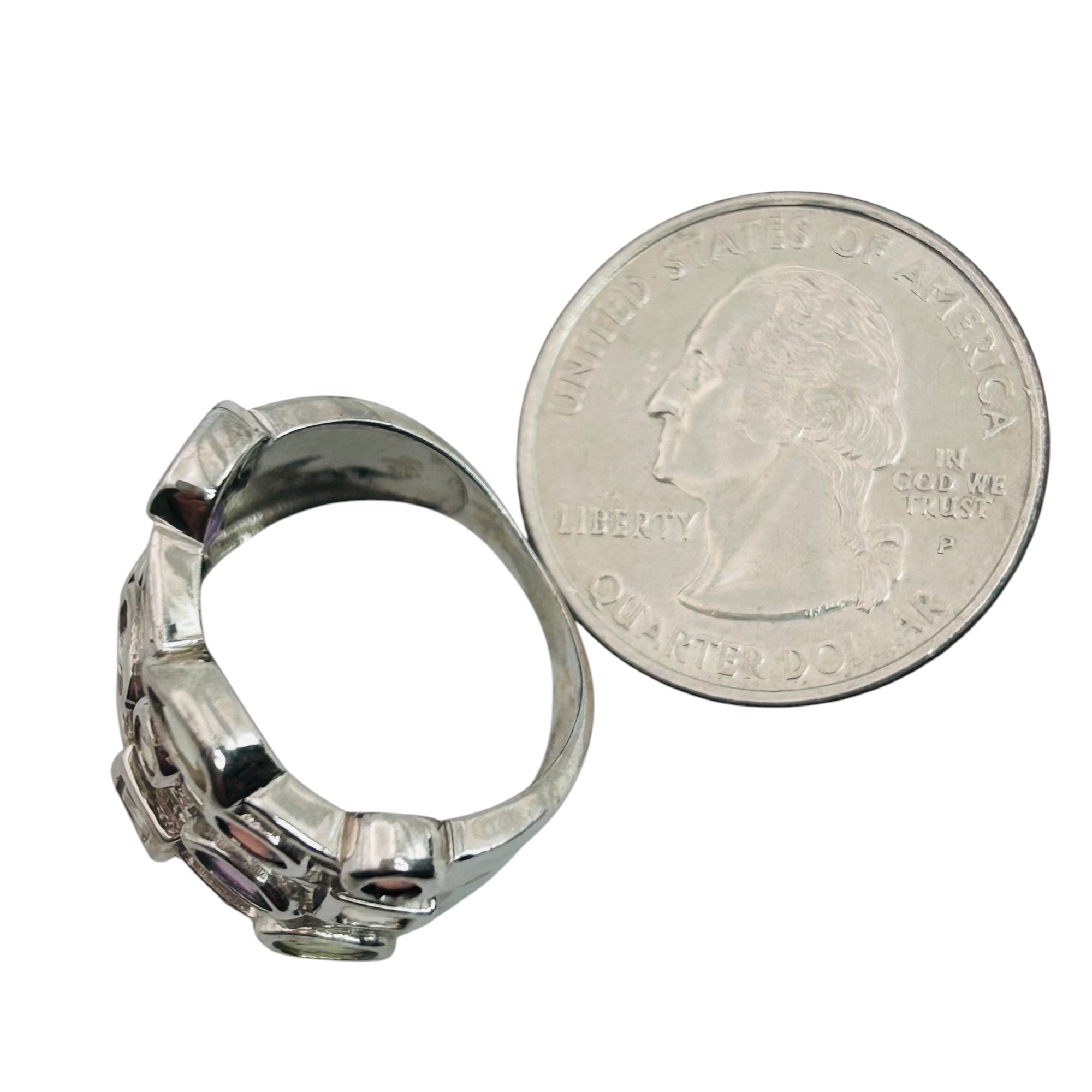 AFJC Multi Gemstone Sterling Ring Size 7, 4.71 G
