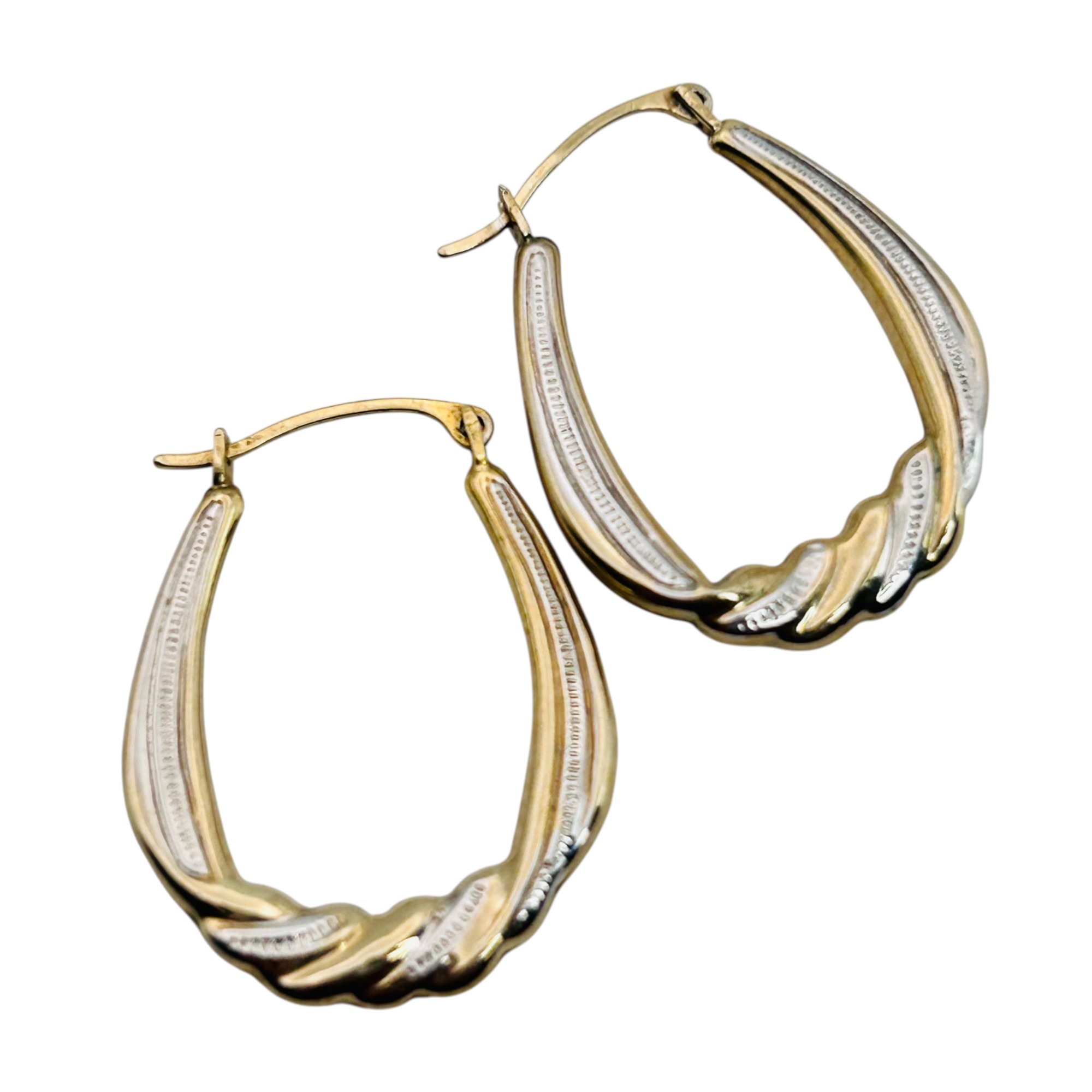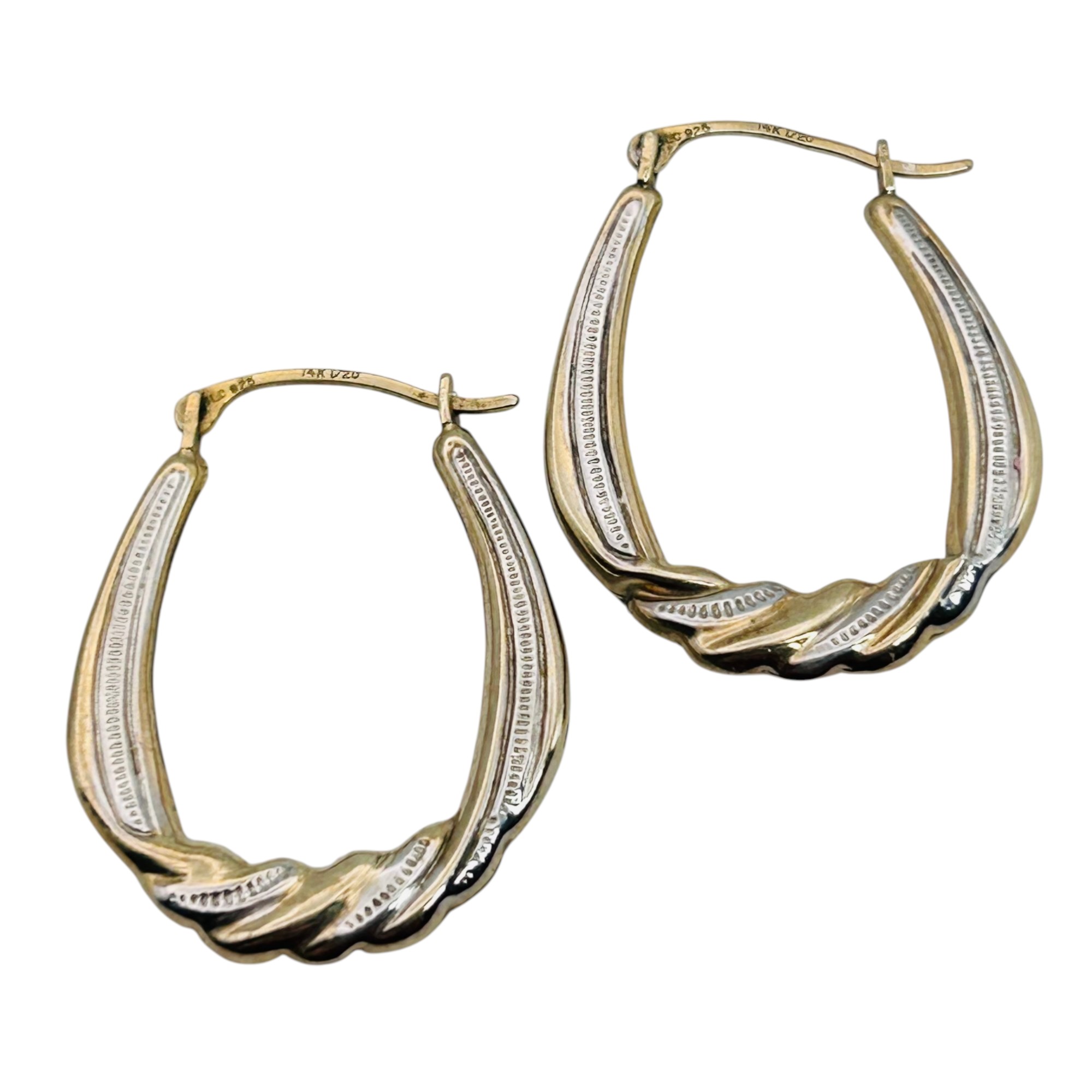 Sterling and 14 K1/20 gold oval hoop earrings .91 g