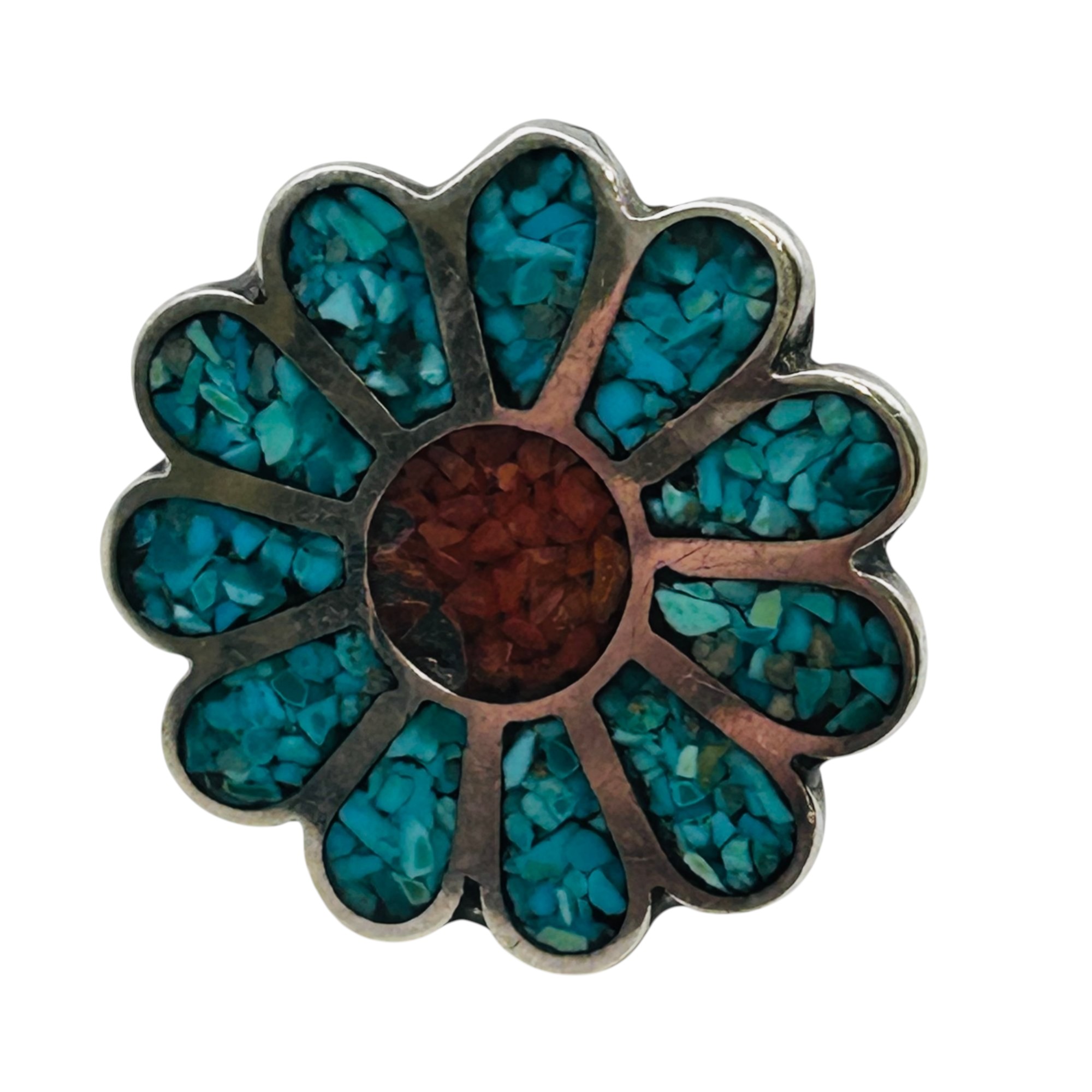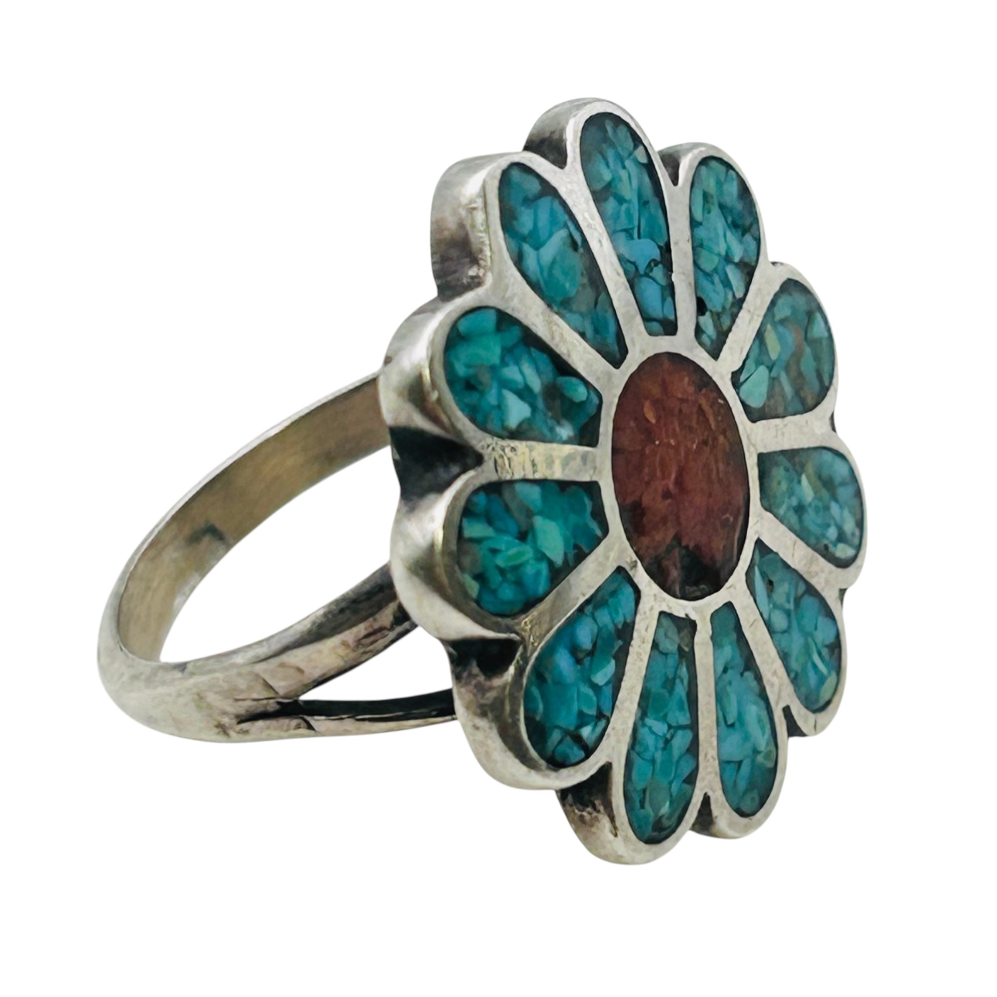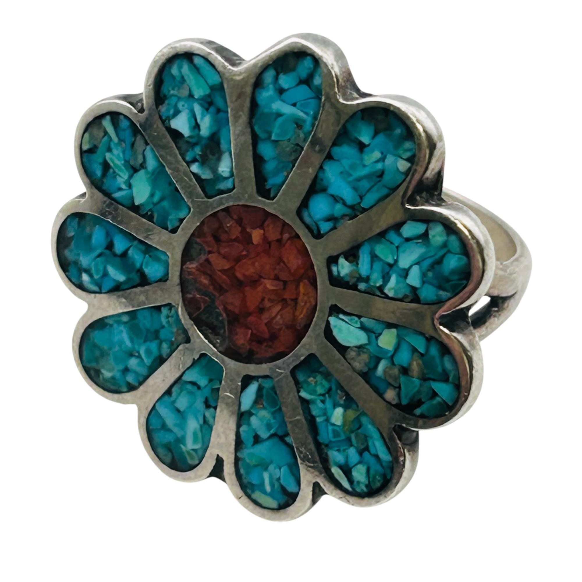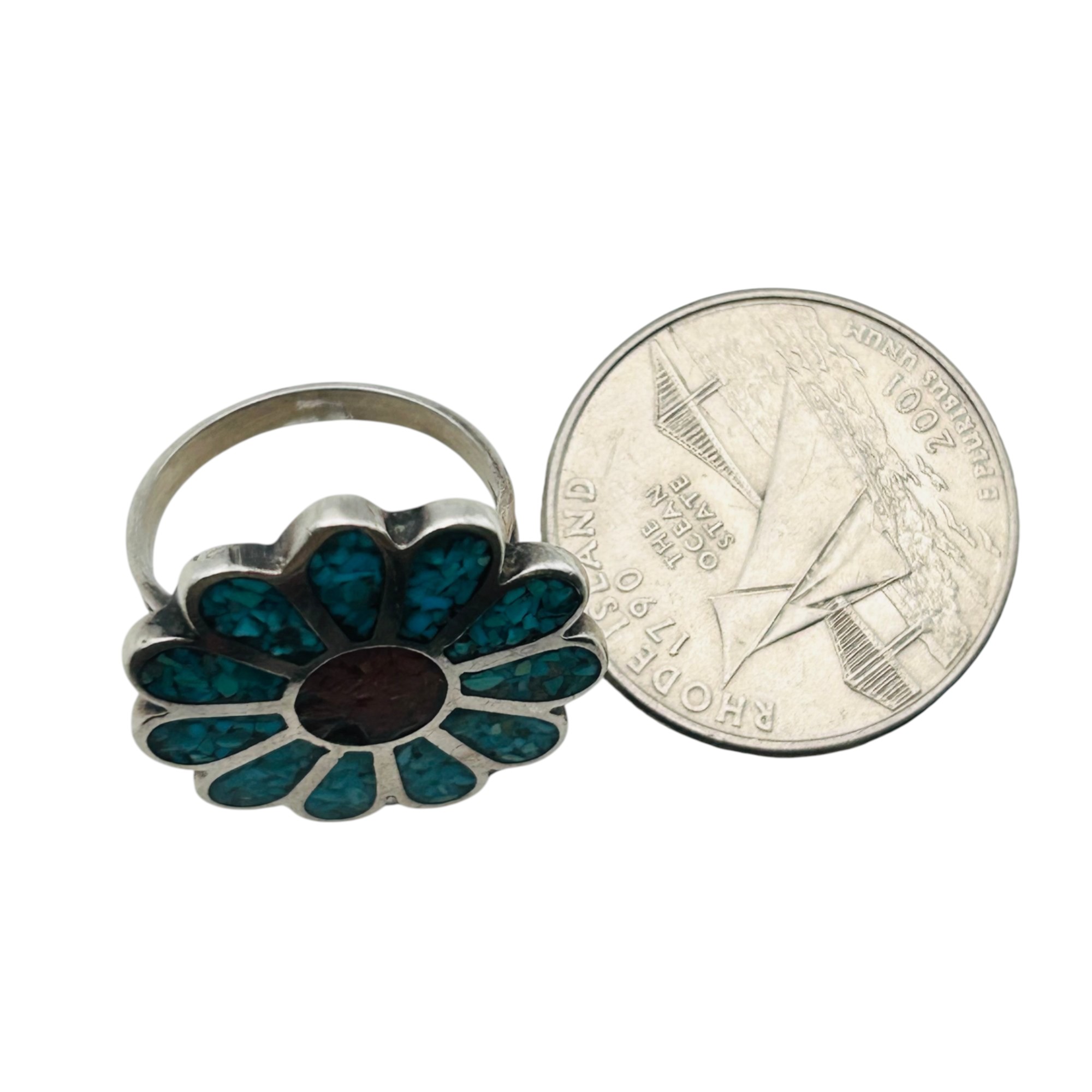 Southwest crushed turquoise flower statement ring size 5.5 6.26 g