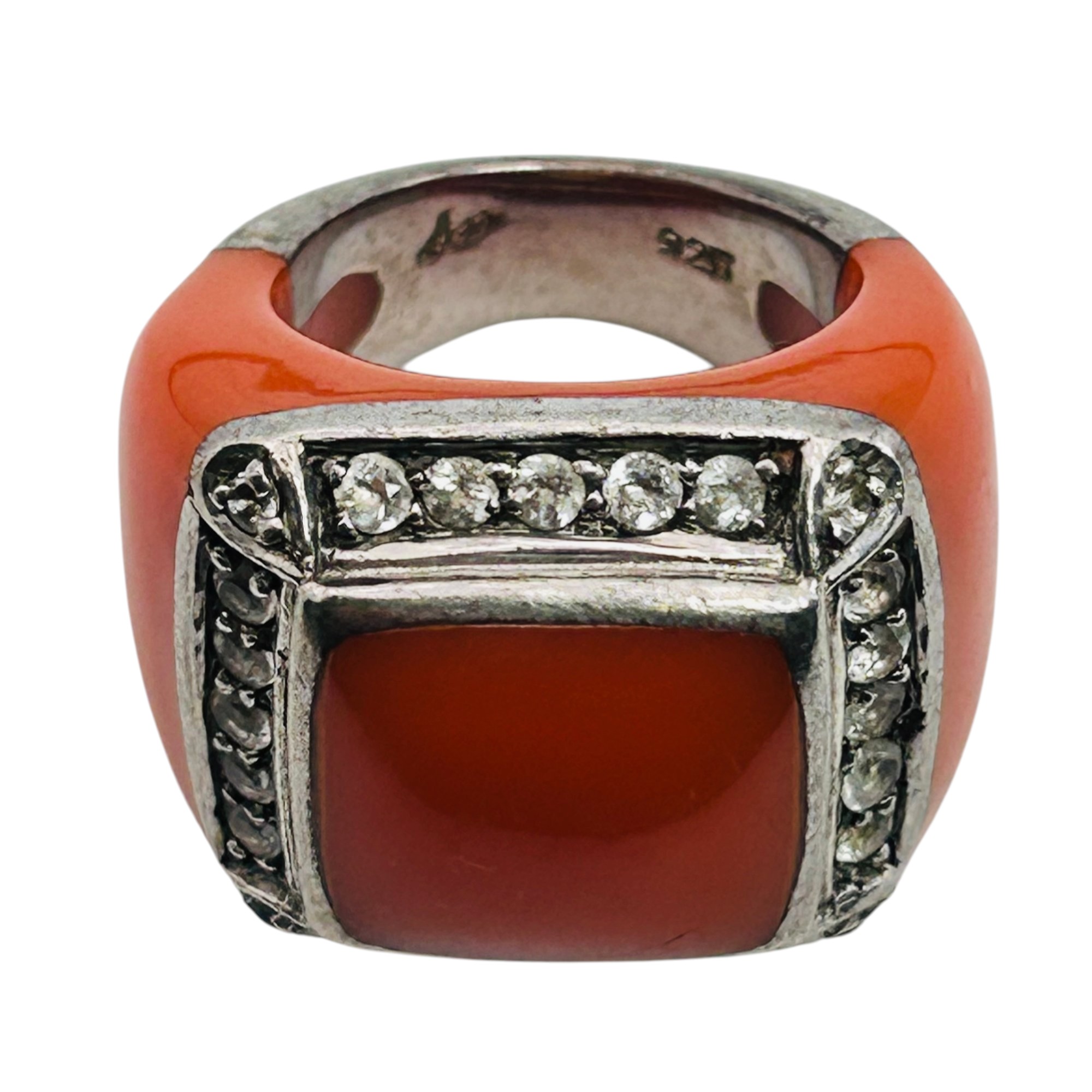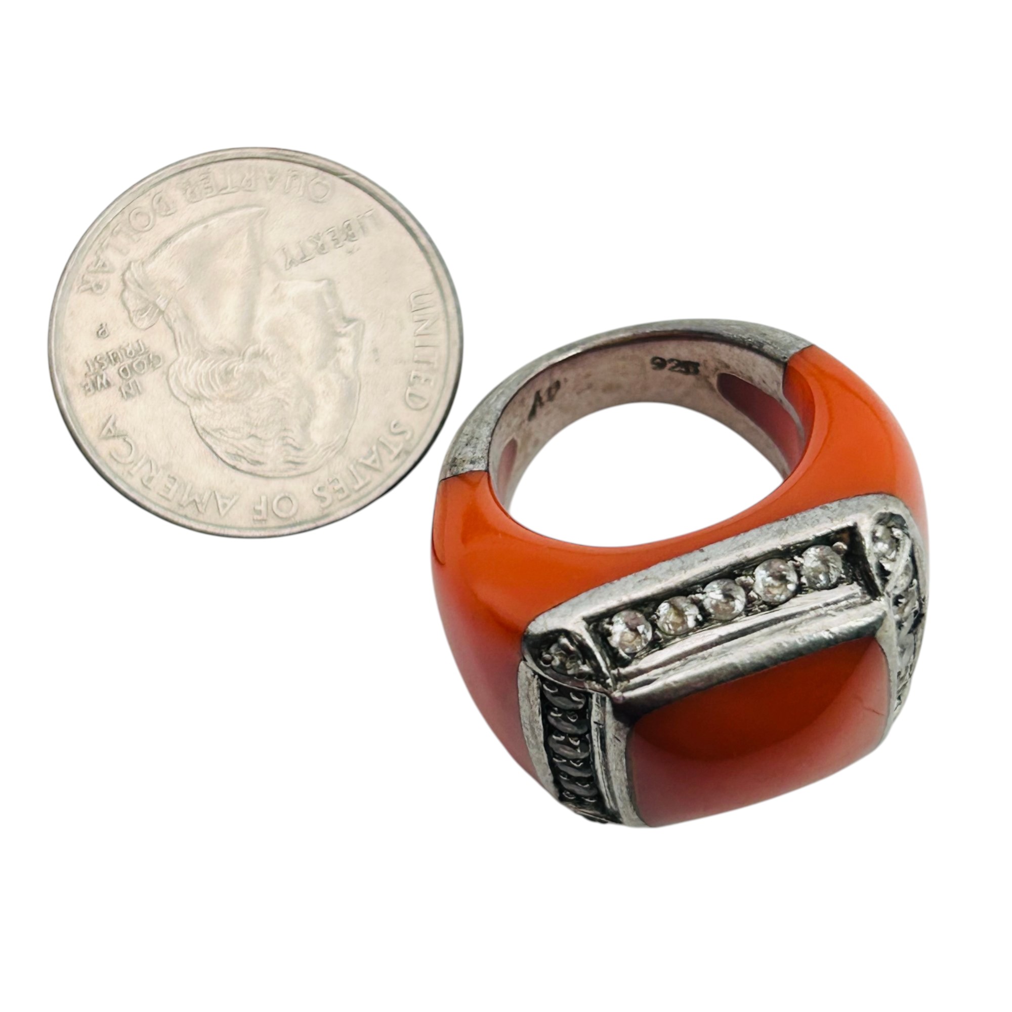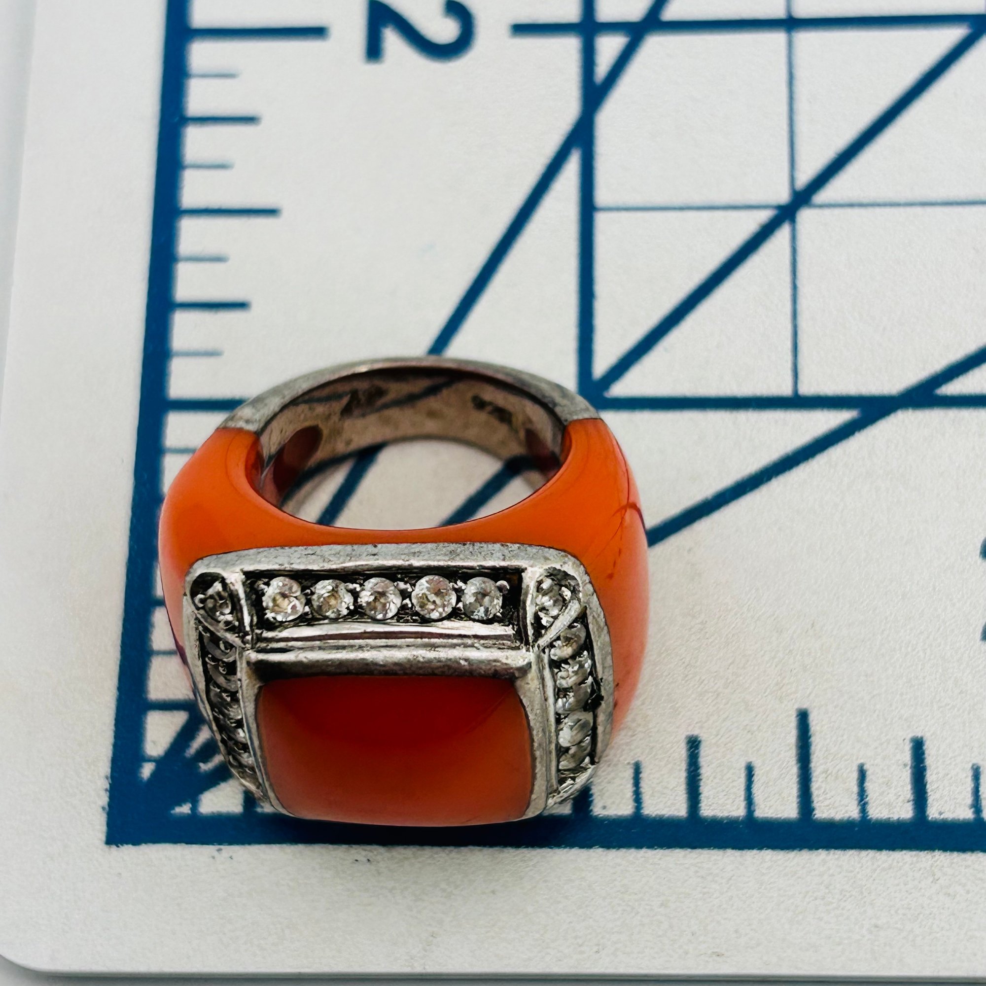 Spinel and orange statement ring signed AD size 6 16.58 g unknown makers mark