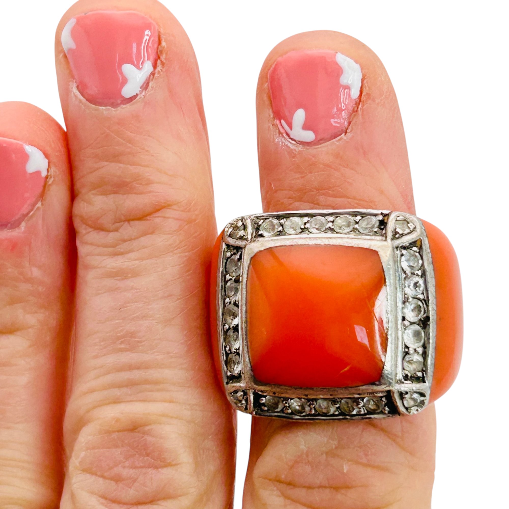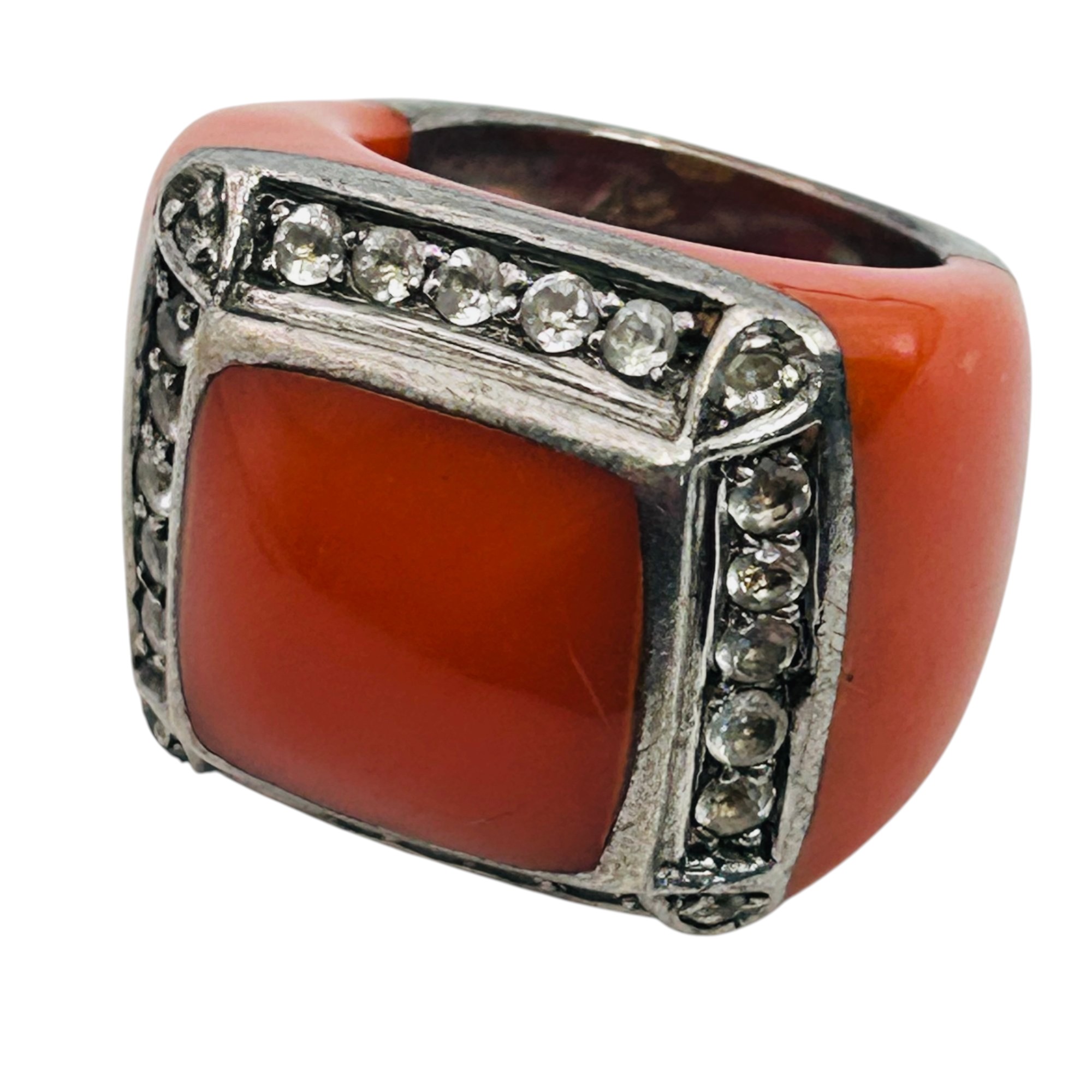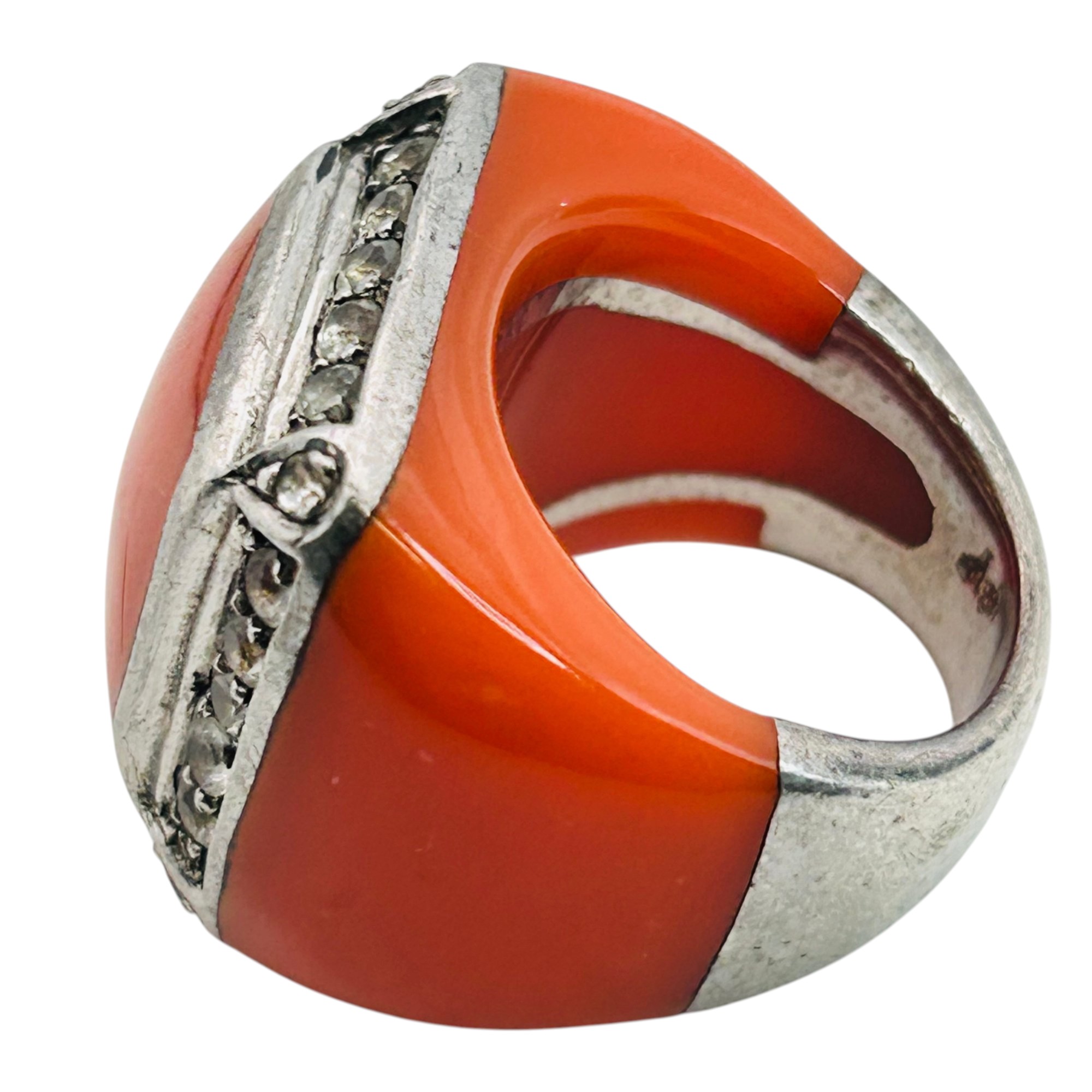 Spinel and orange statement ring signed AD size 6 16.58 g unknown makers mark