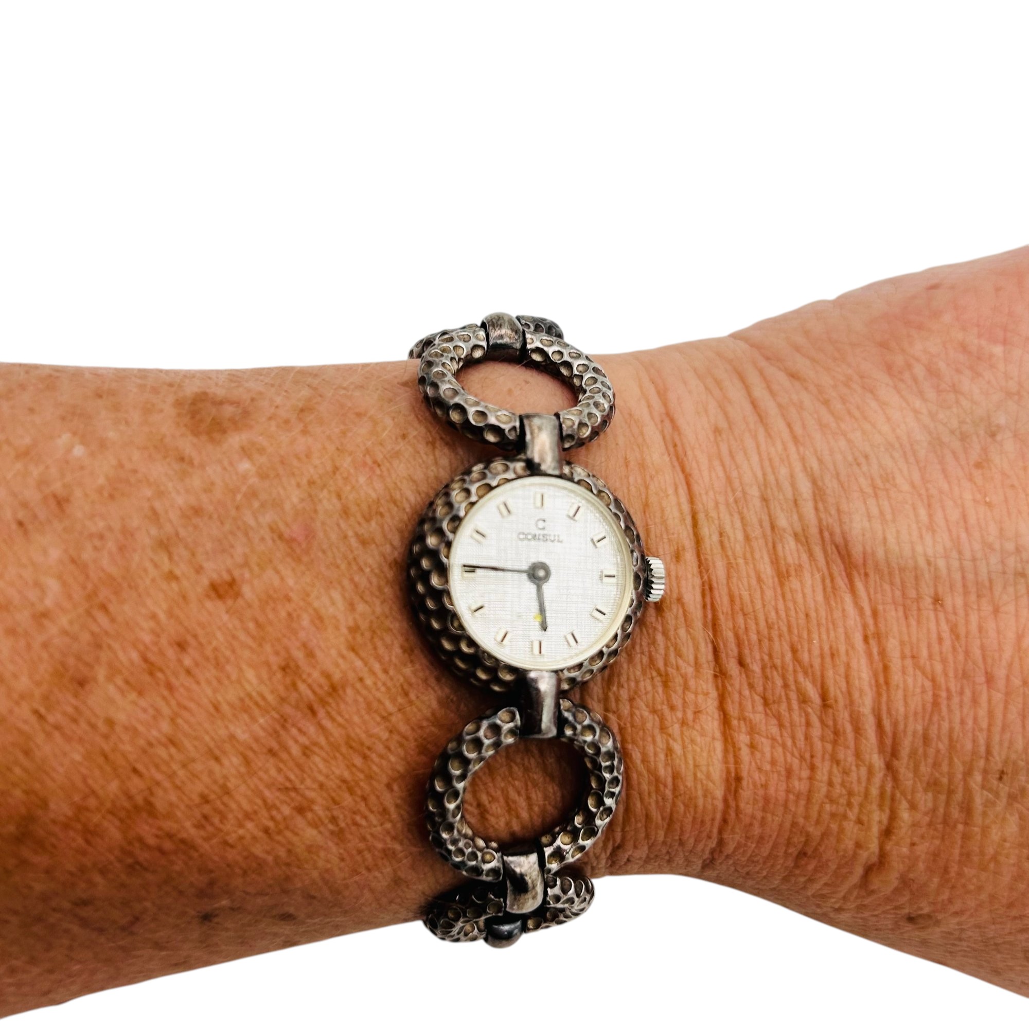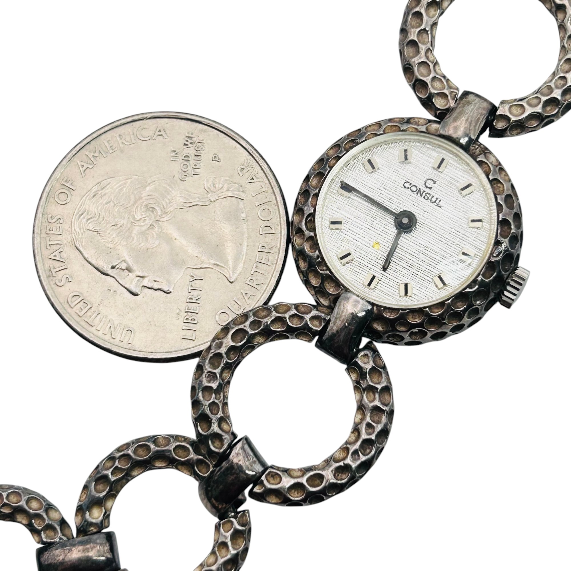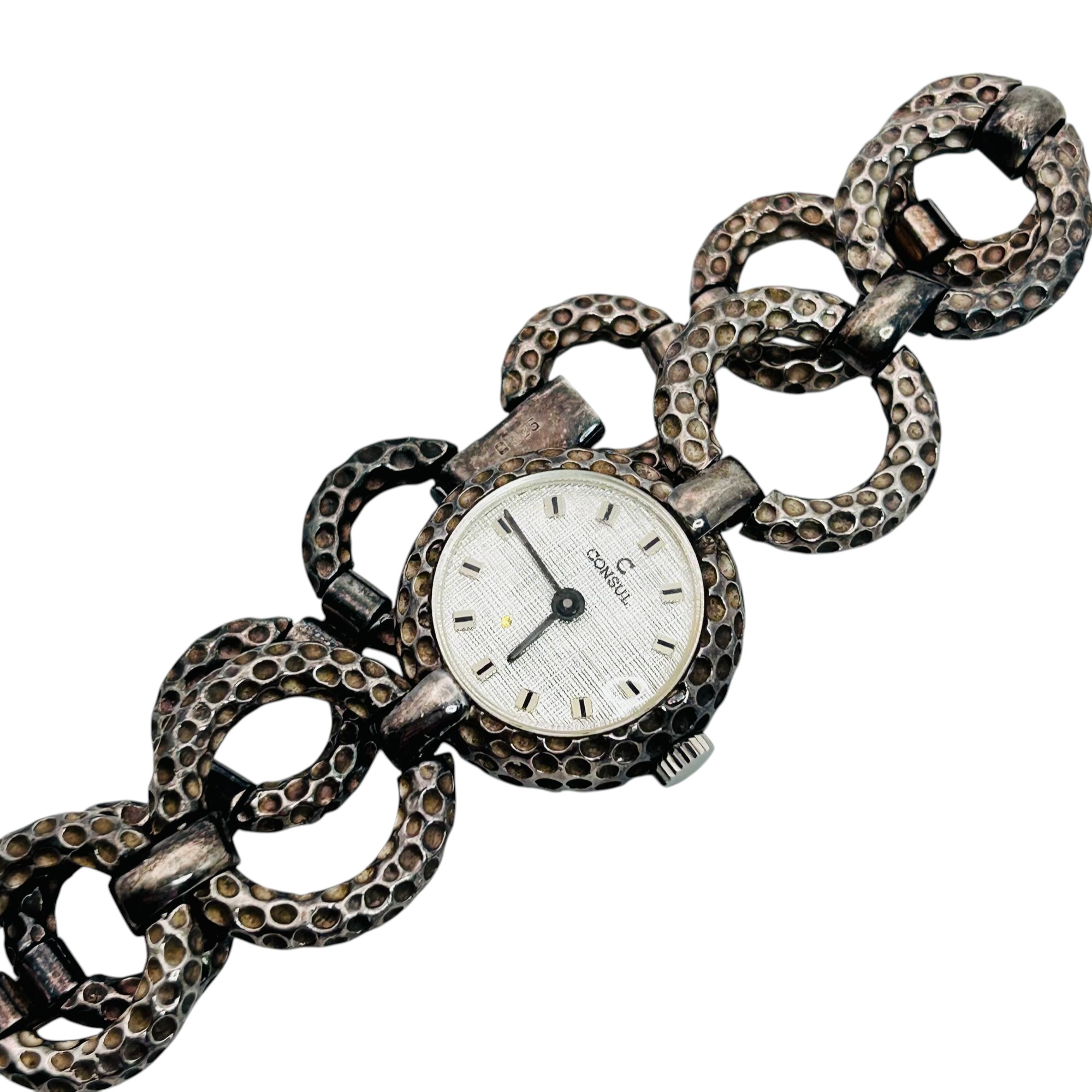 Consul Swiss sterling watch hammered open circle band 36.61 g