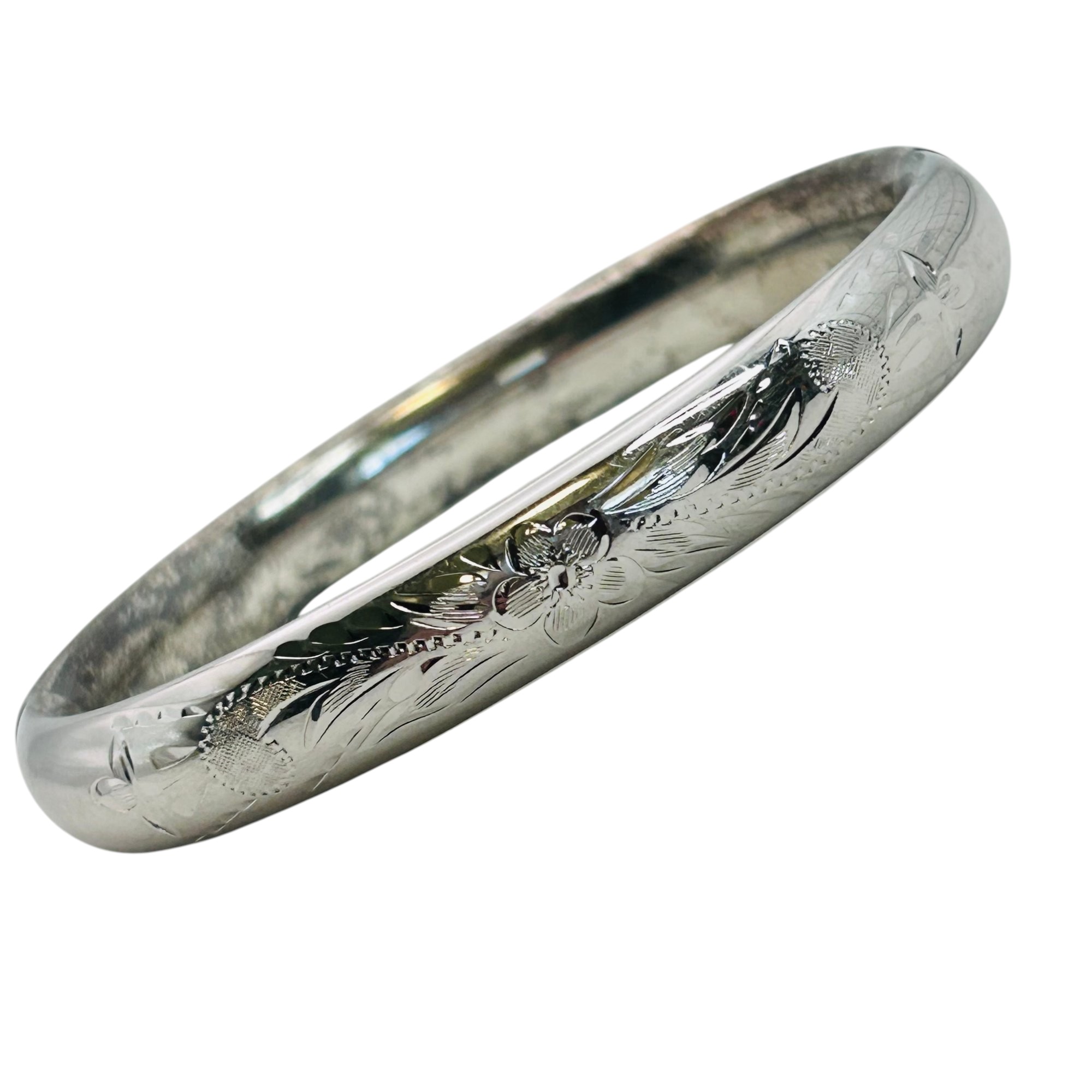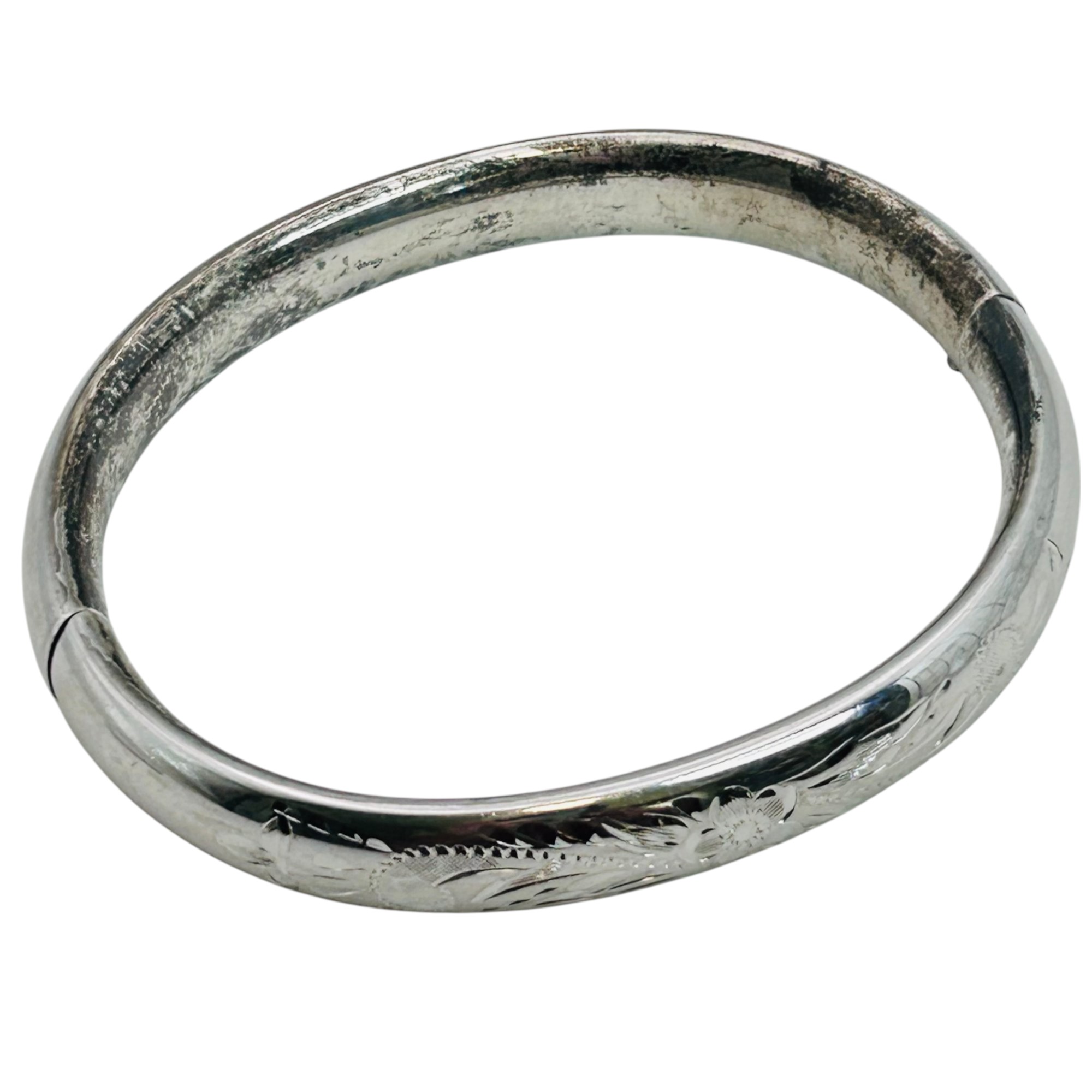 HFB Sterling etched hinge bangle bracelet 12.5g