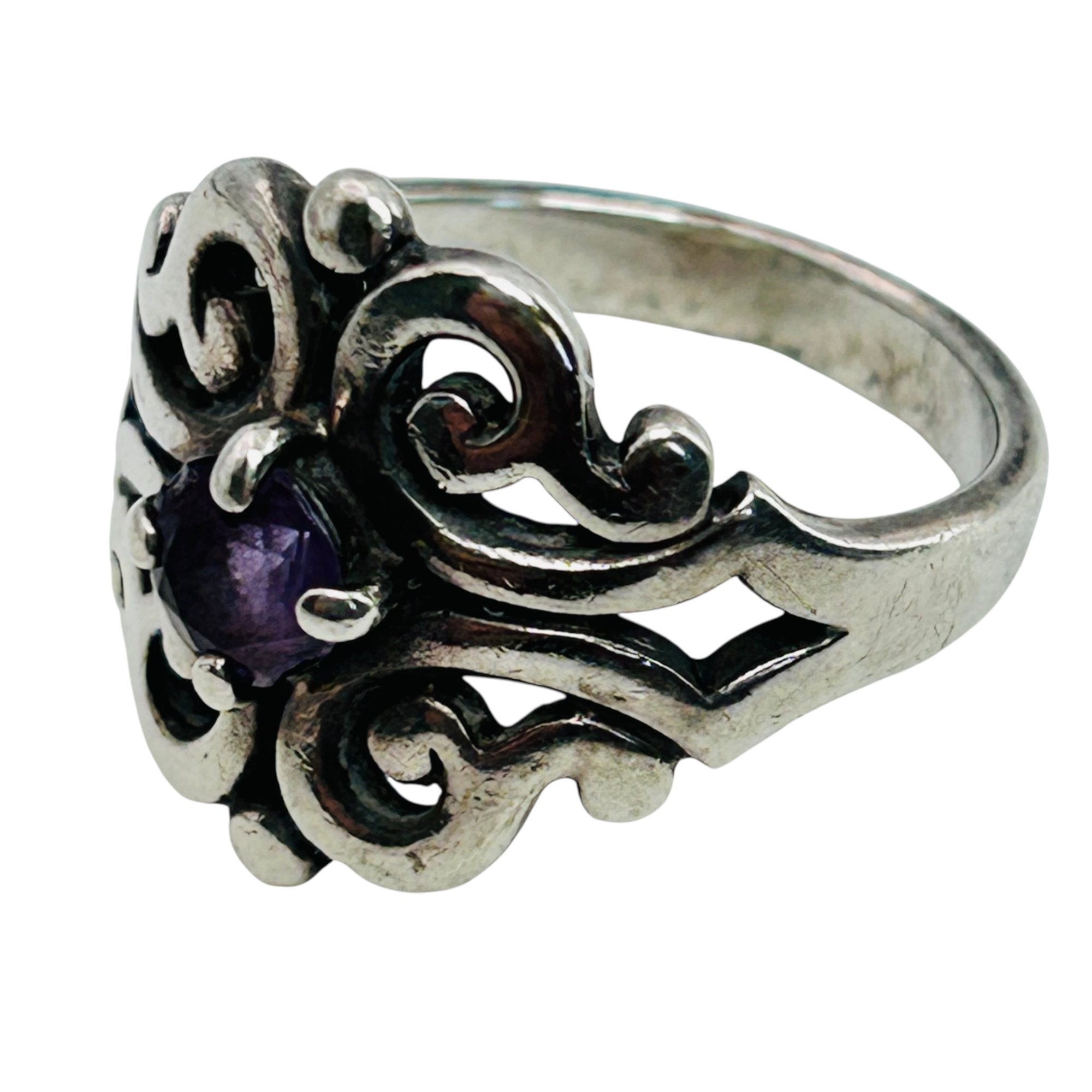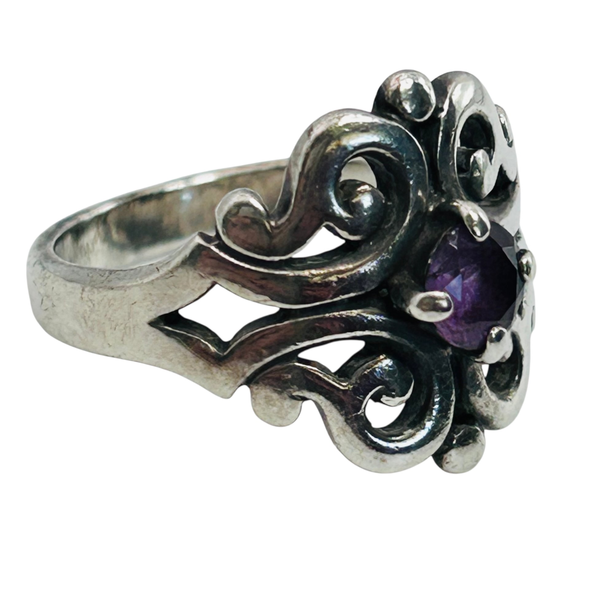 James Avery Amethyst Sterling Filigree Ring Size 7.5, 4.8 G