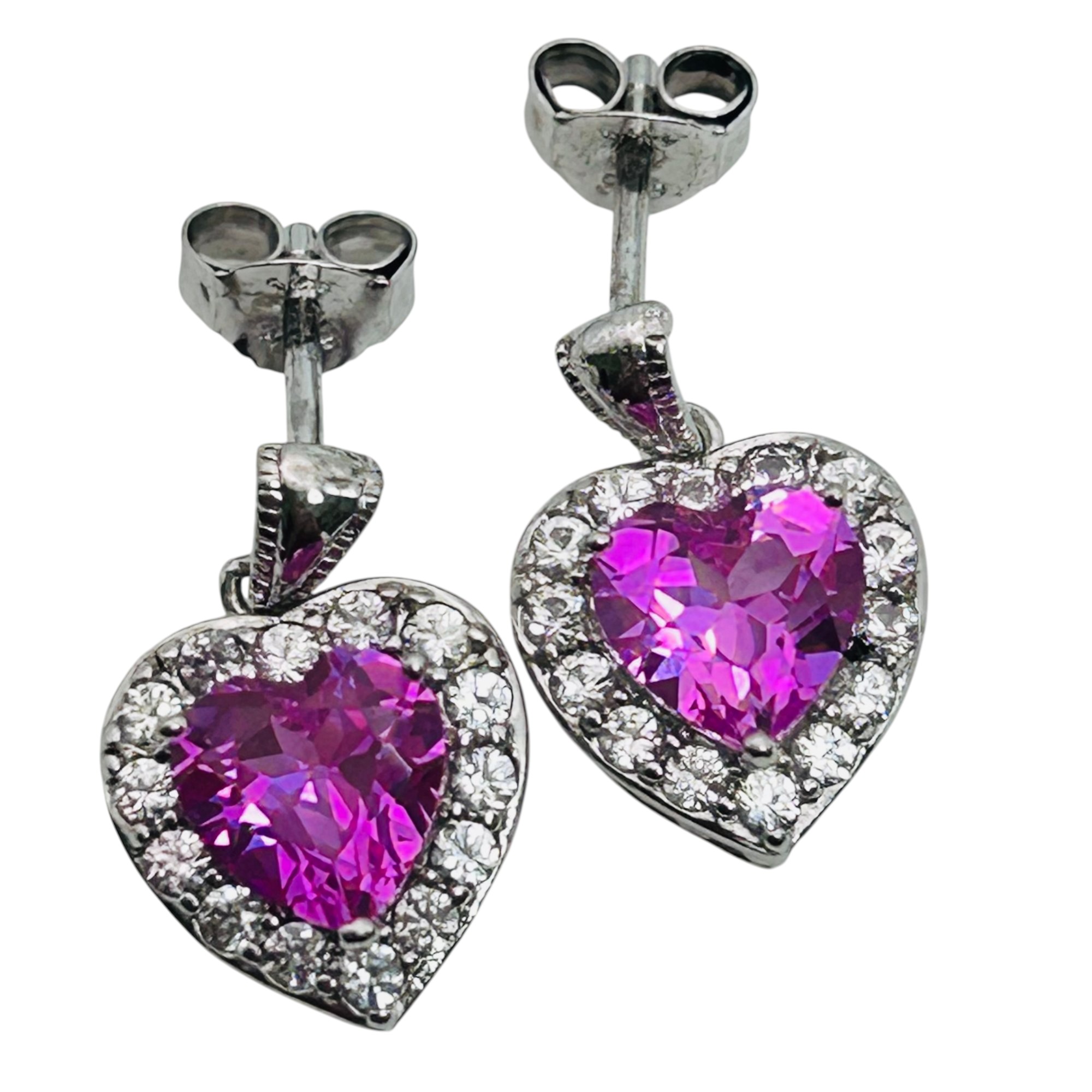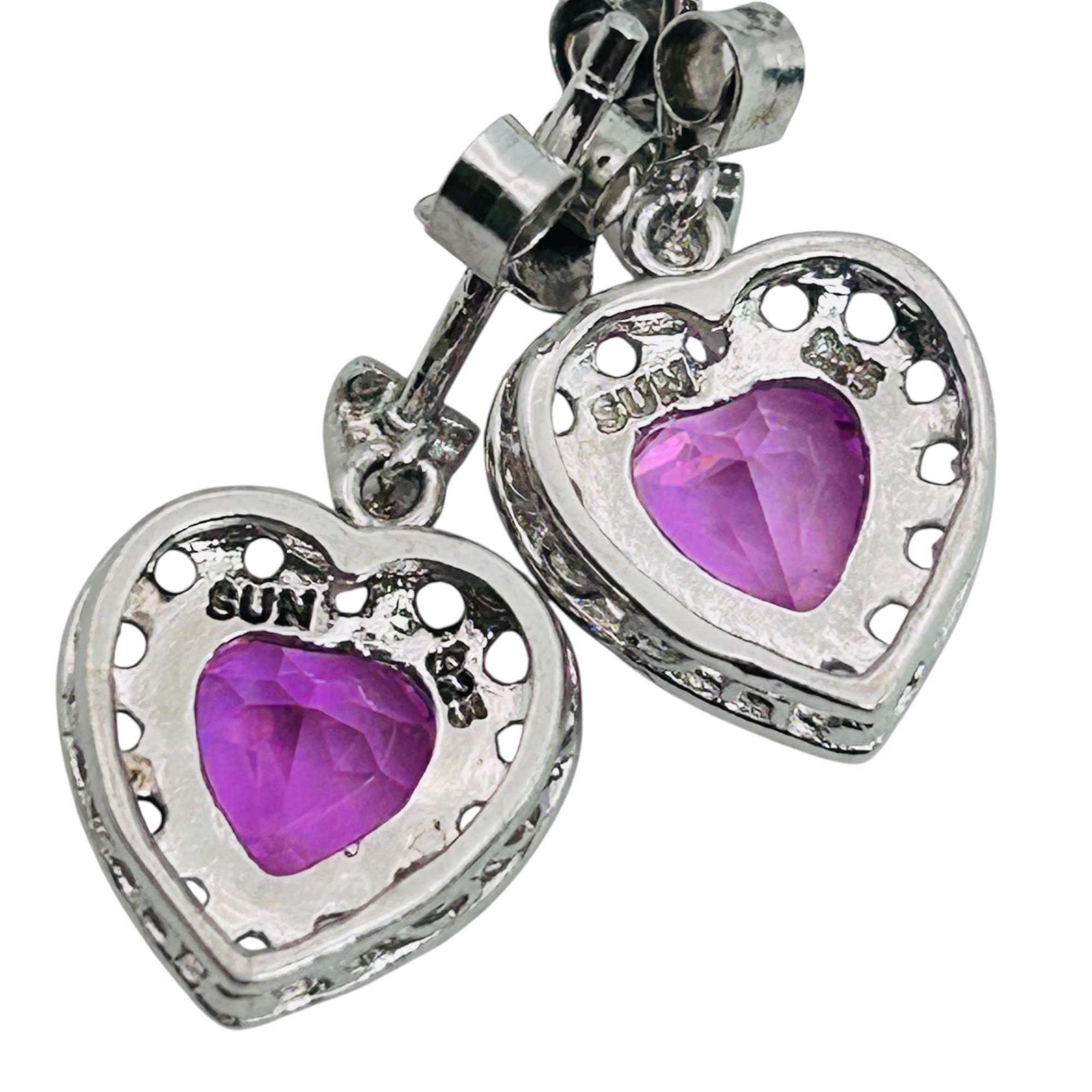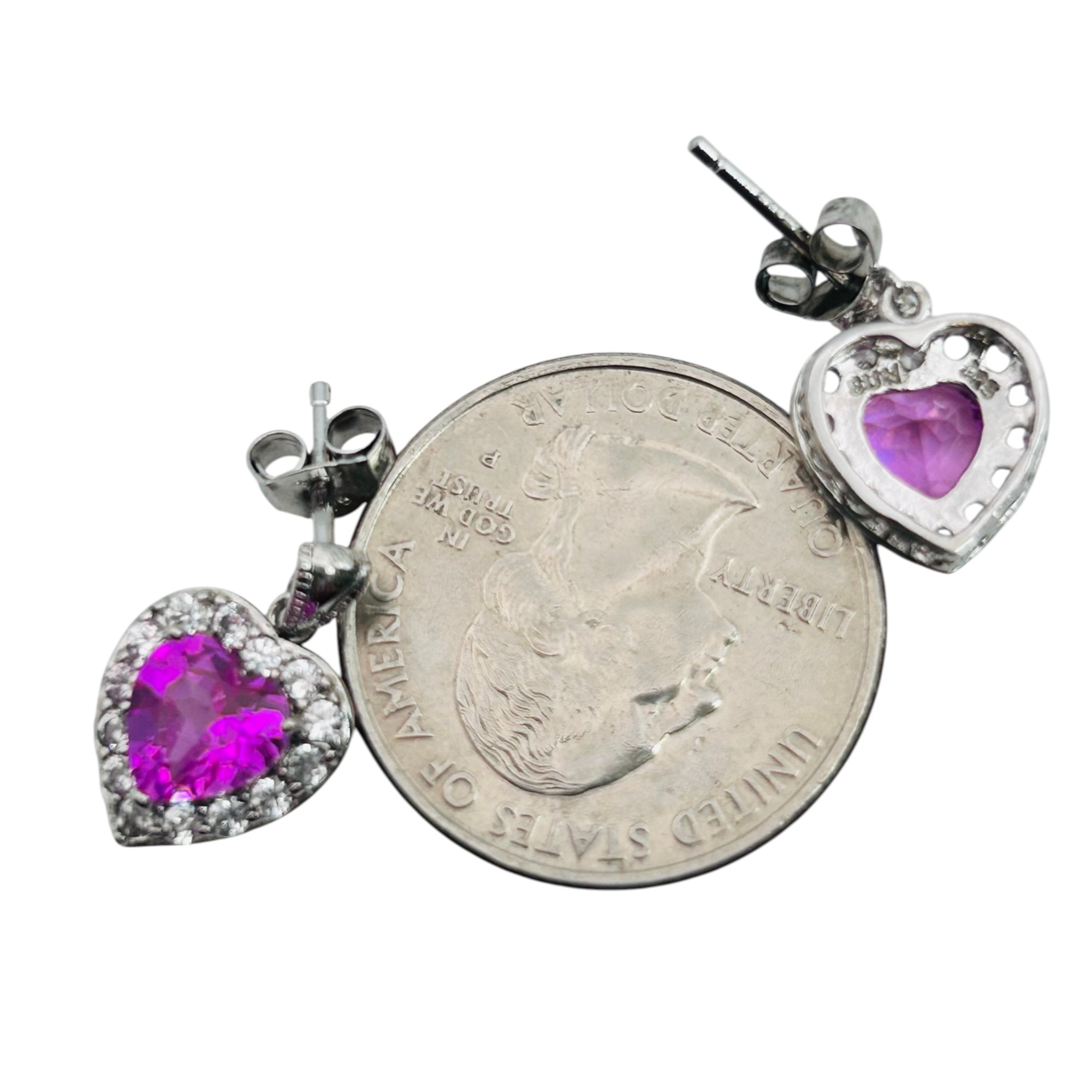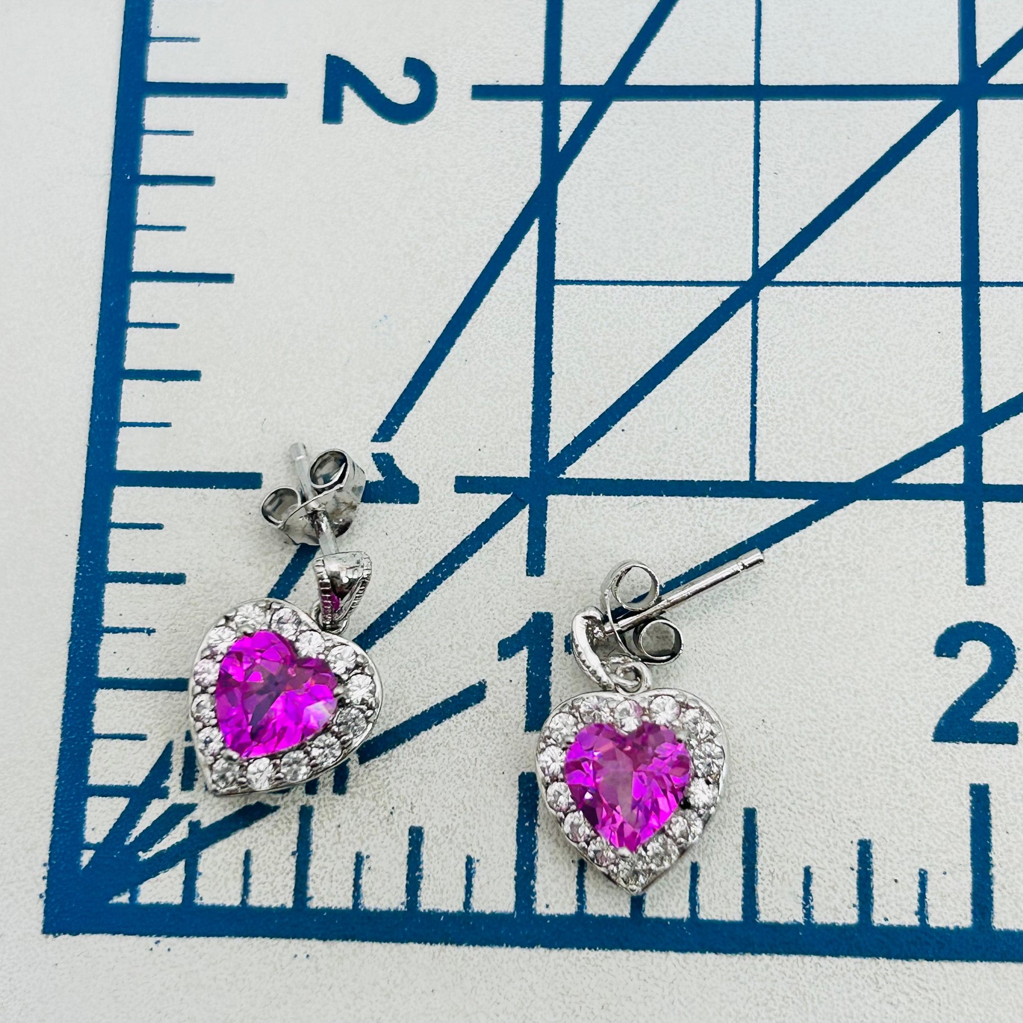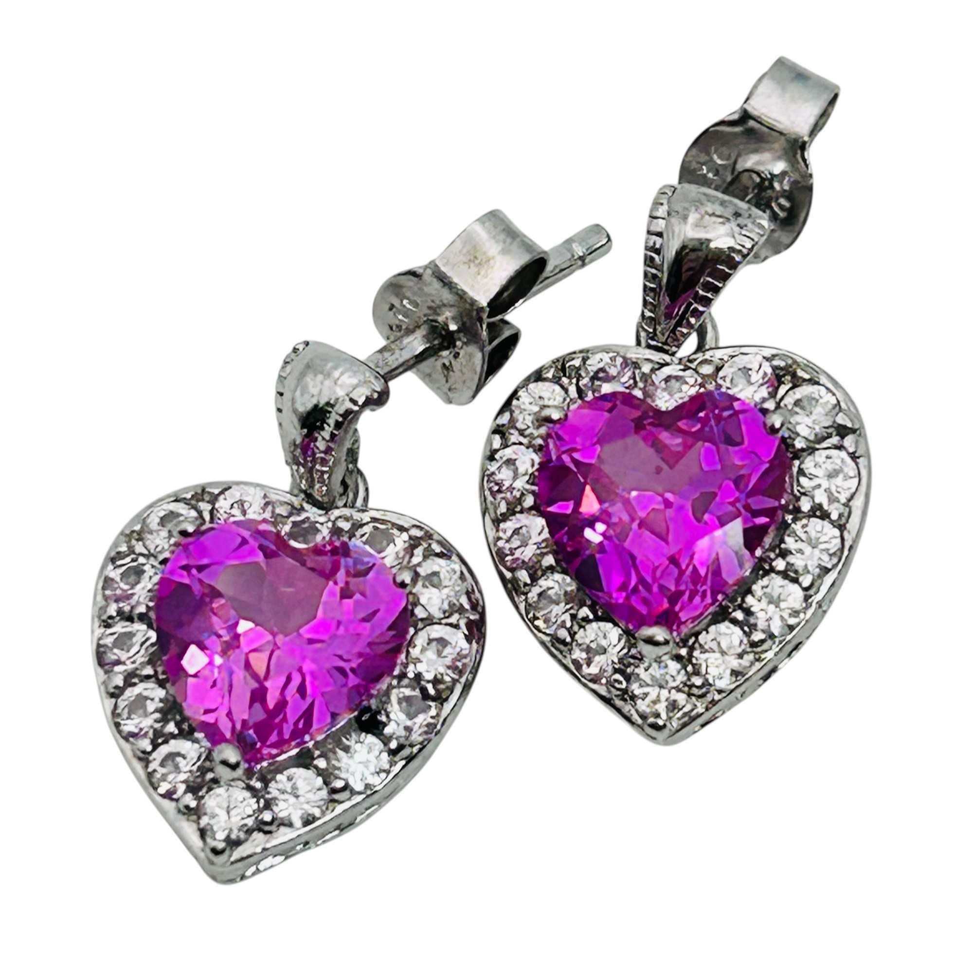 SUN pink sapphire and spinel surround heart dangle earring 3.35 g