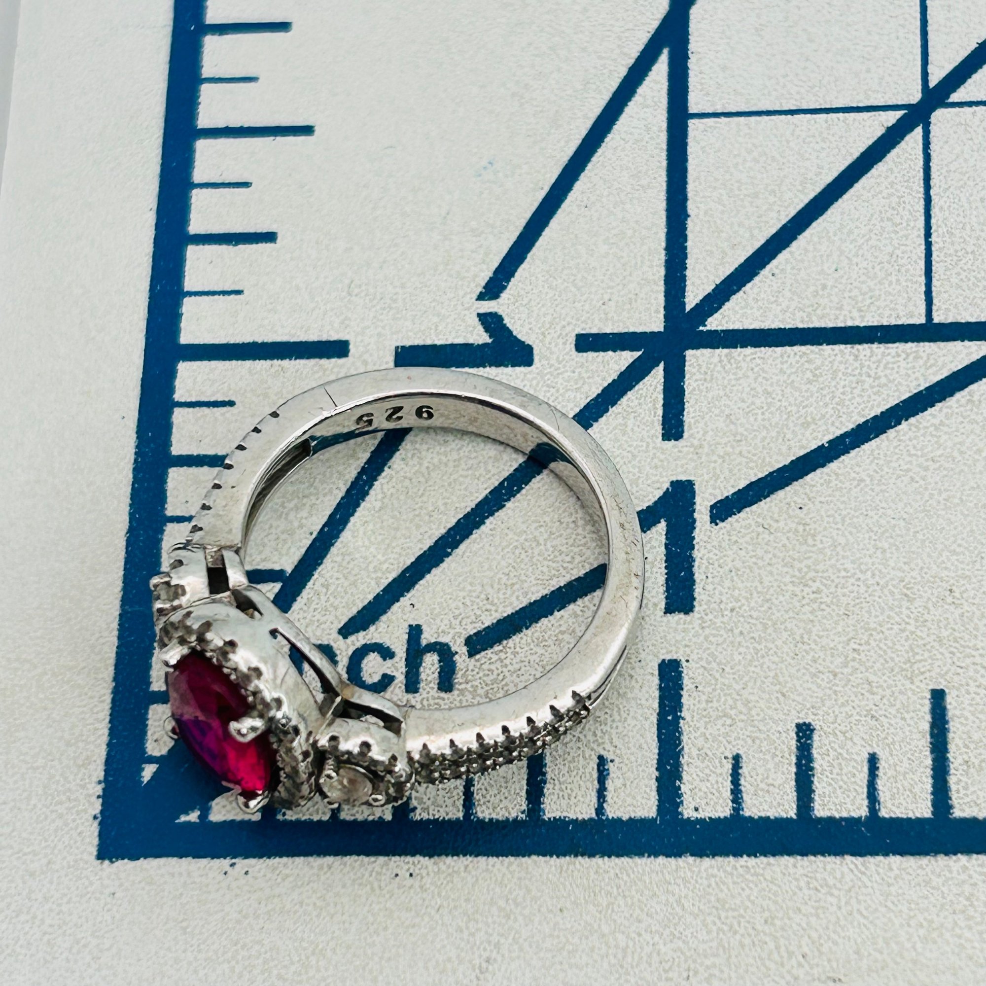 UD Ruby and clear sapphire Sterling ring size 7 4.74 g