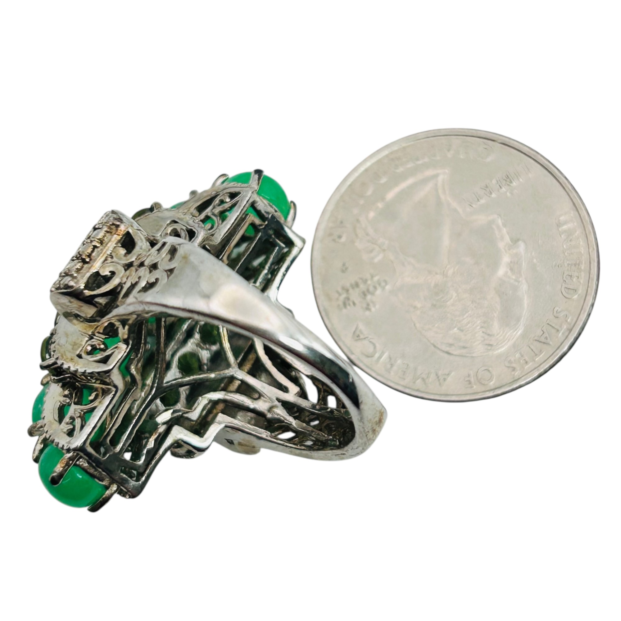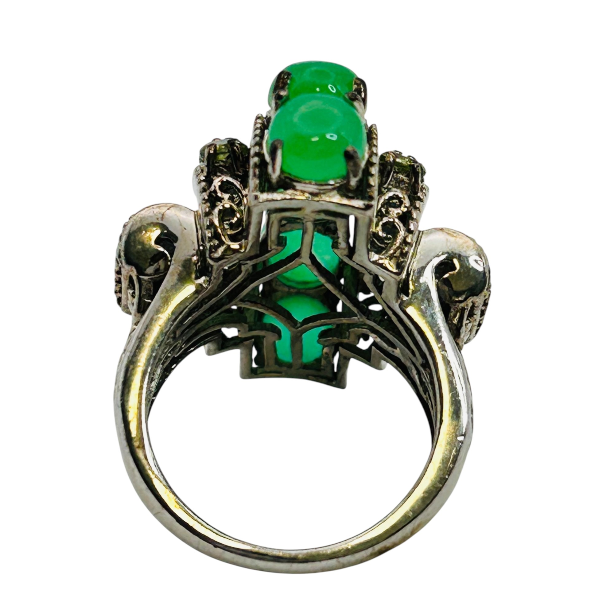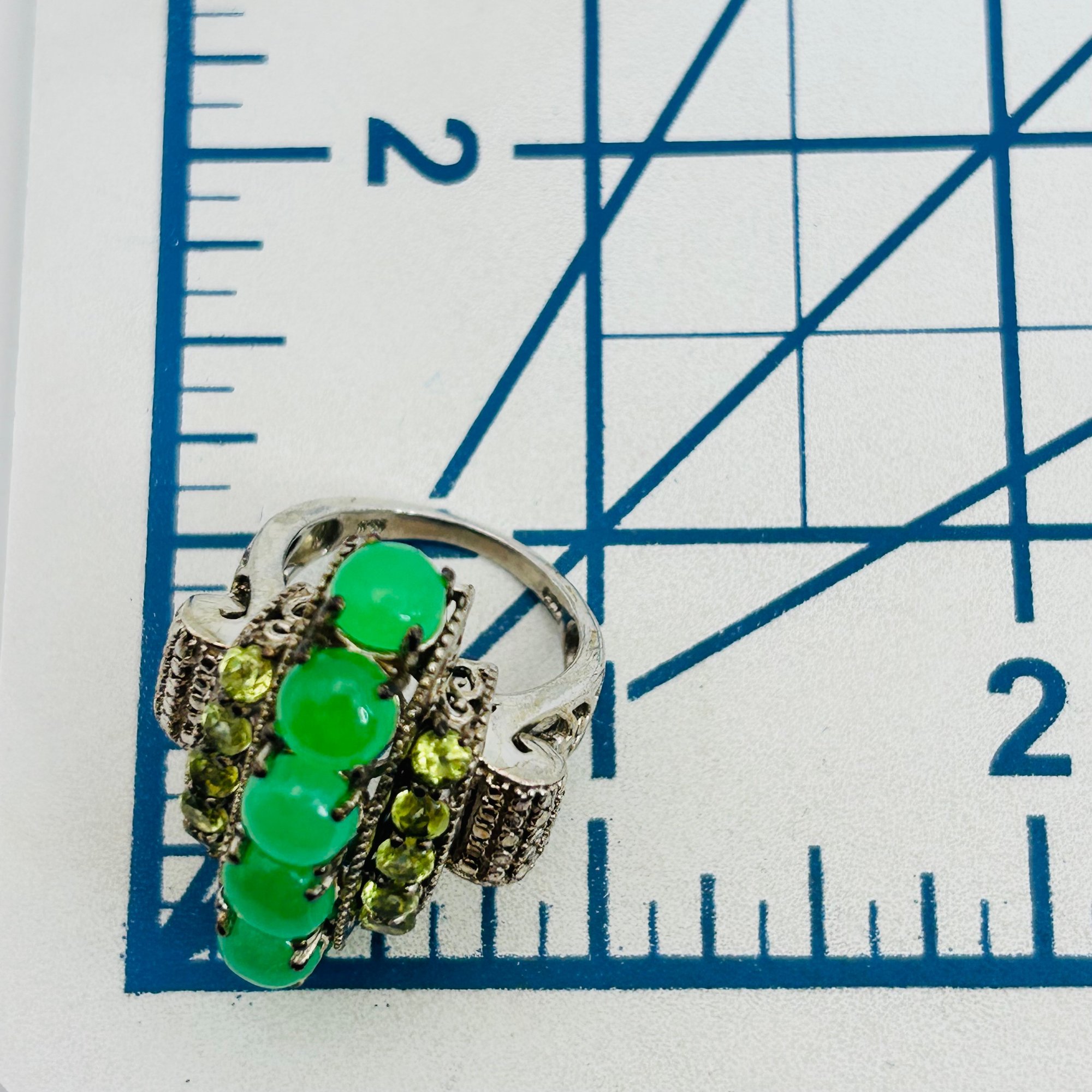 STS aqua emerald marcasite Sterling statement ring size 7 11.25 g