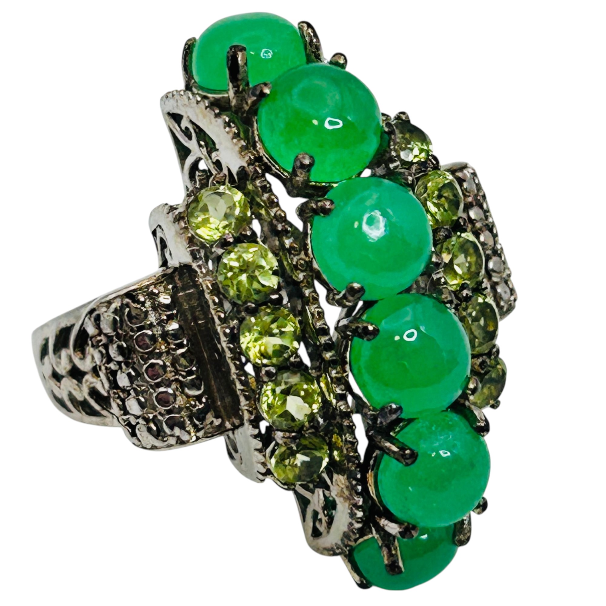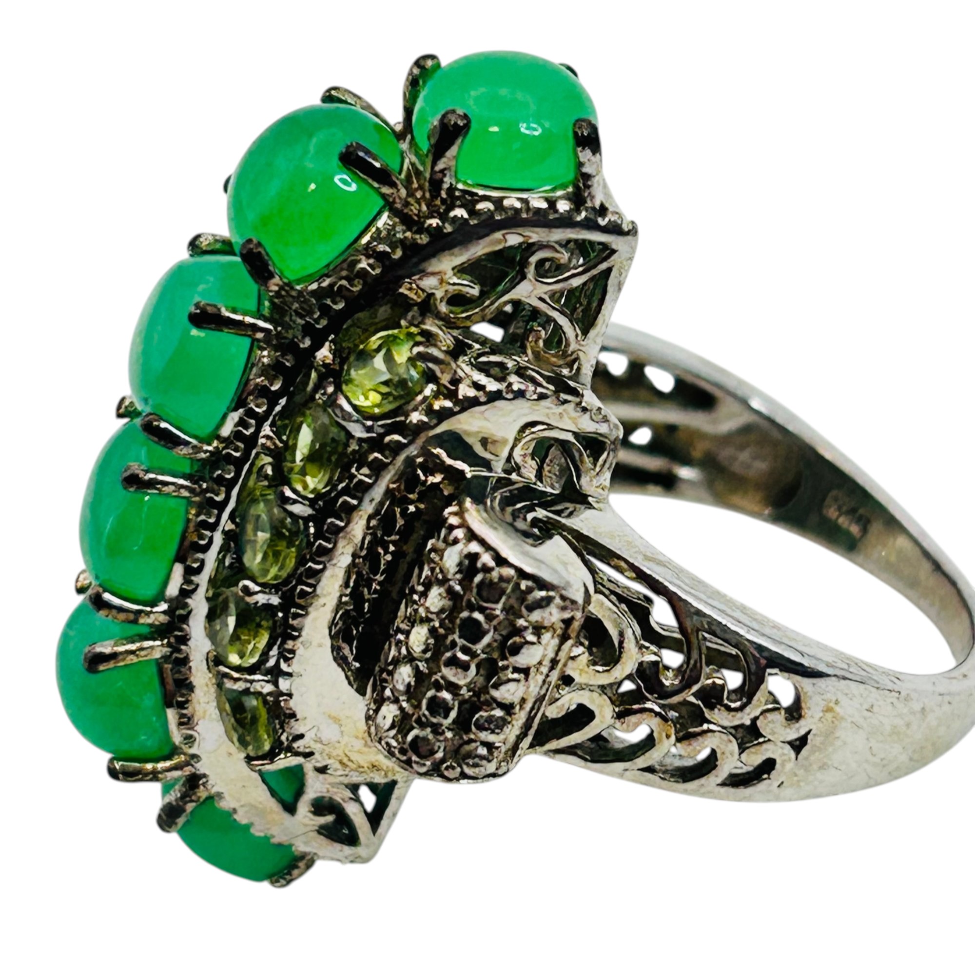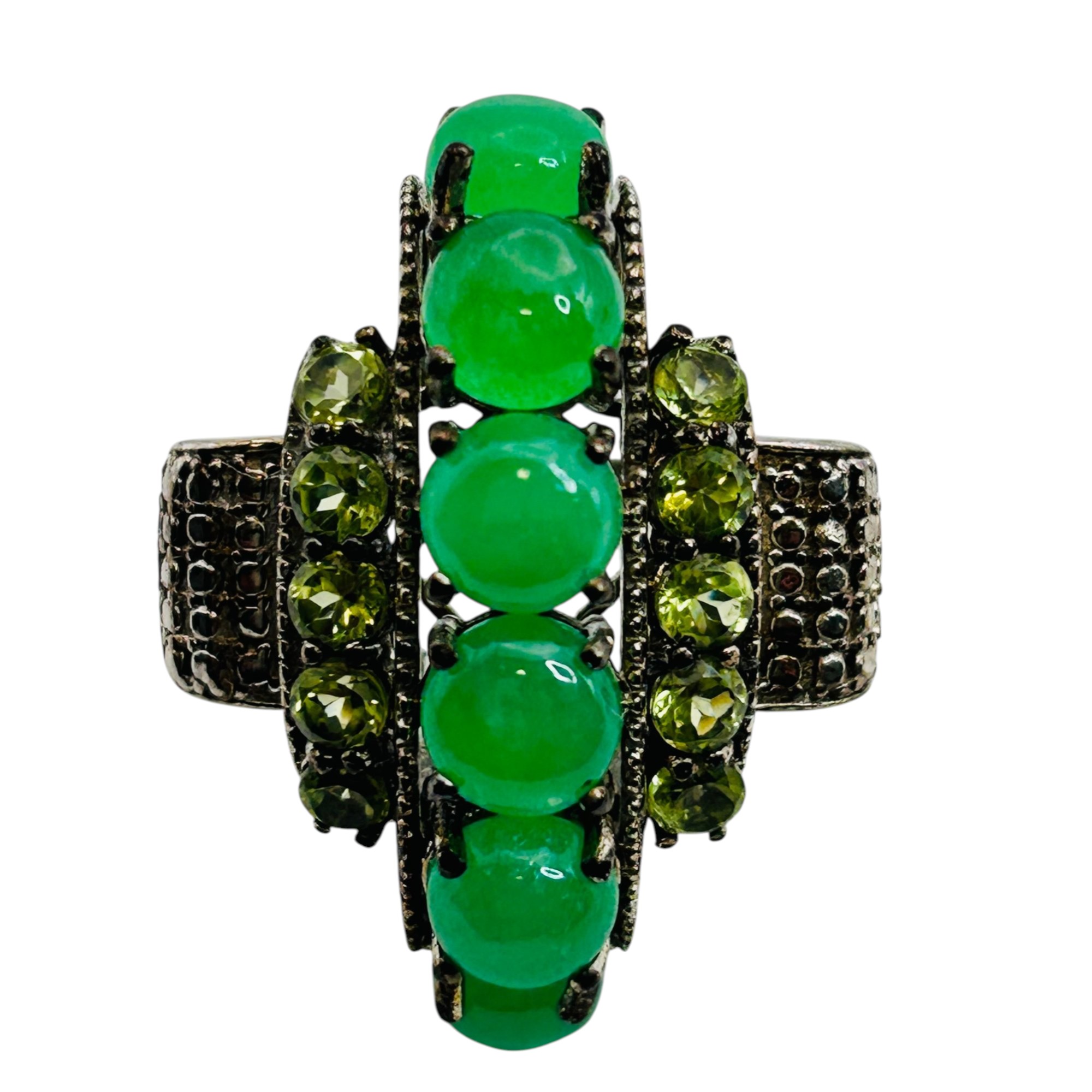 STS aqua emerald marcasite Sterling statement ring size 7 11.25 g