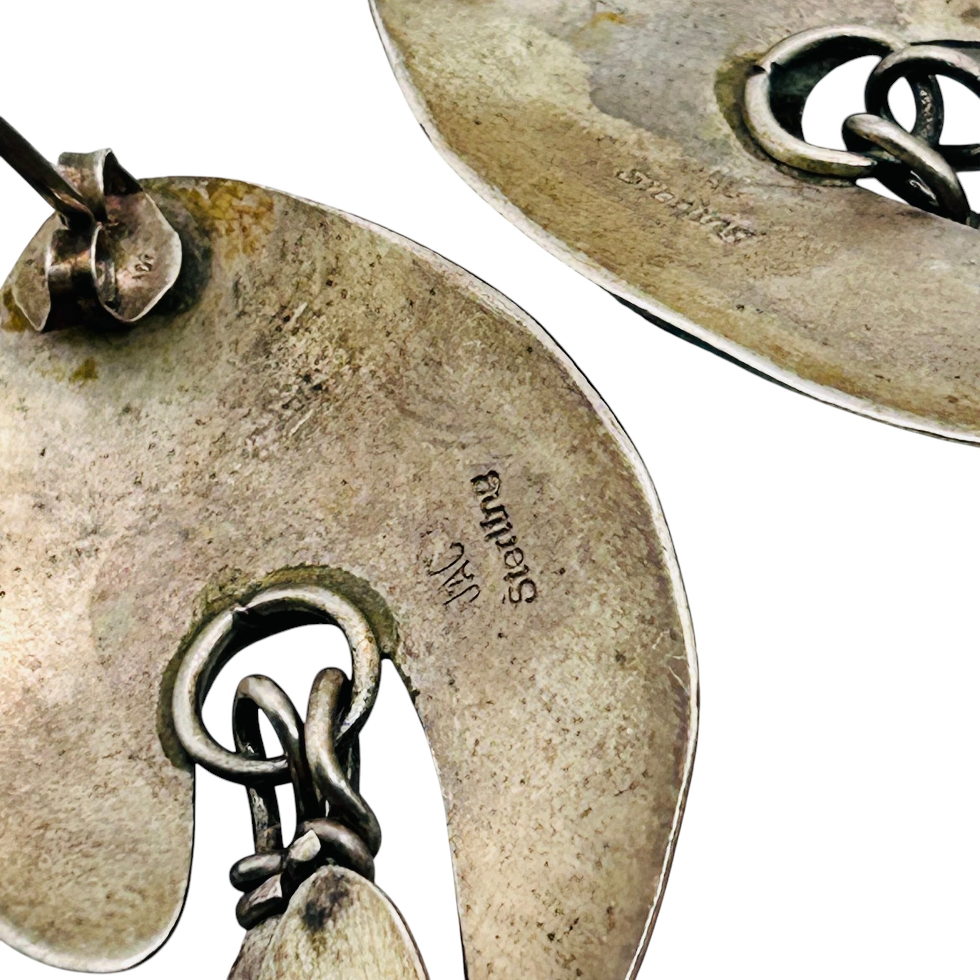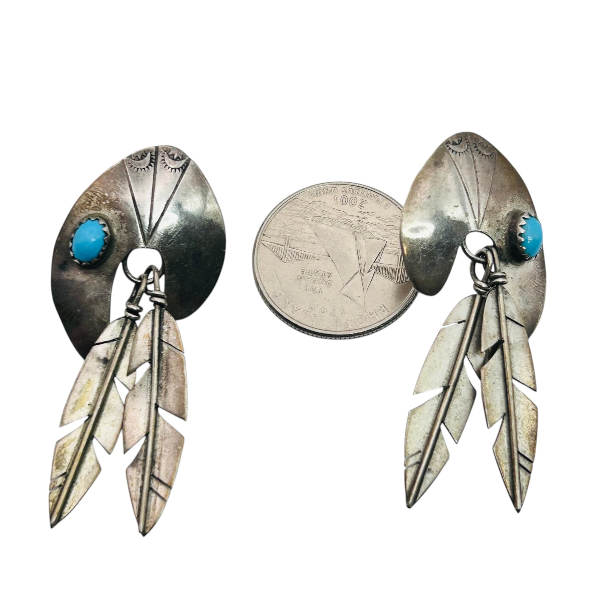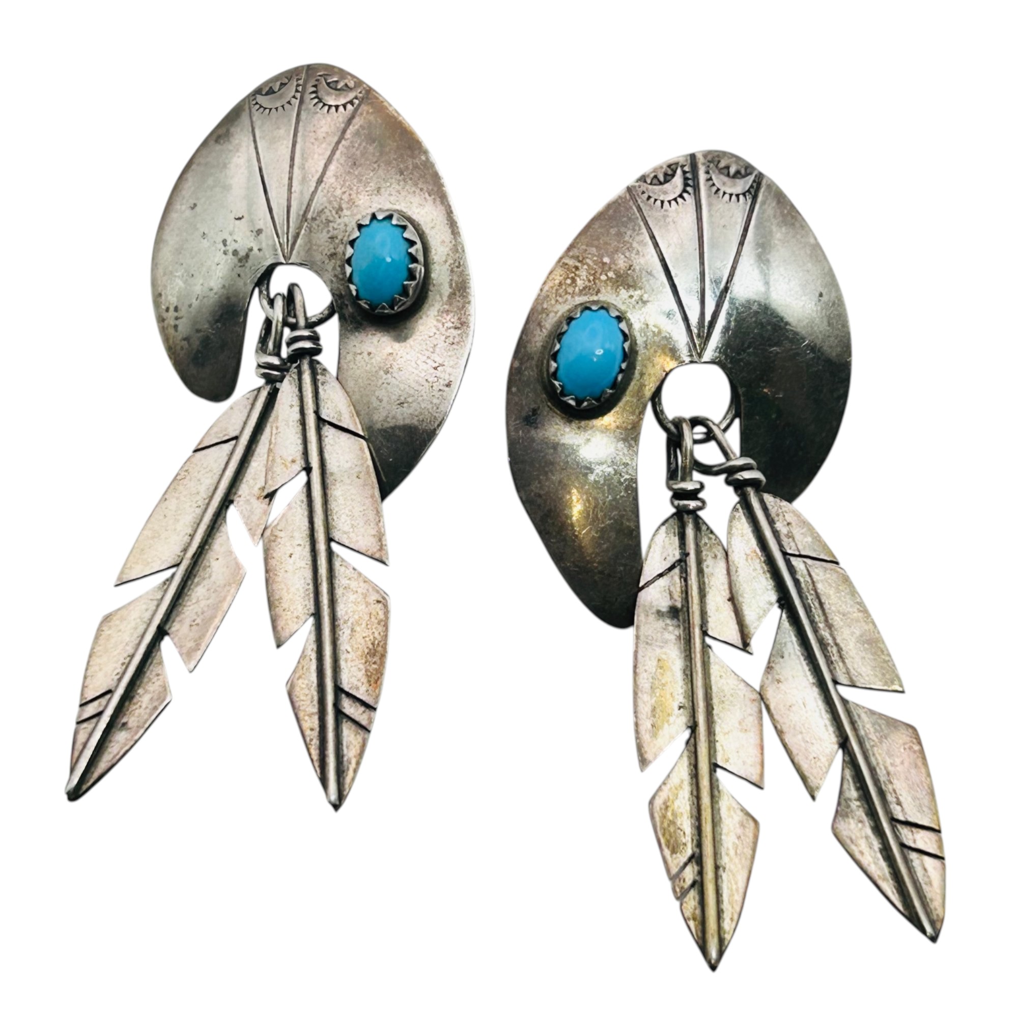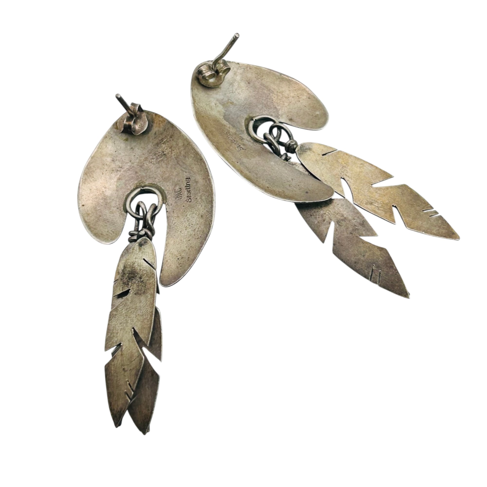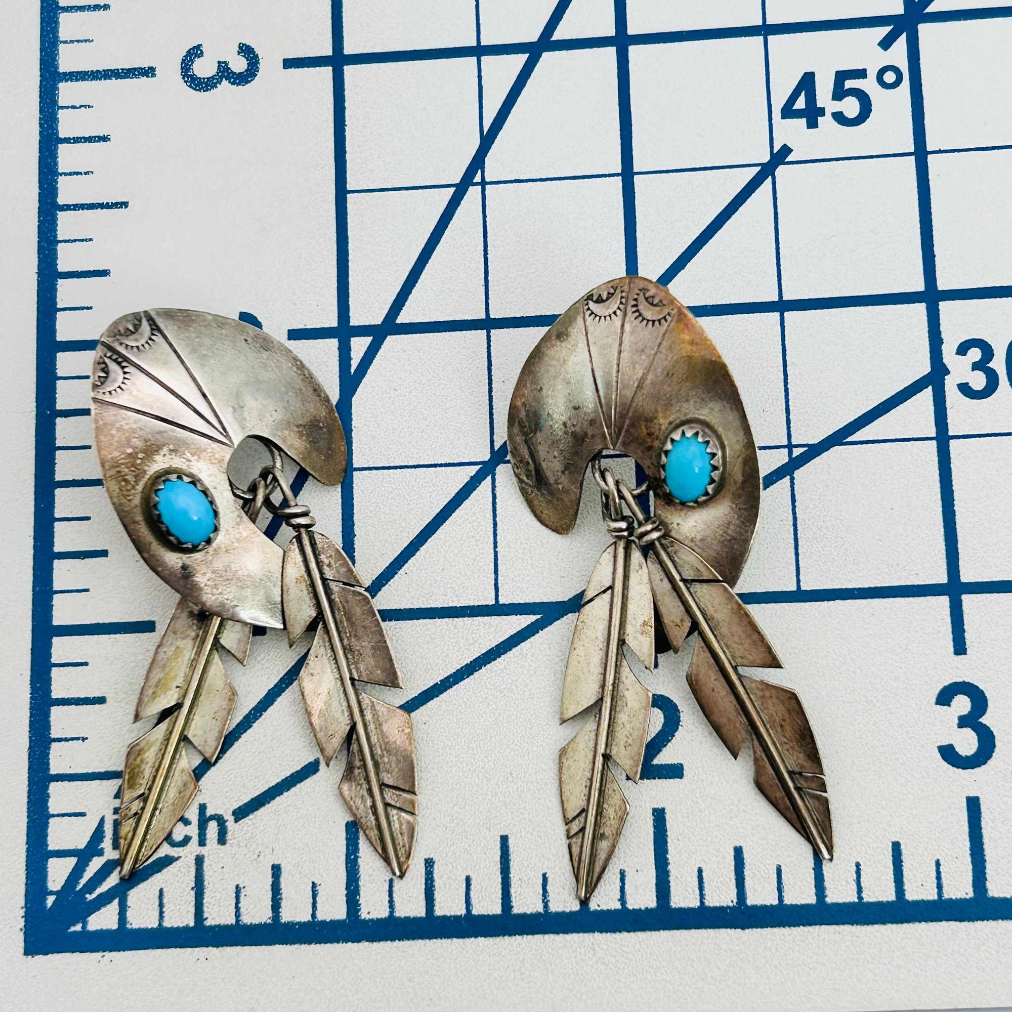 Navajo signed JAC Sterling shield and feather earrings 8.12 g