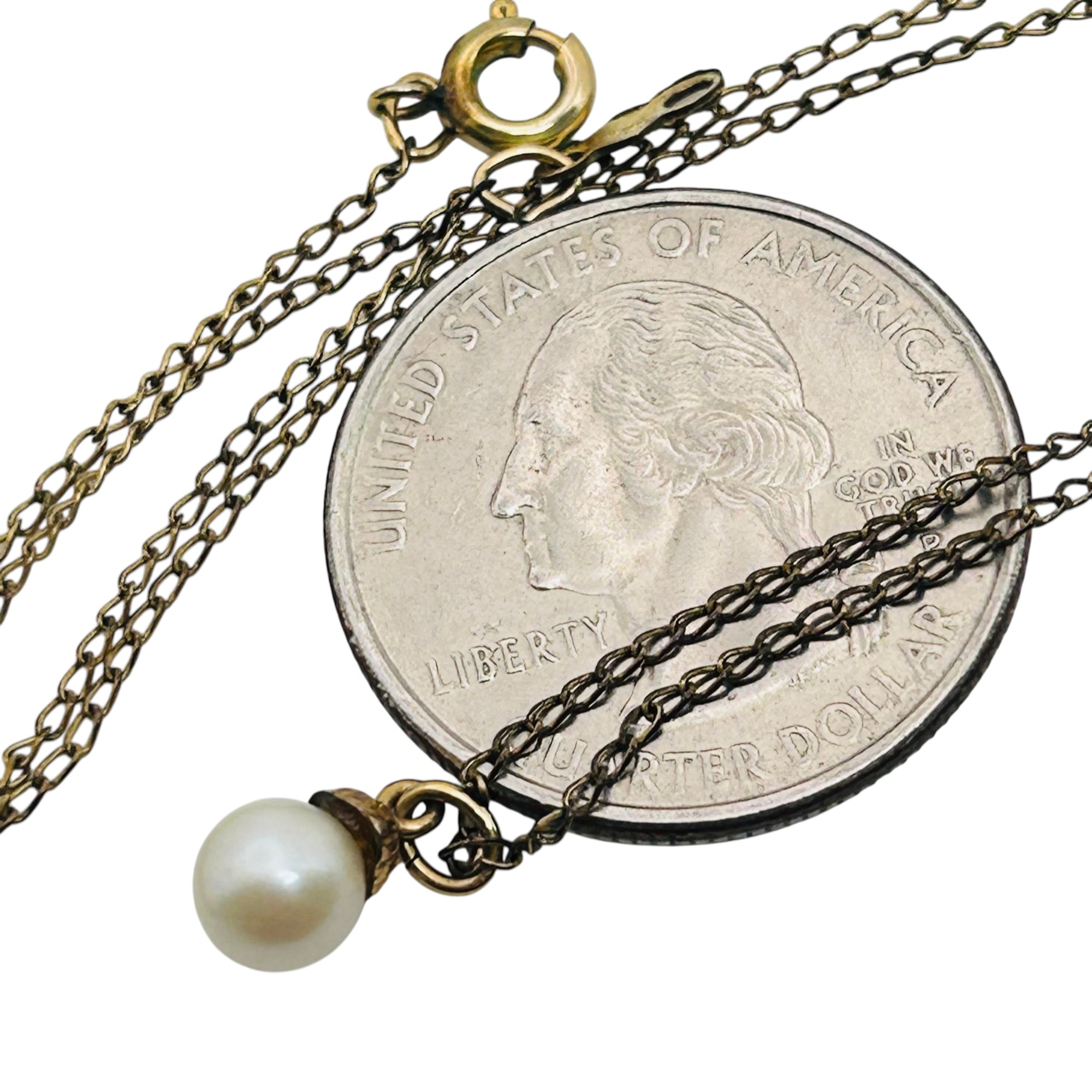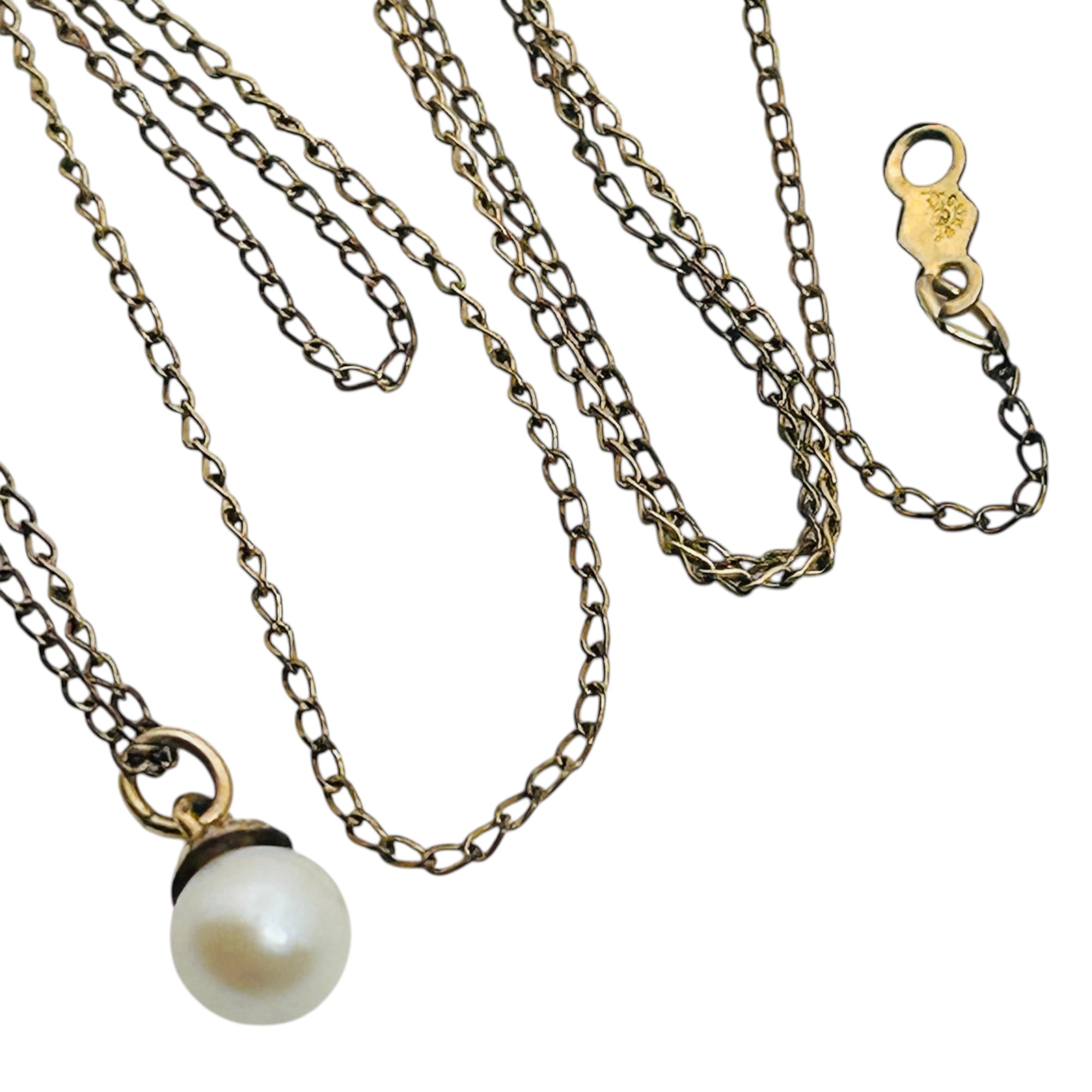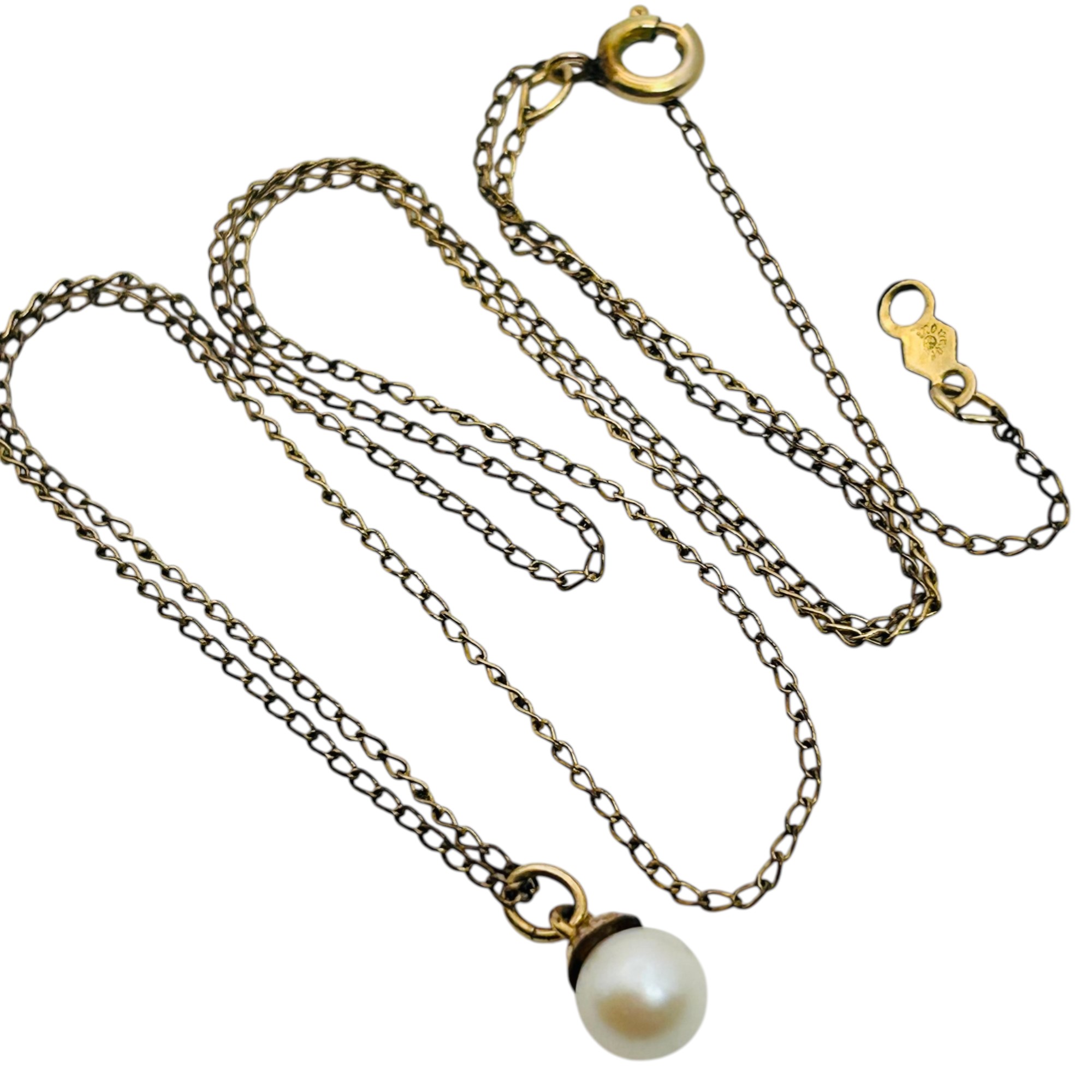 Sterling GF pearl pendant cable chain necklace 1.44 g