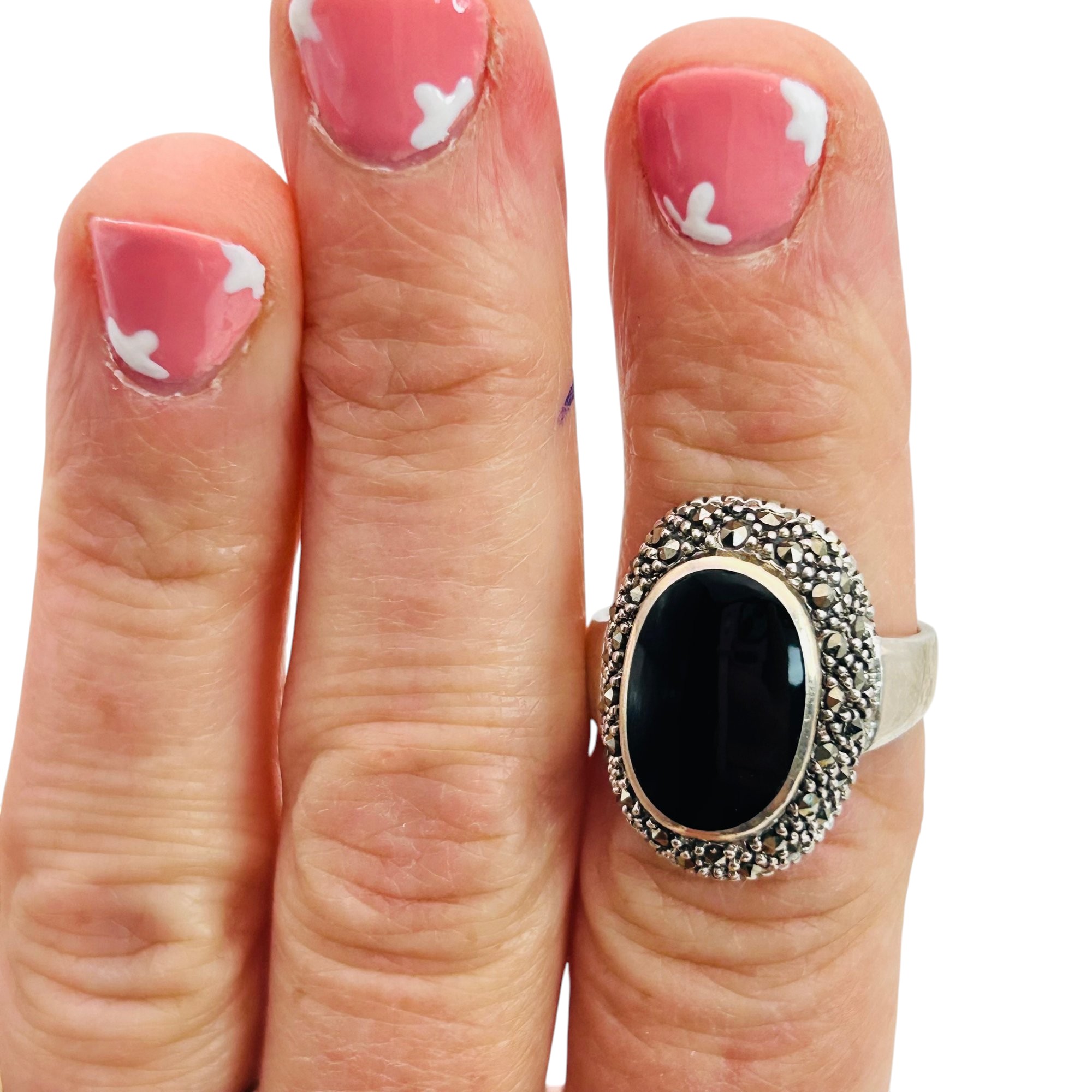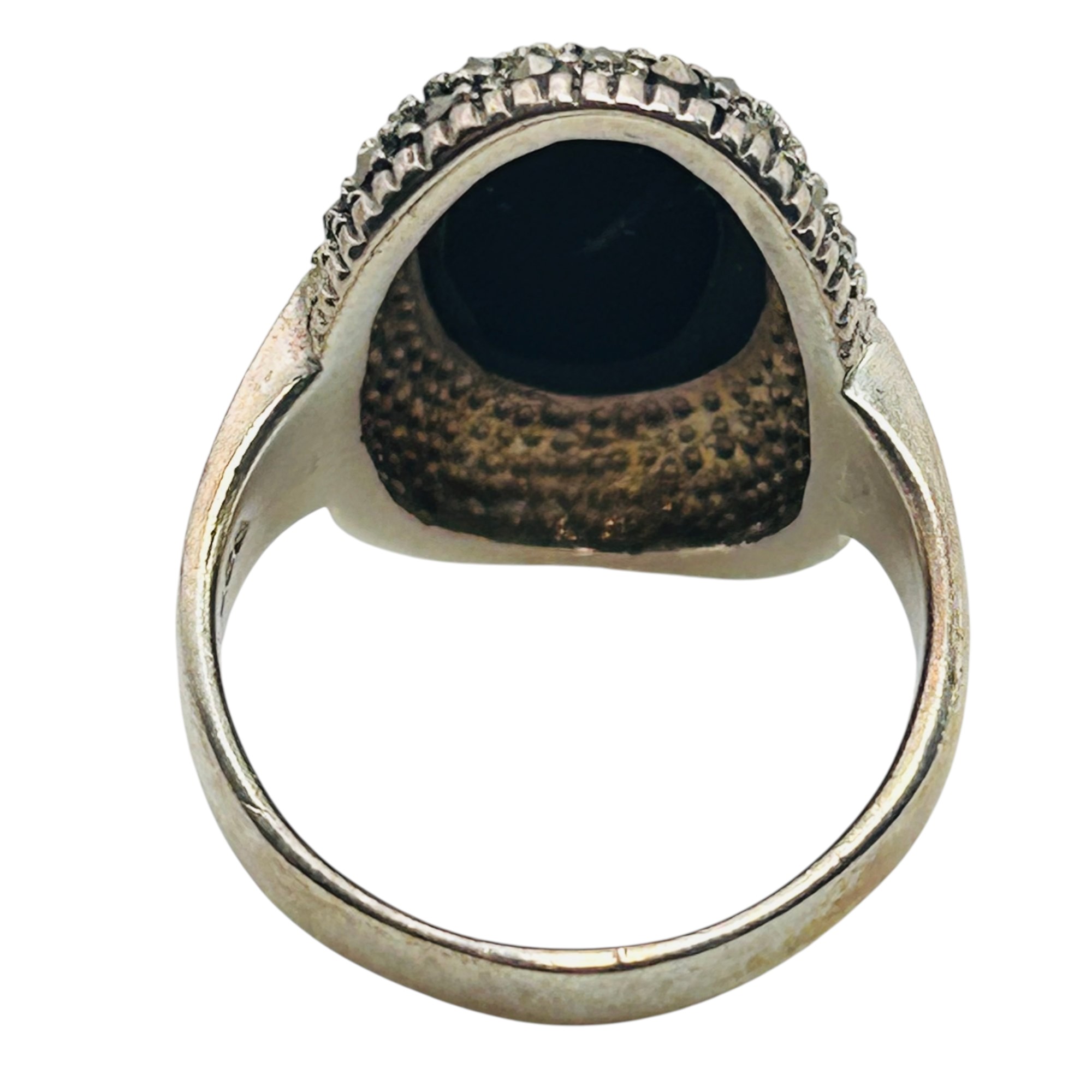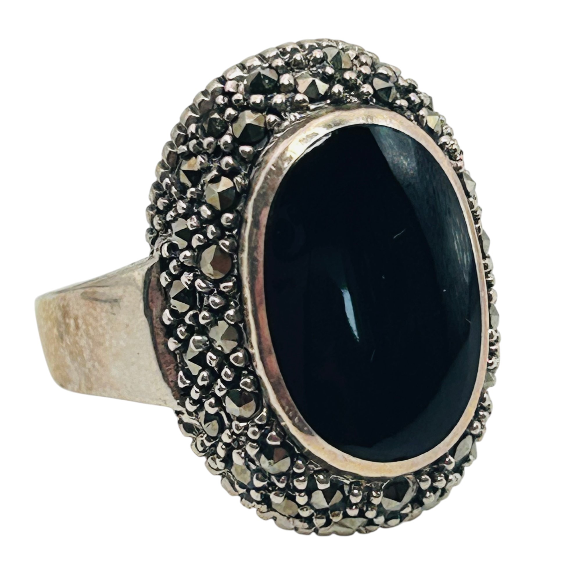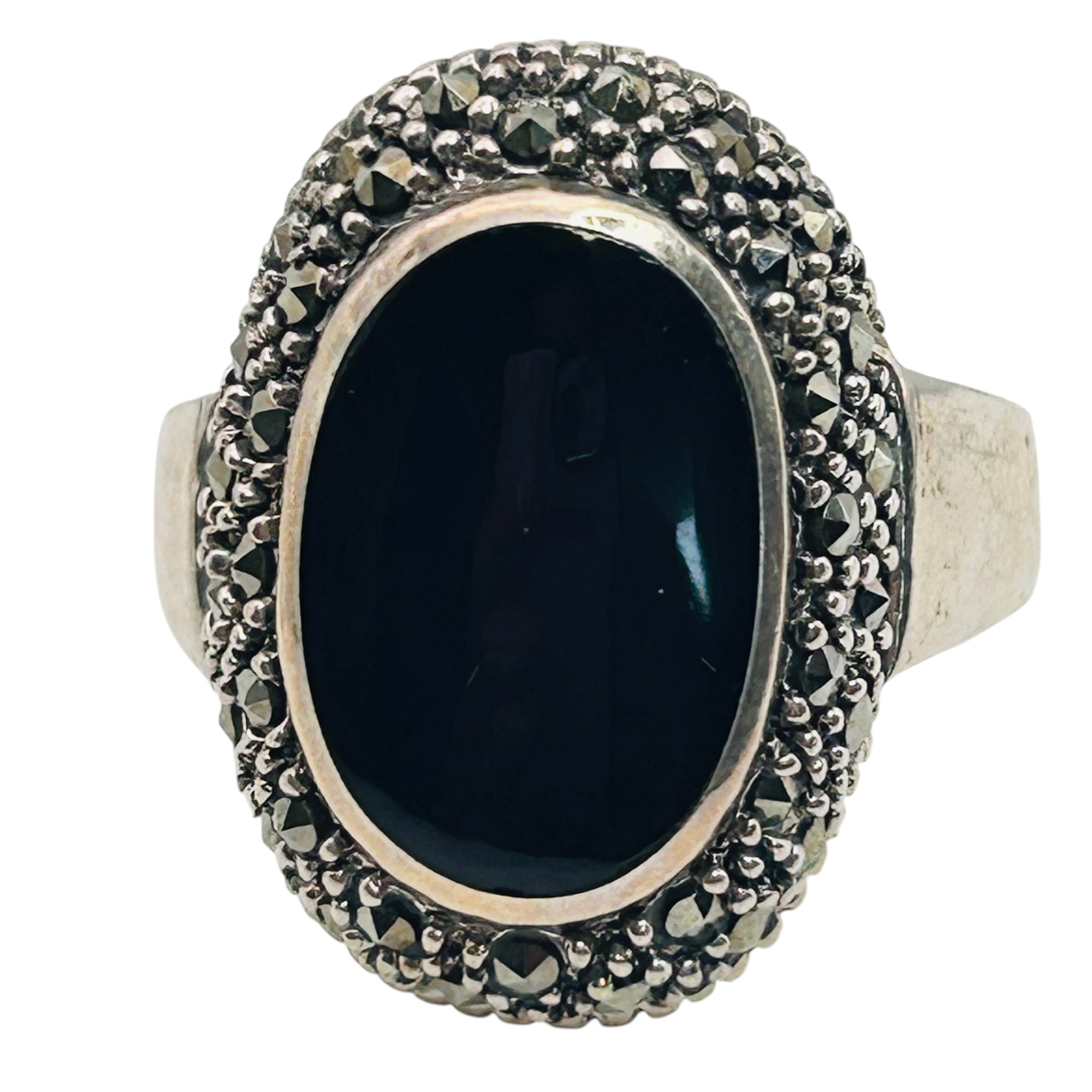 ONYX and MARCASITE Sterling statement ring size 8 6.22 g