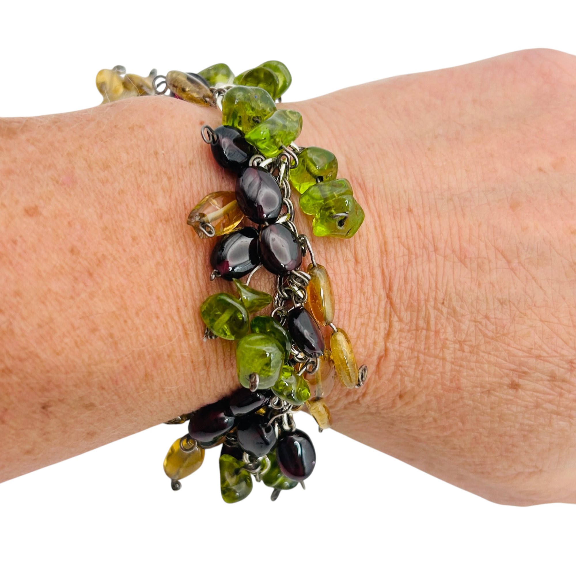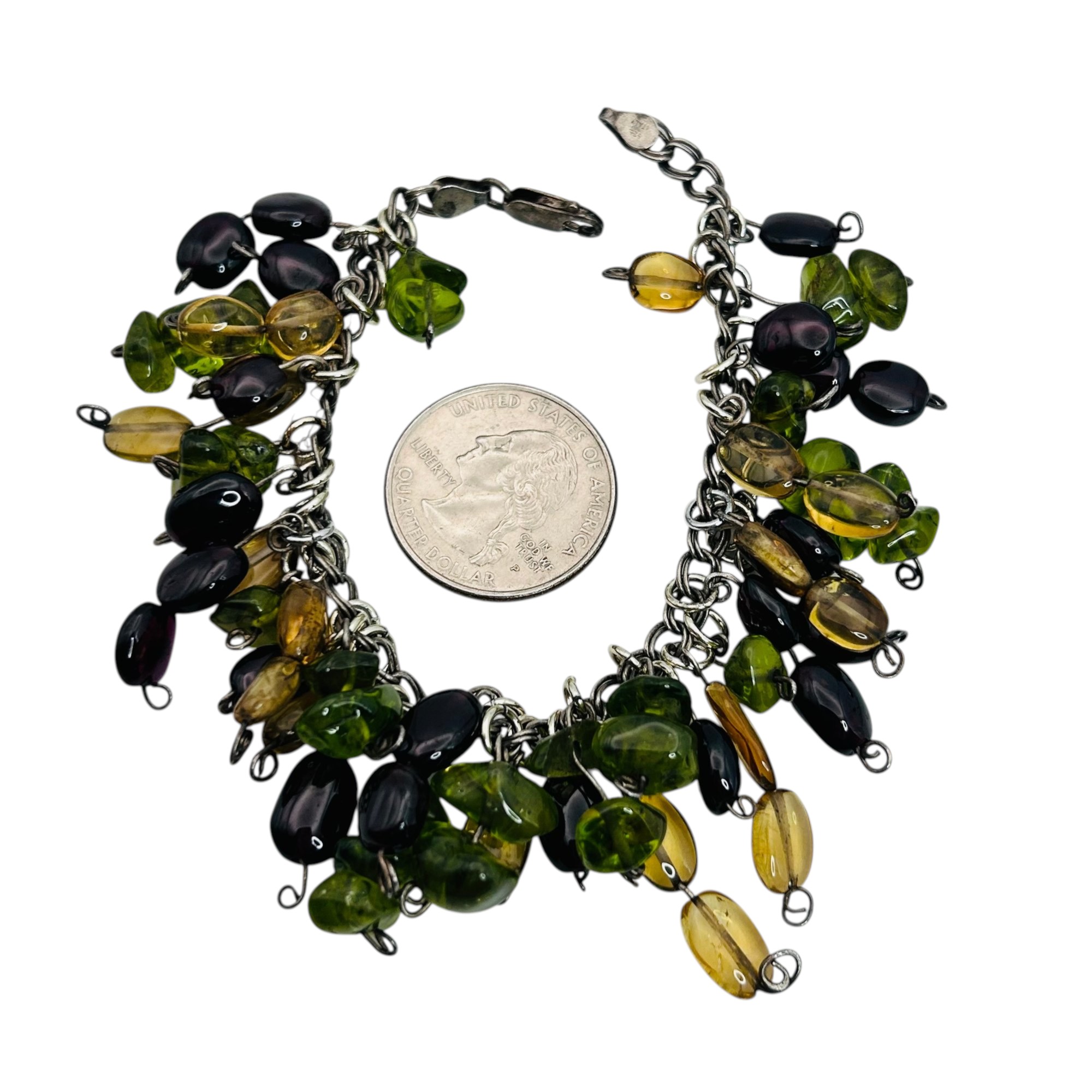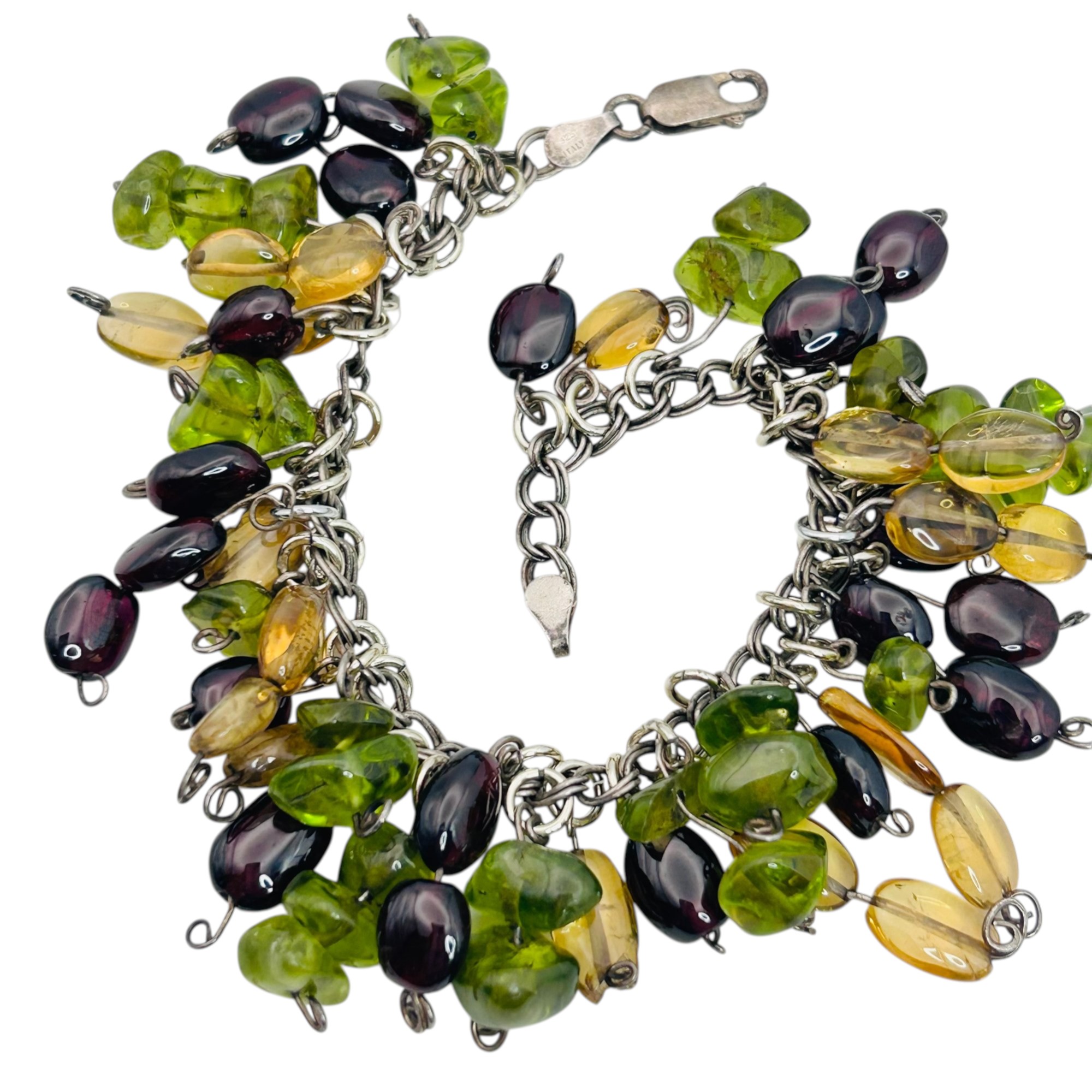 Italy garnet emerald citrine sterling dangle bracelet 45.9 g
