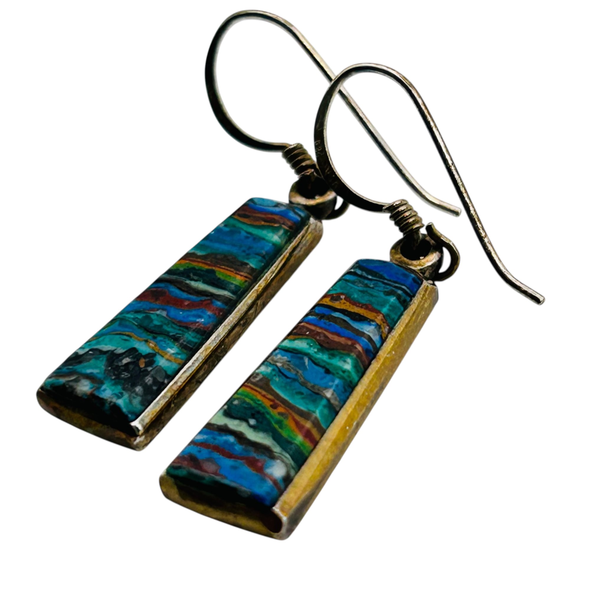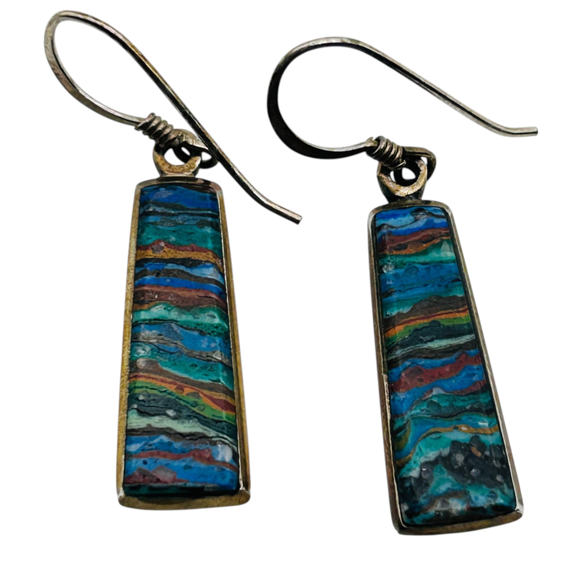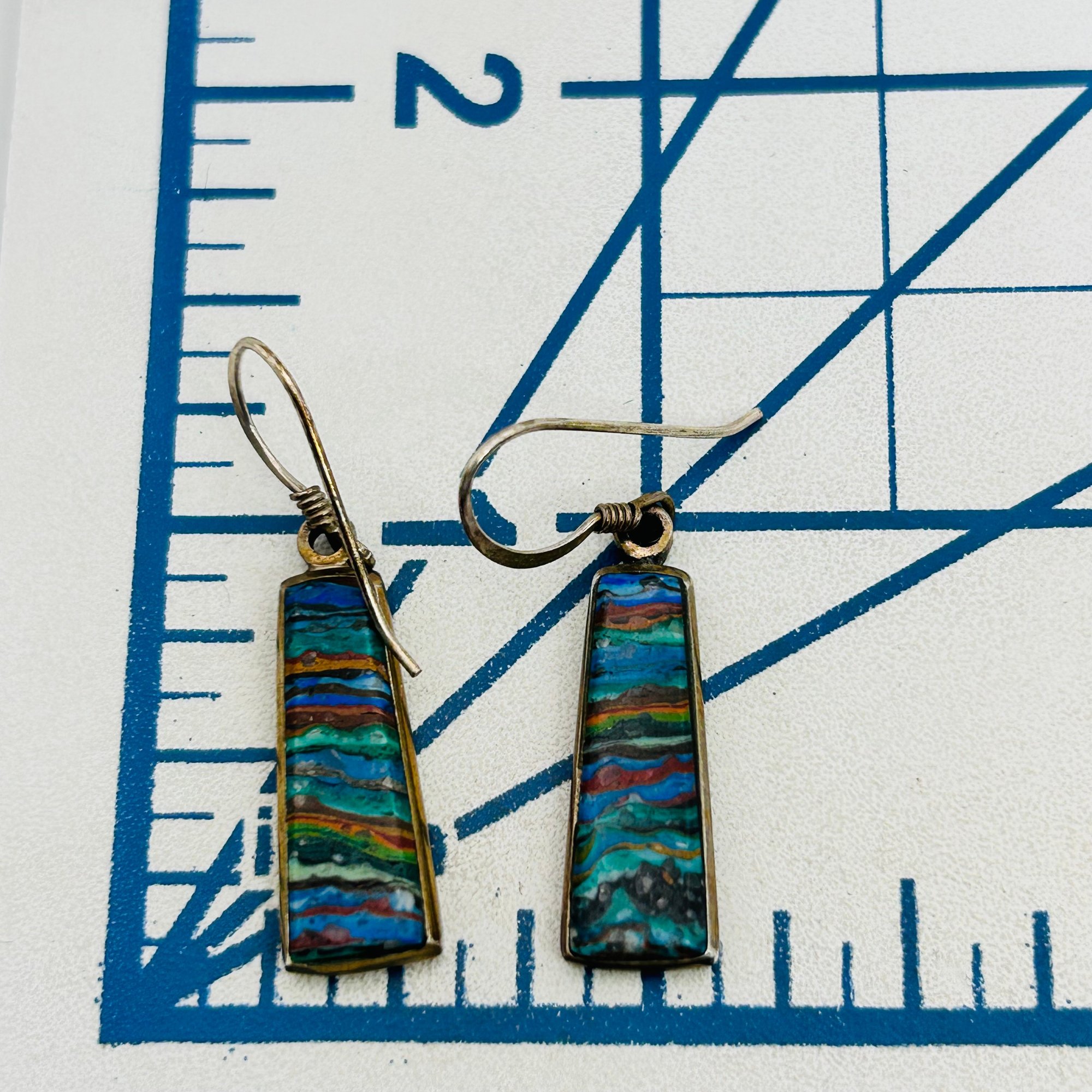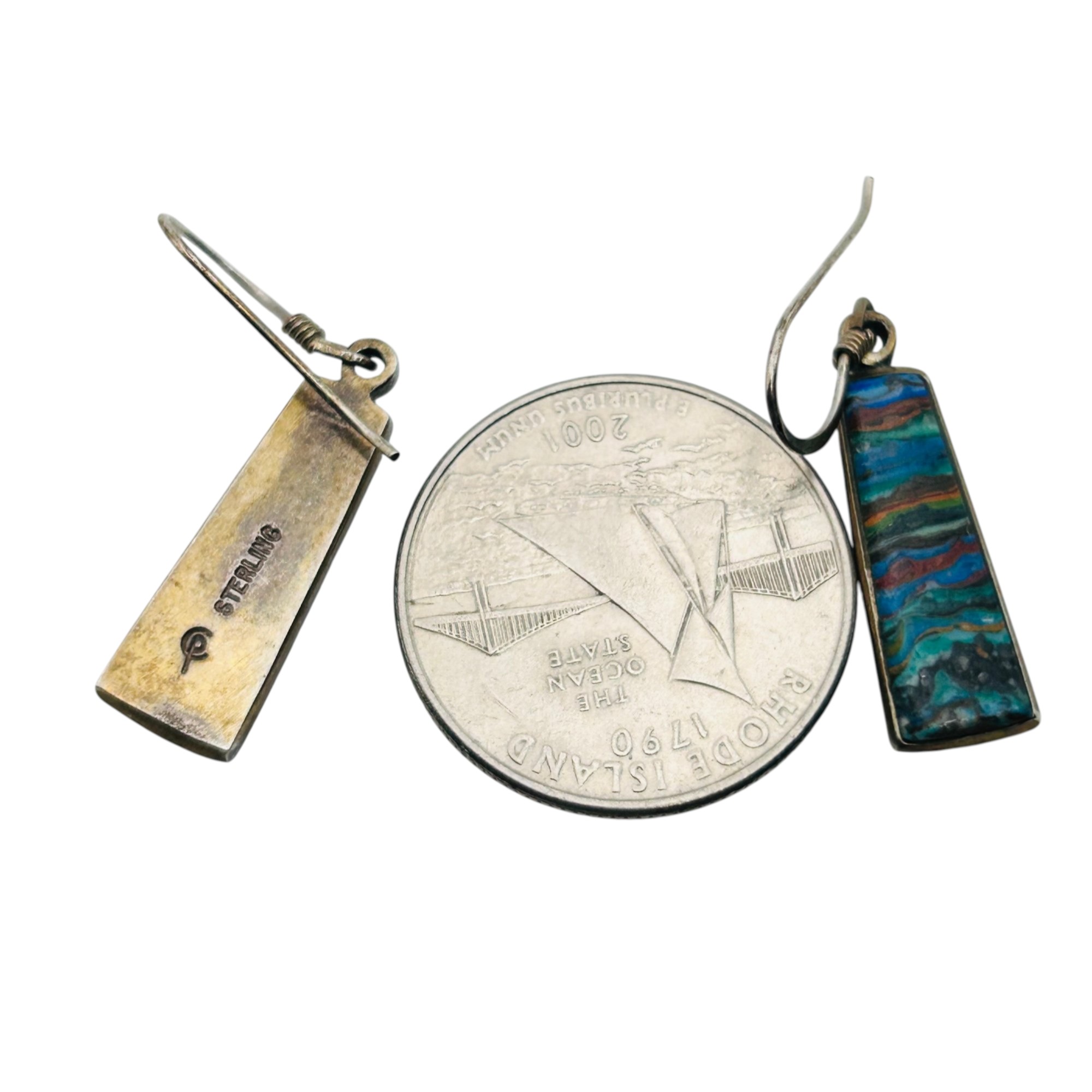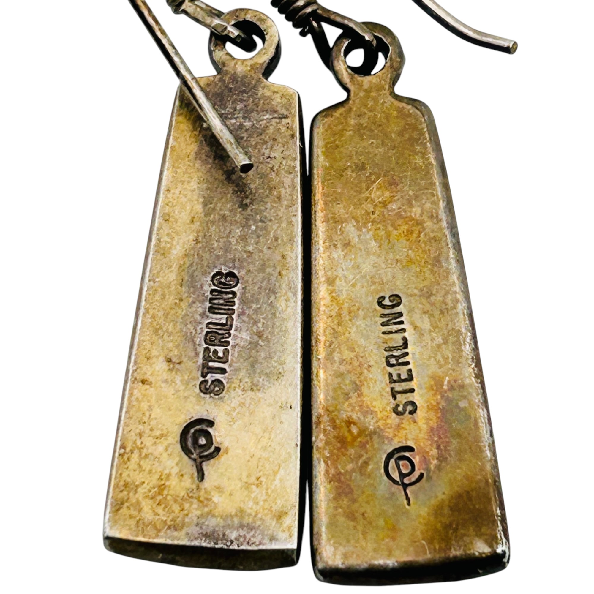 Navajo signed CP Sterling inlaid stone dangle earrings 3.58 g