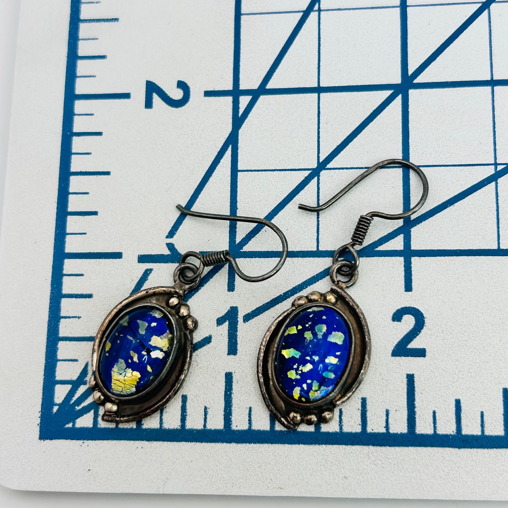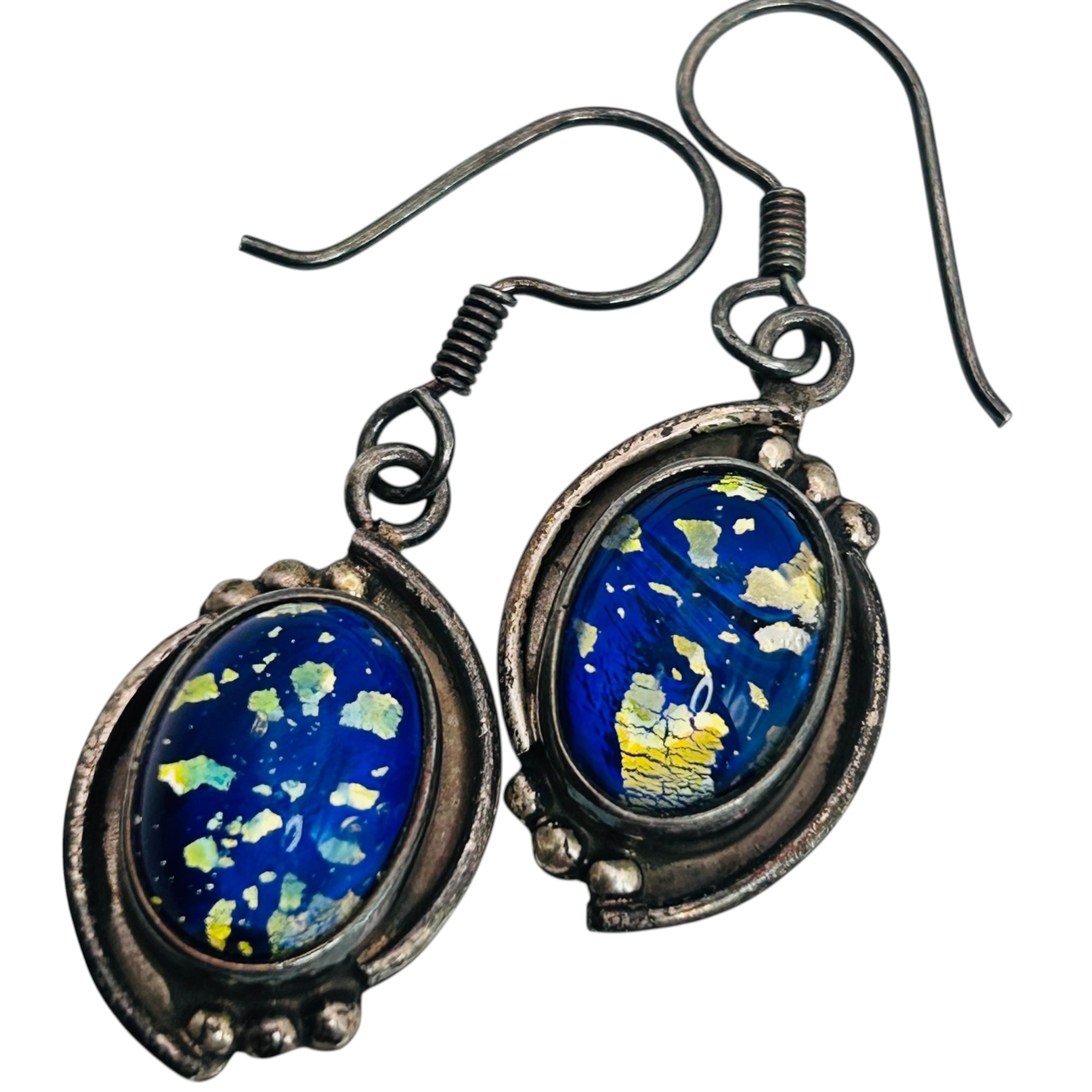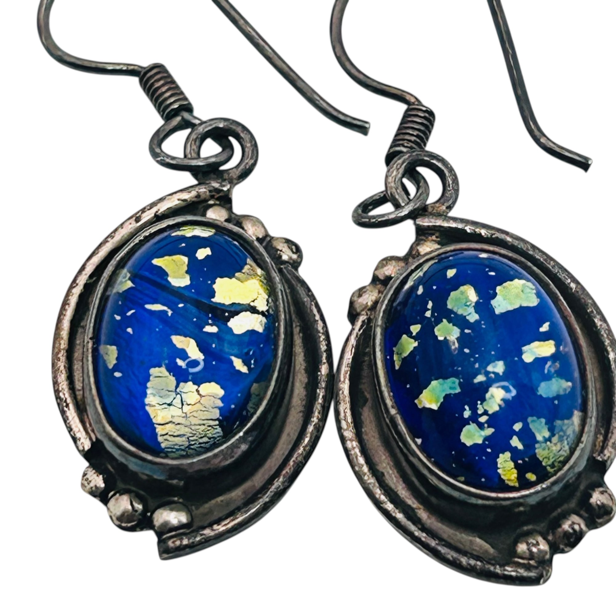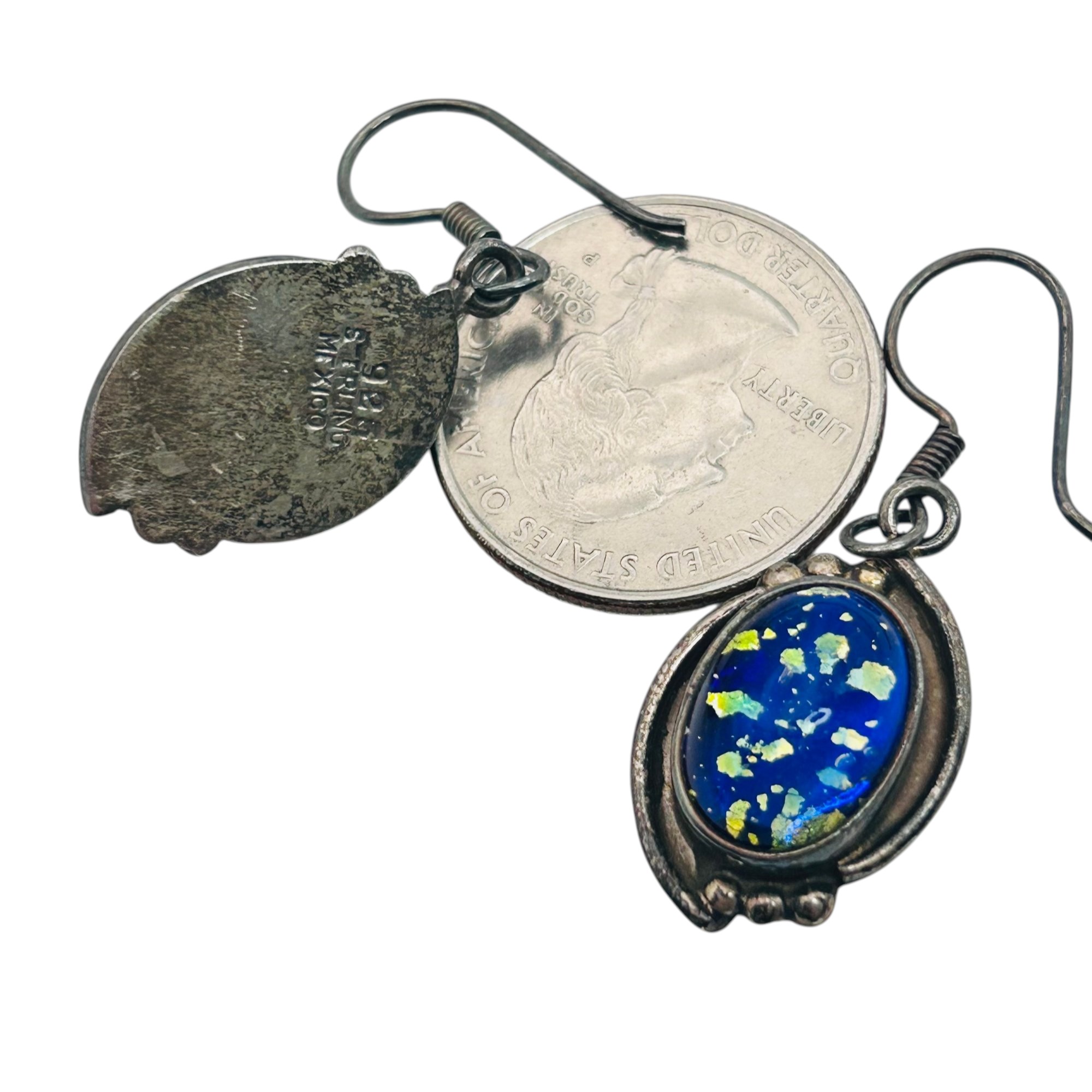 Mexico Sterling blue DICHROIC glass dingle earrings 10.89 g