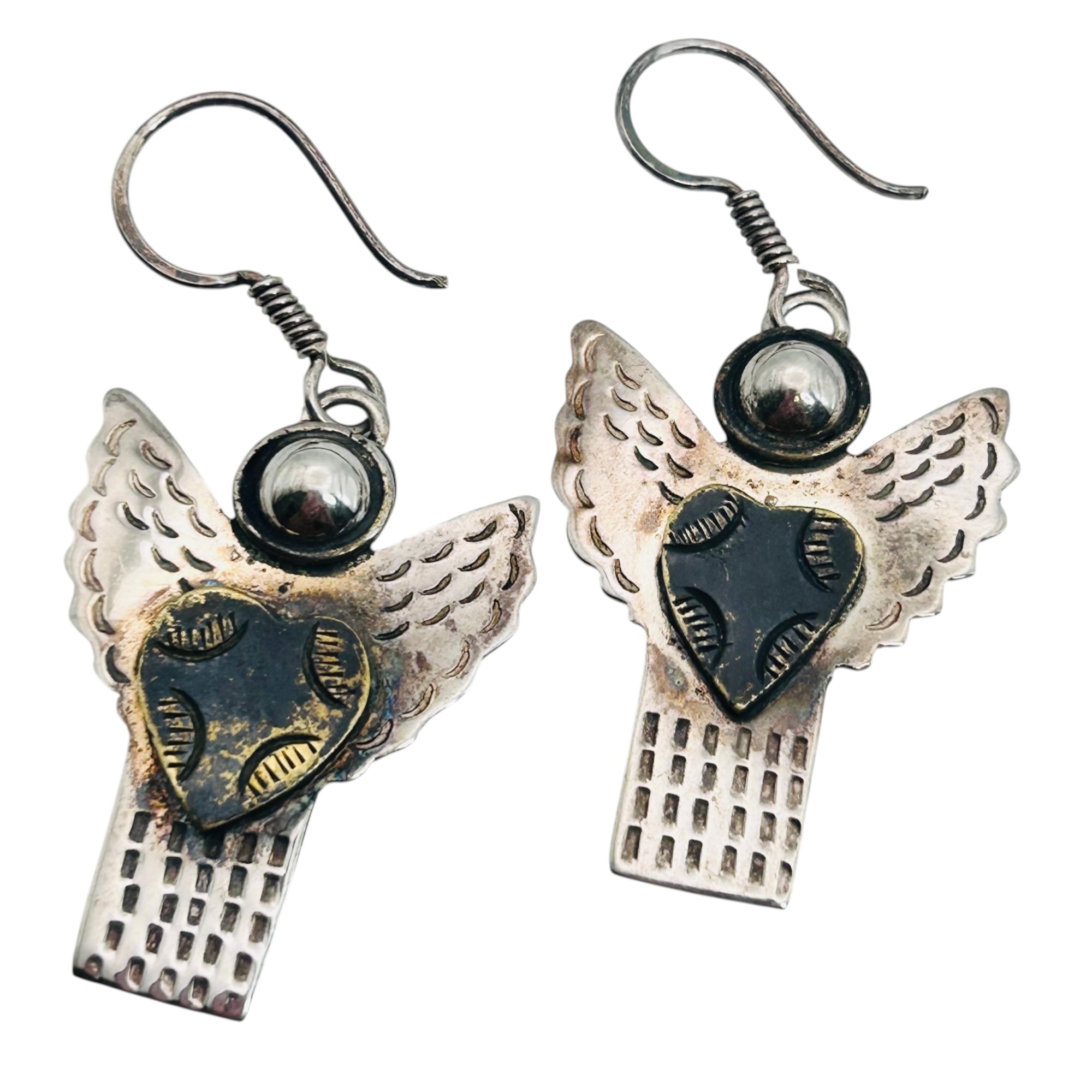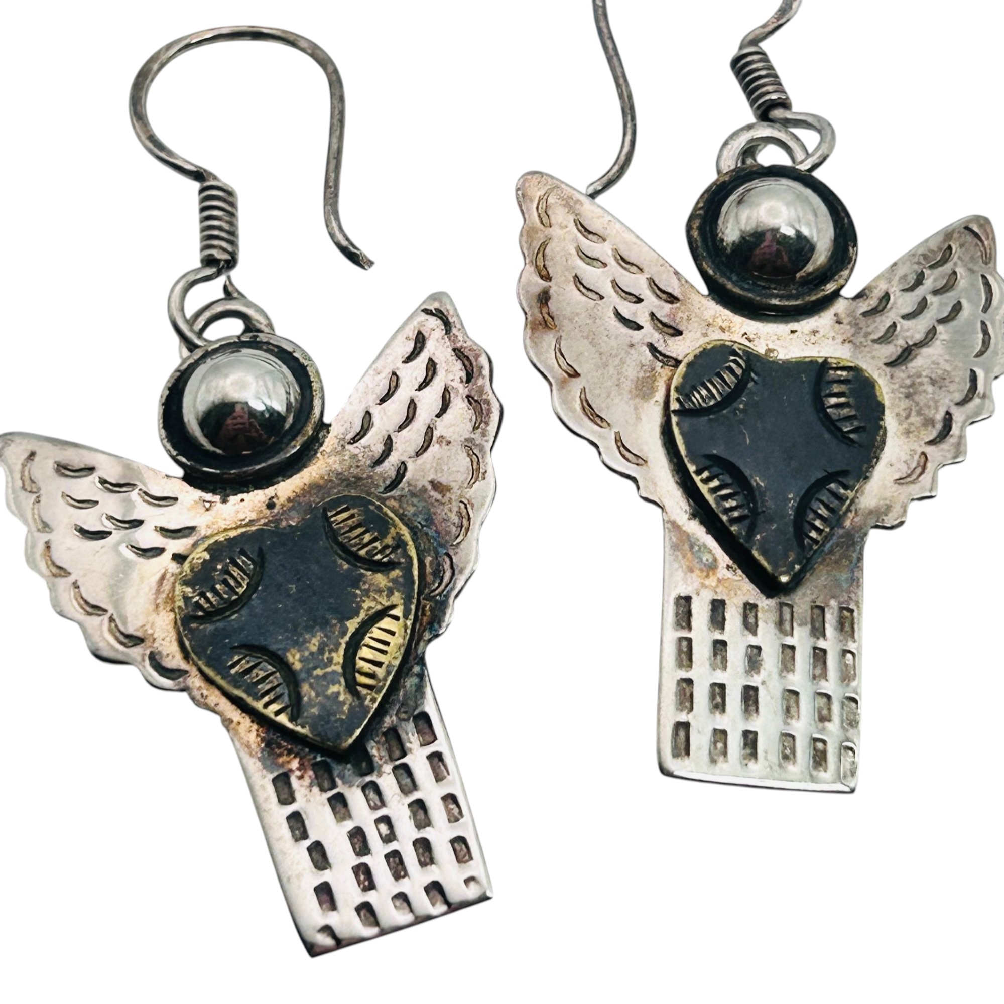 Signed US-Mexico Sterling Angel dangle earrings 9.6 g