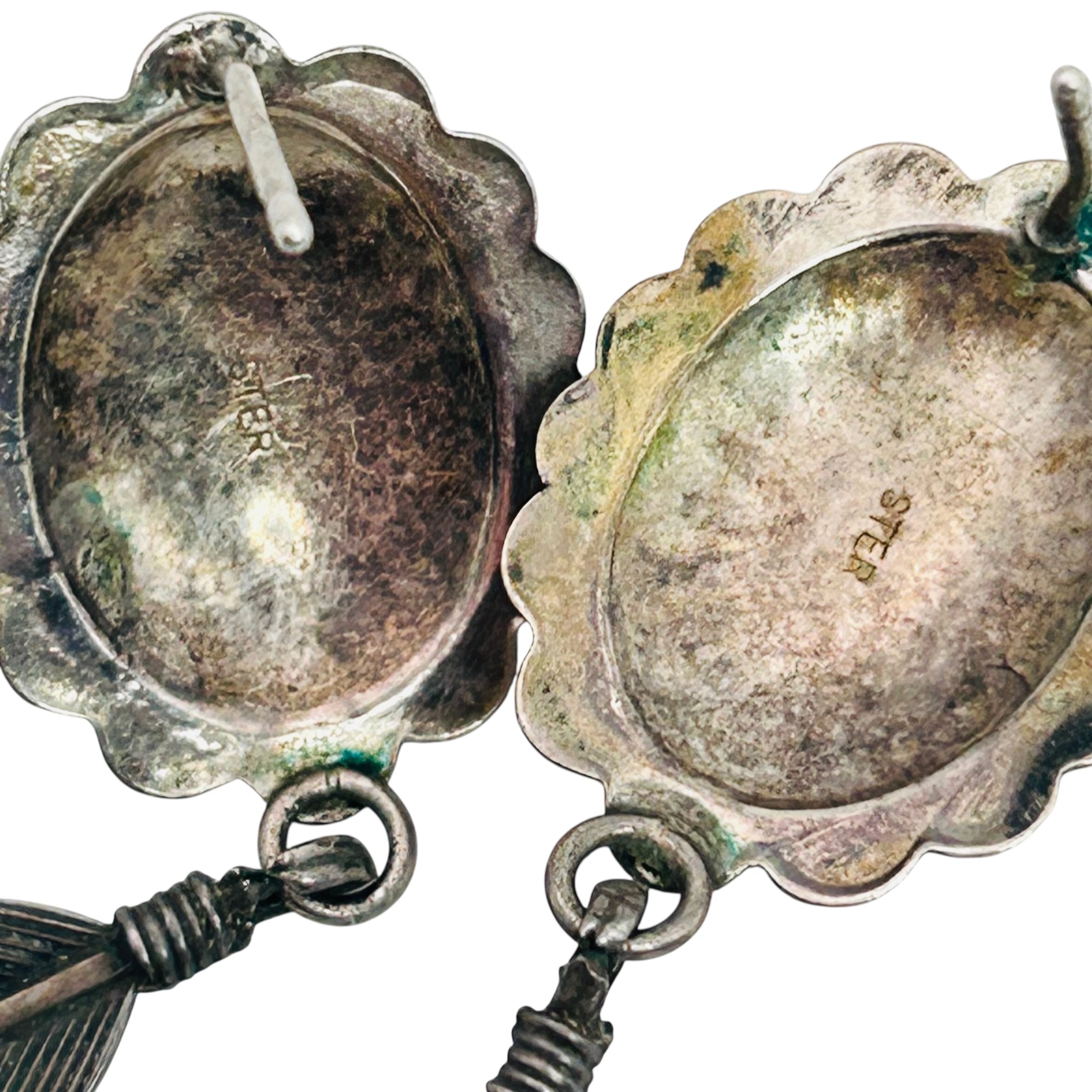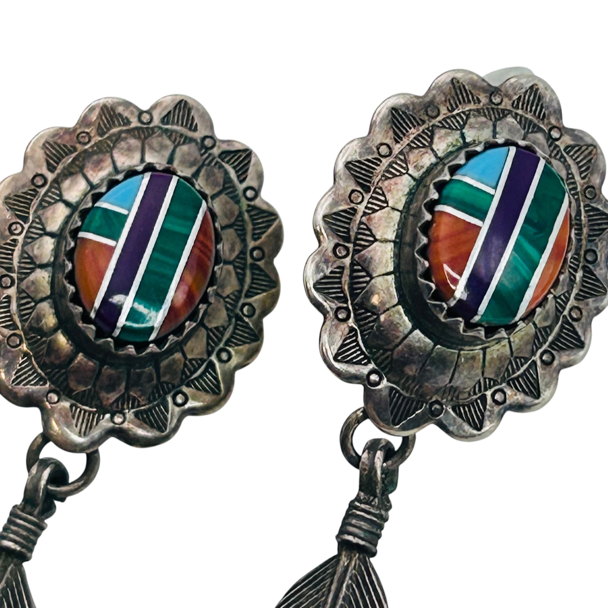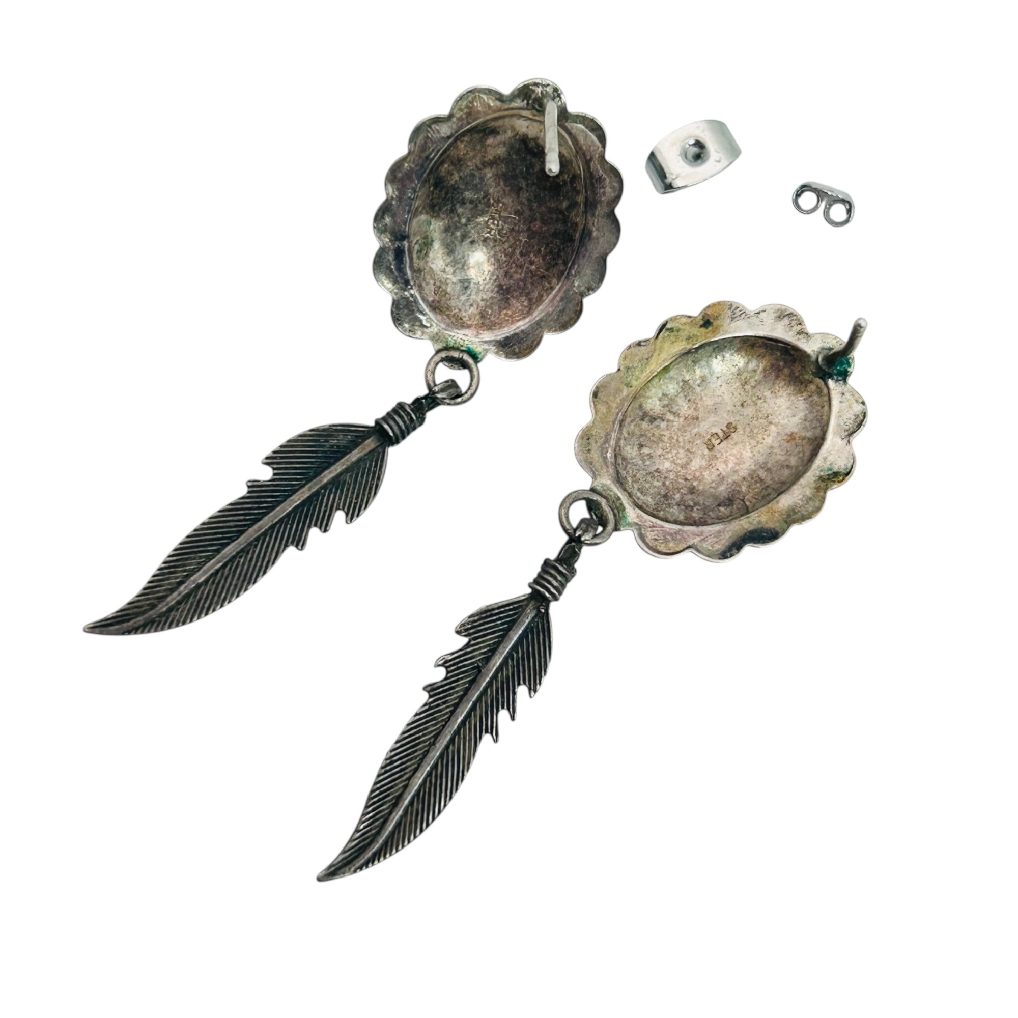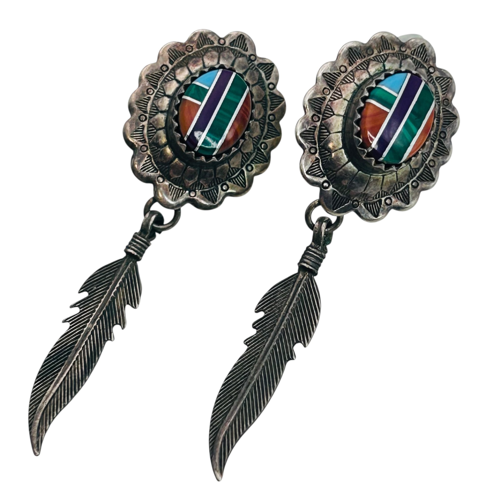 Navajo multi gem sterling feather dangle earrings 5.74 g