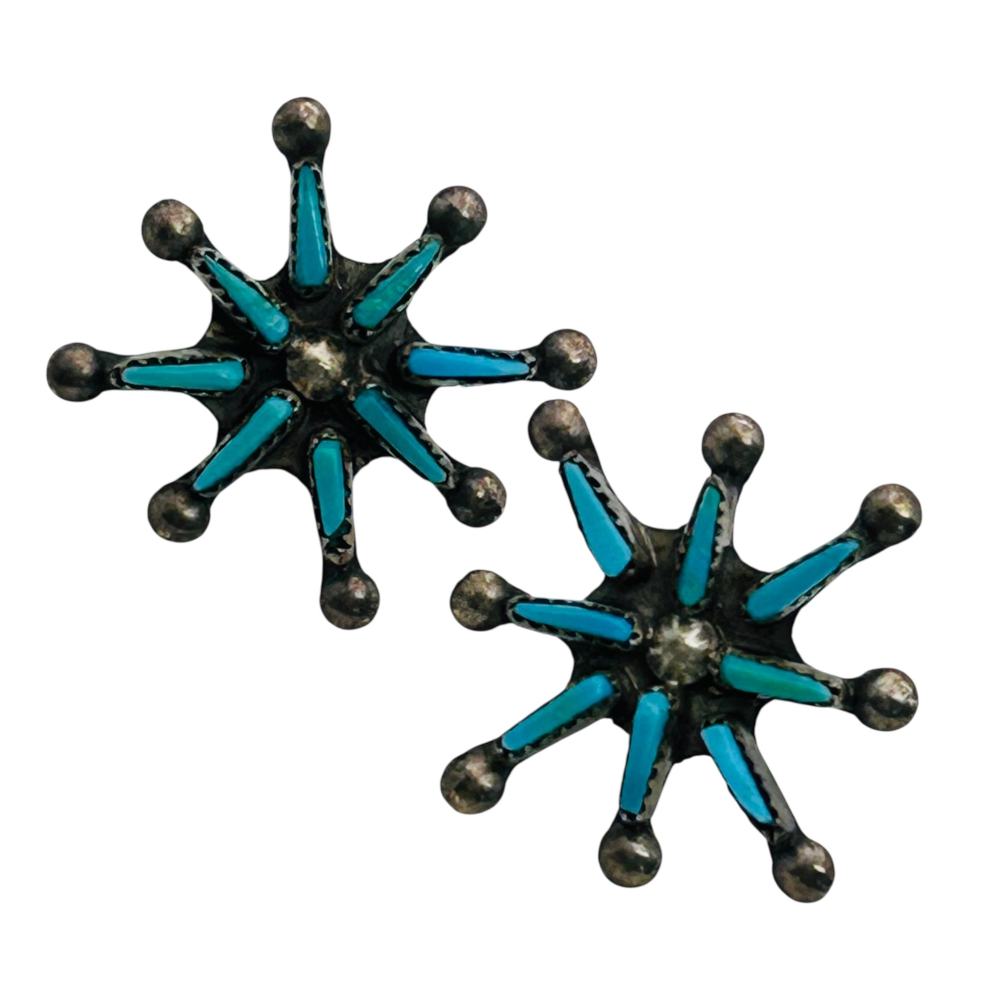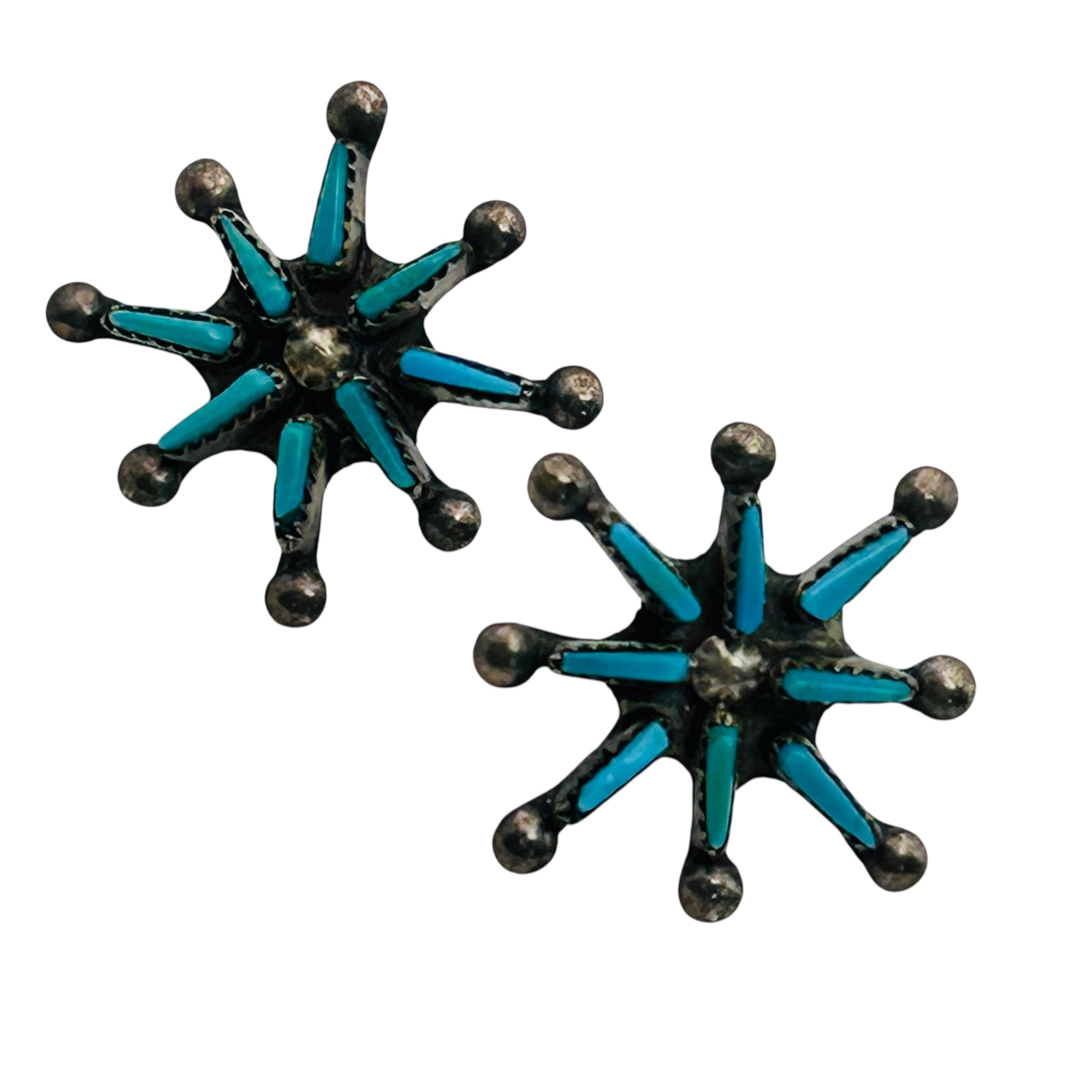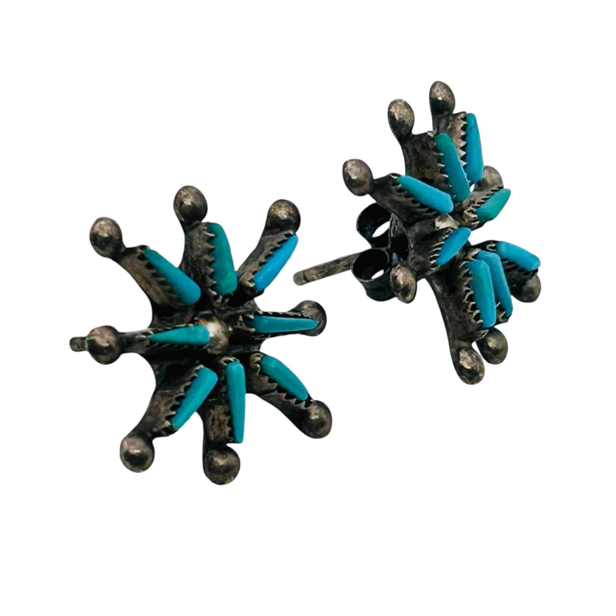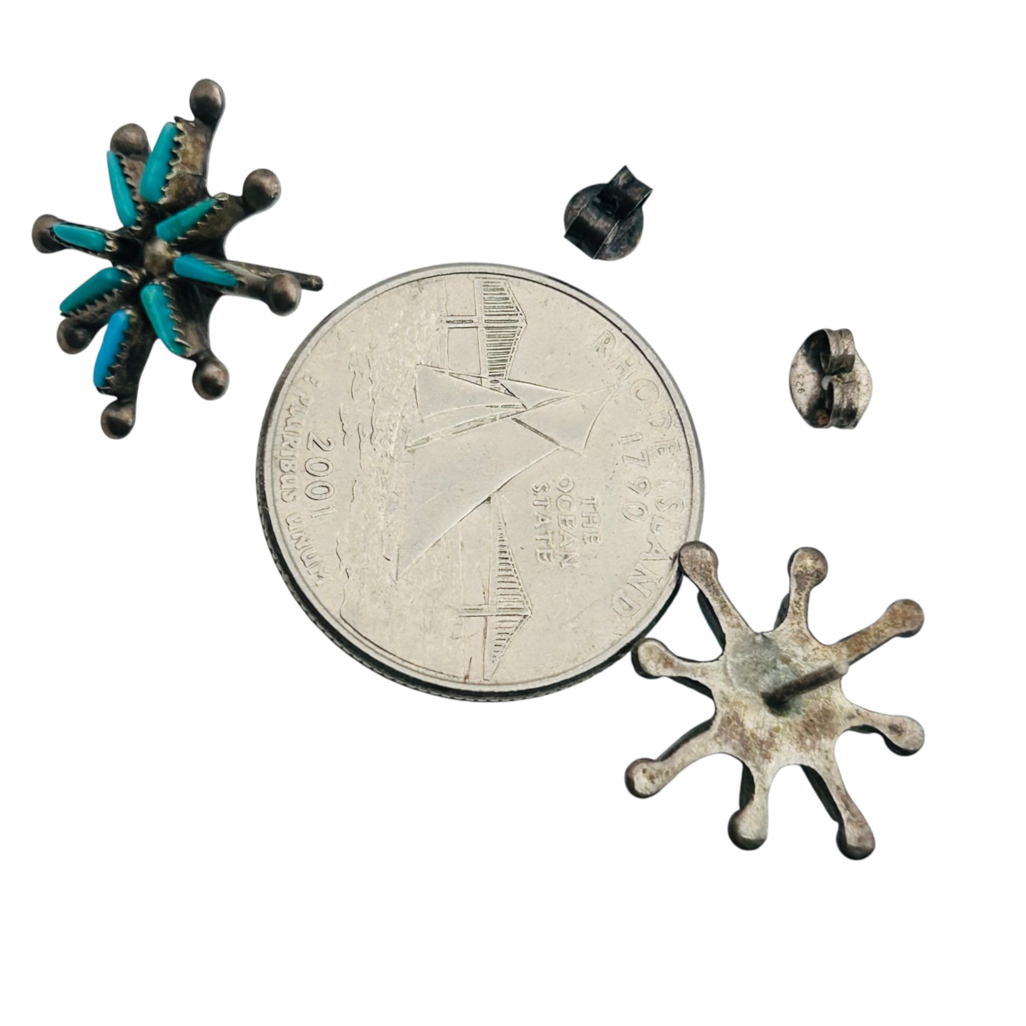 ZUNI turquoise needlepoint sterling earrings 2.15 g