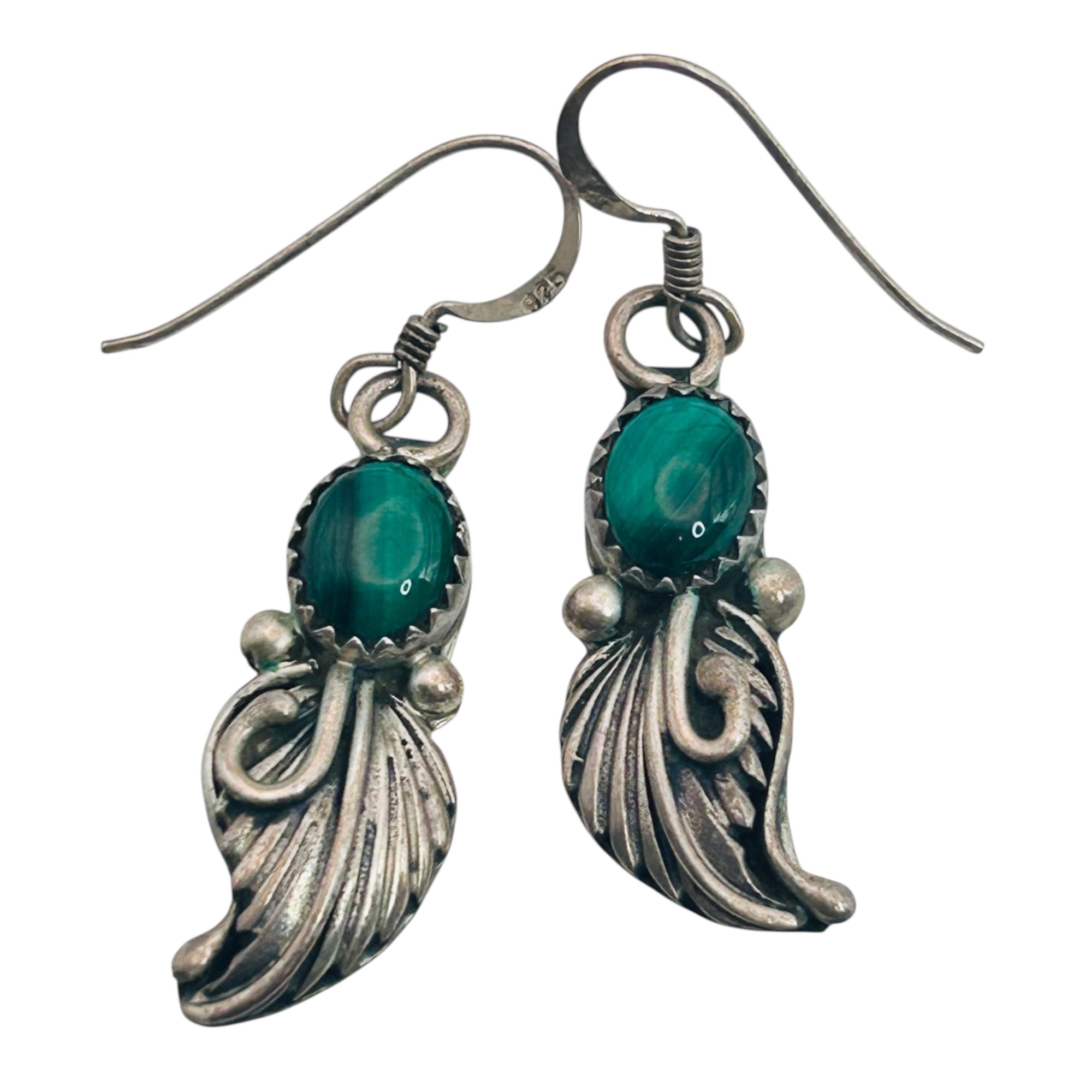 Southwest Malachite Sterling dangle earrings 5.04