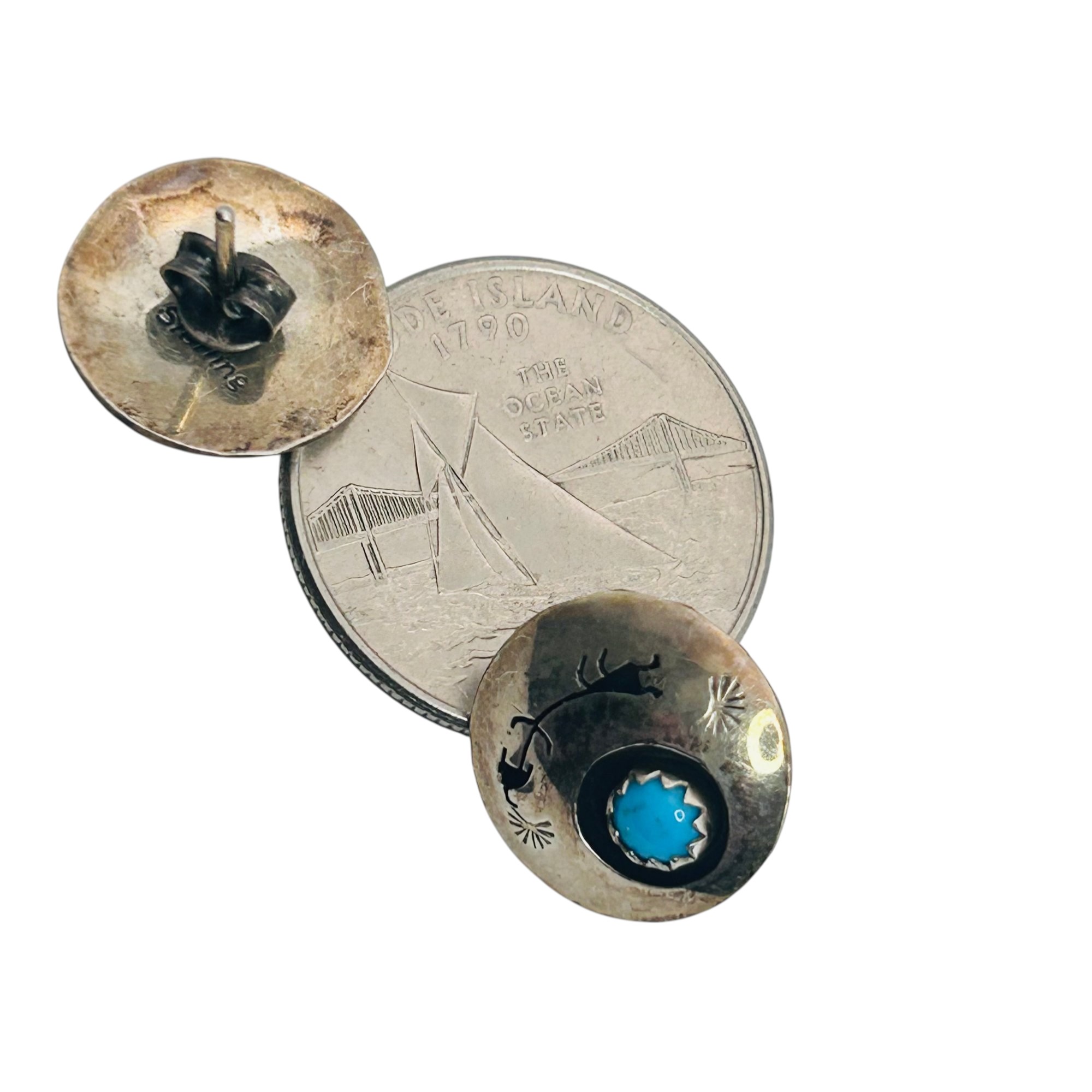 Navajo turquoise Sterling disc earrings 2.46 g