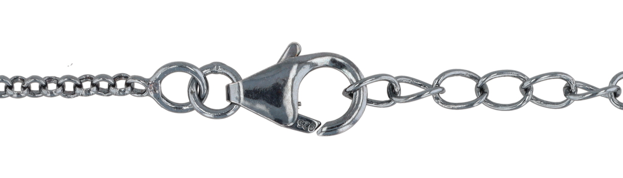 Necklace length: 19 inches. Pendant dimensions: 1.5 inches (width) x 0.75 inches (height).