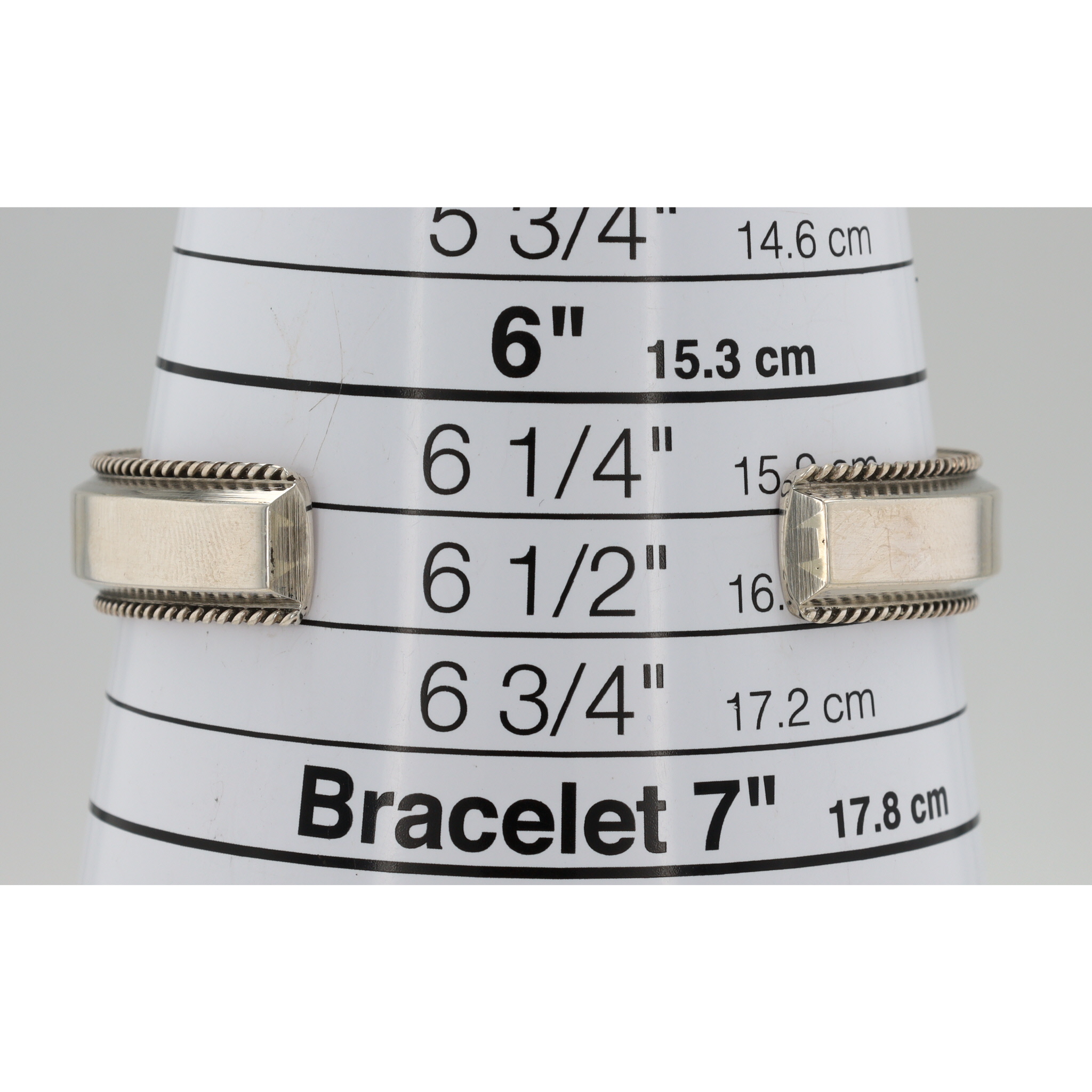 Internal circumference (including gap): 6 1/4" (15.9 cm)