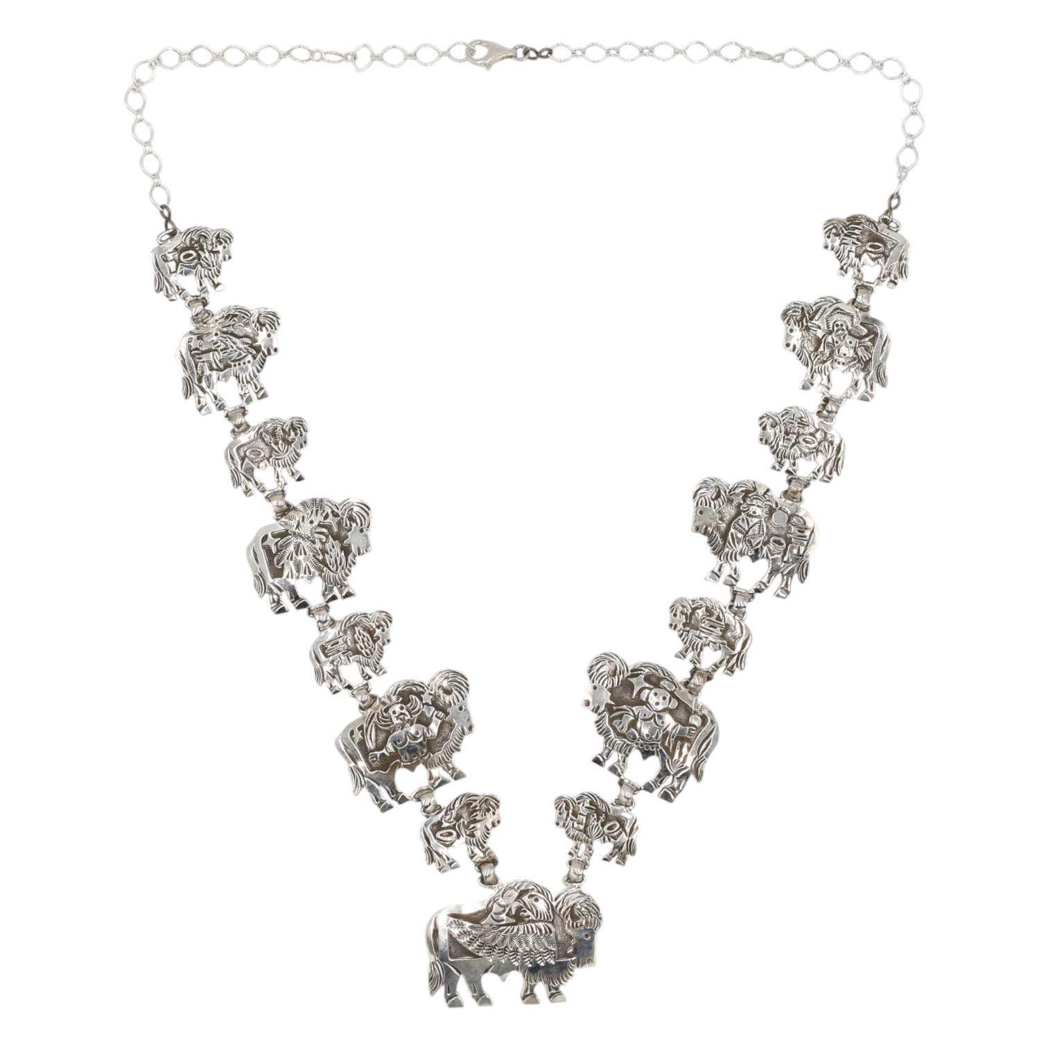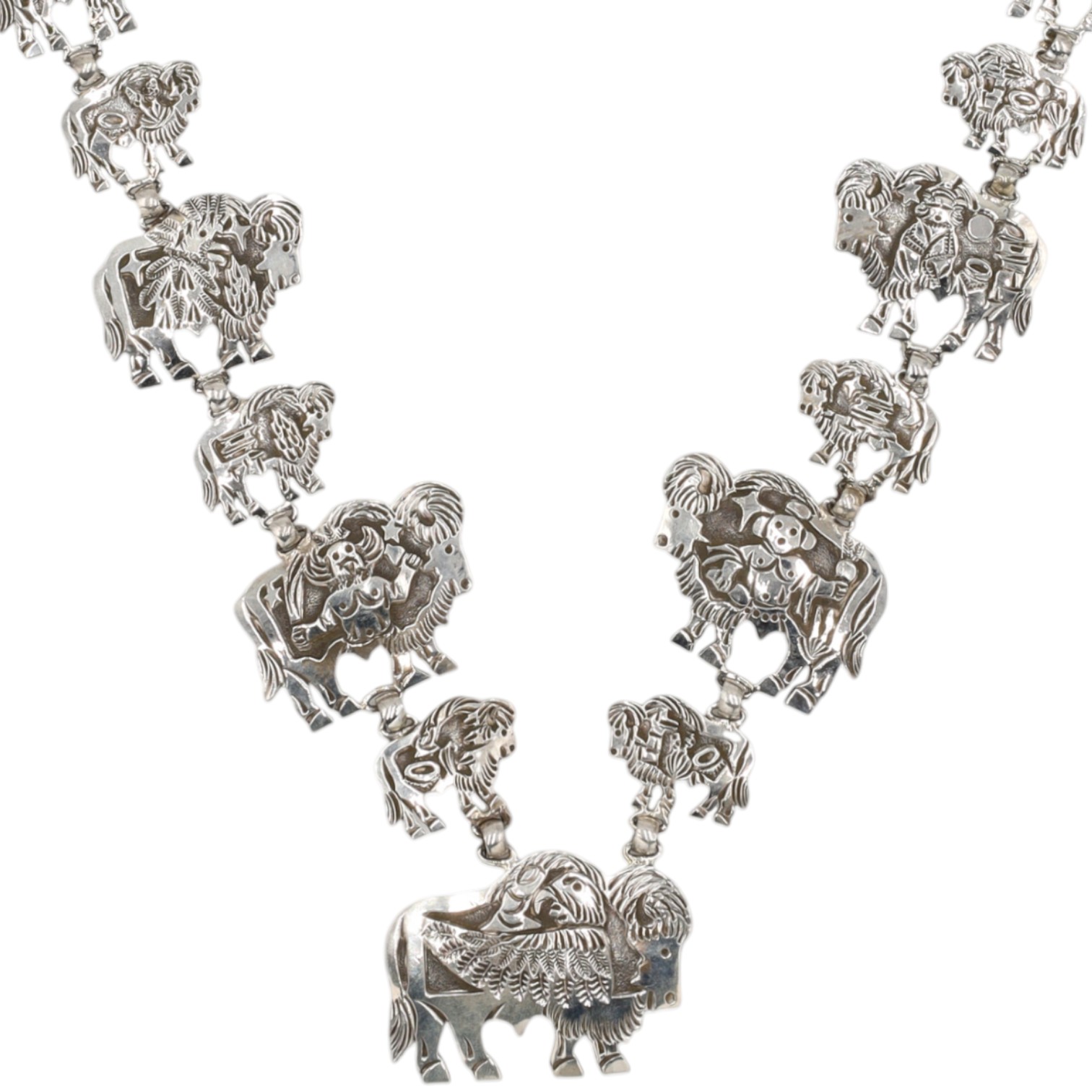 Lloyd Becenti Navajo Handmade Sterling Silver Bison Storyteller Necklace