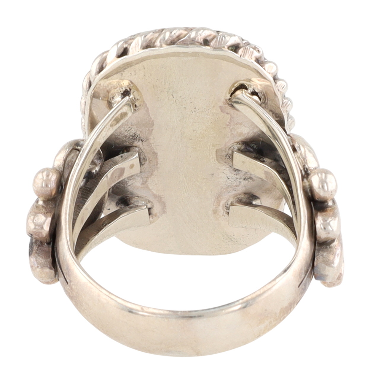Stone setting dimensions: Approximately 1.5 inches (3.8 cm) long x 1 inch (2.5 cm) wide.