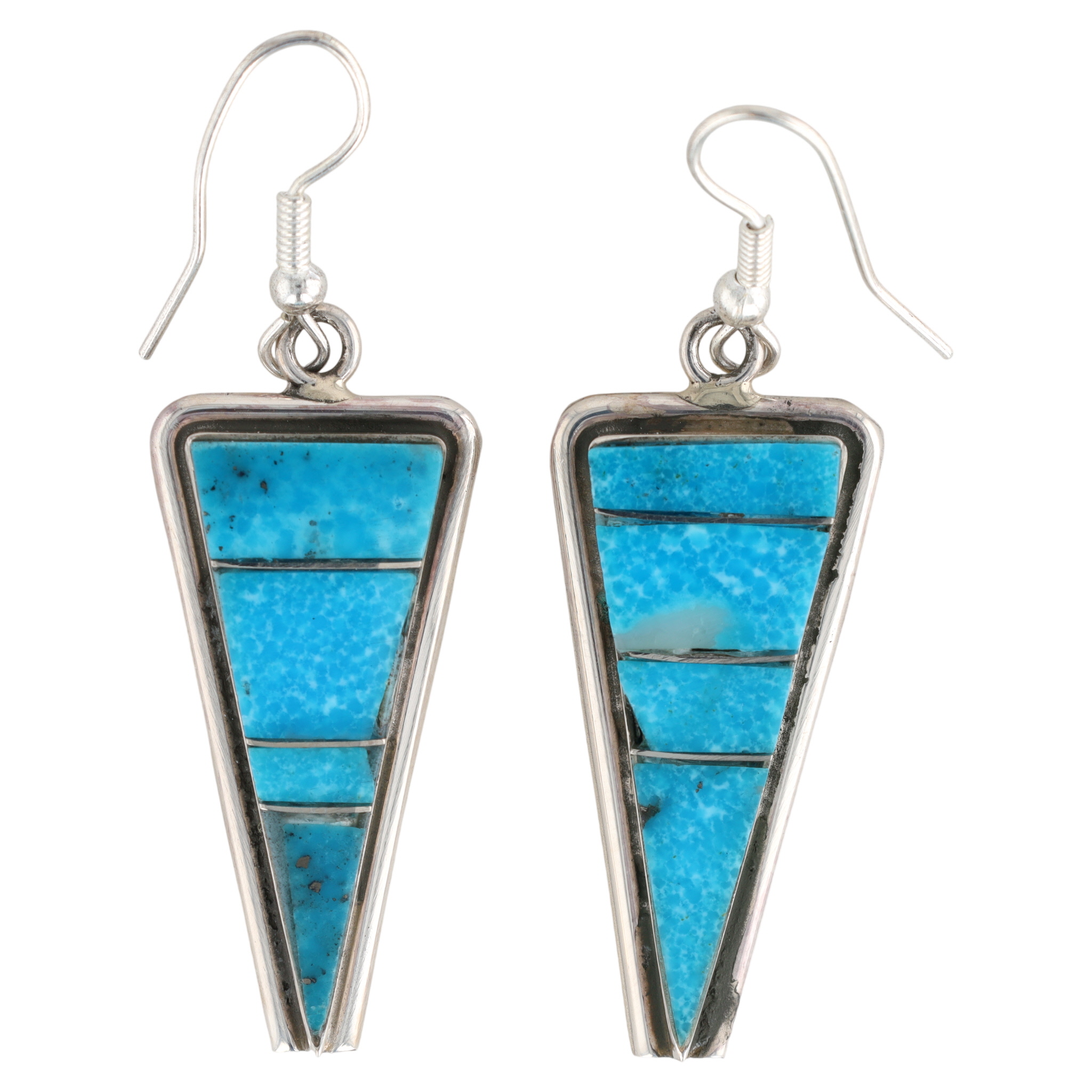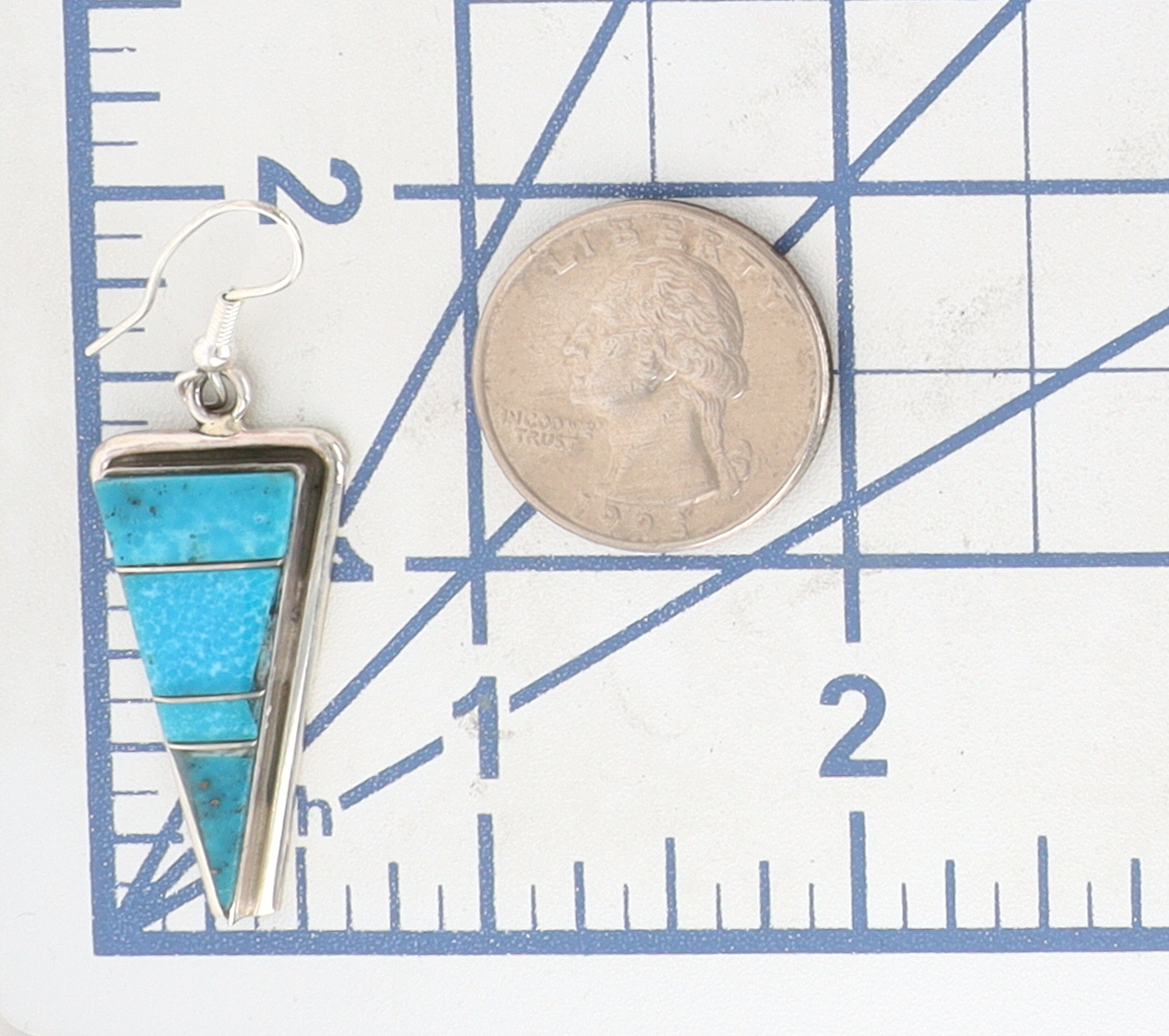 Brandon Etcity Navajo Sterling Turquoise Inlay Dangle Earrings