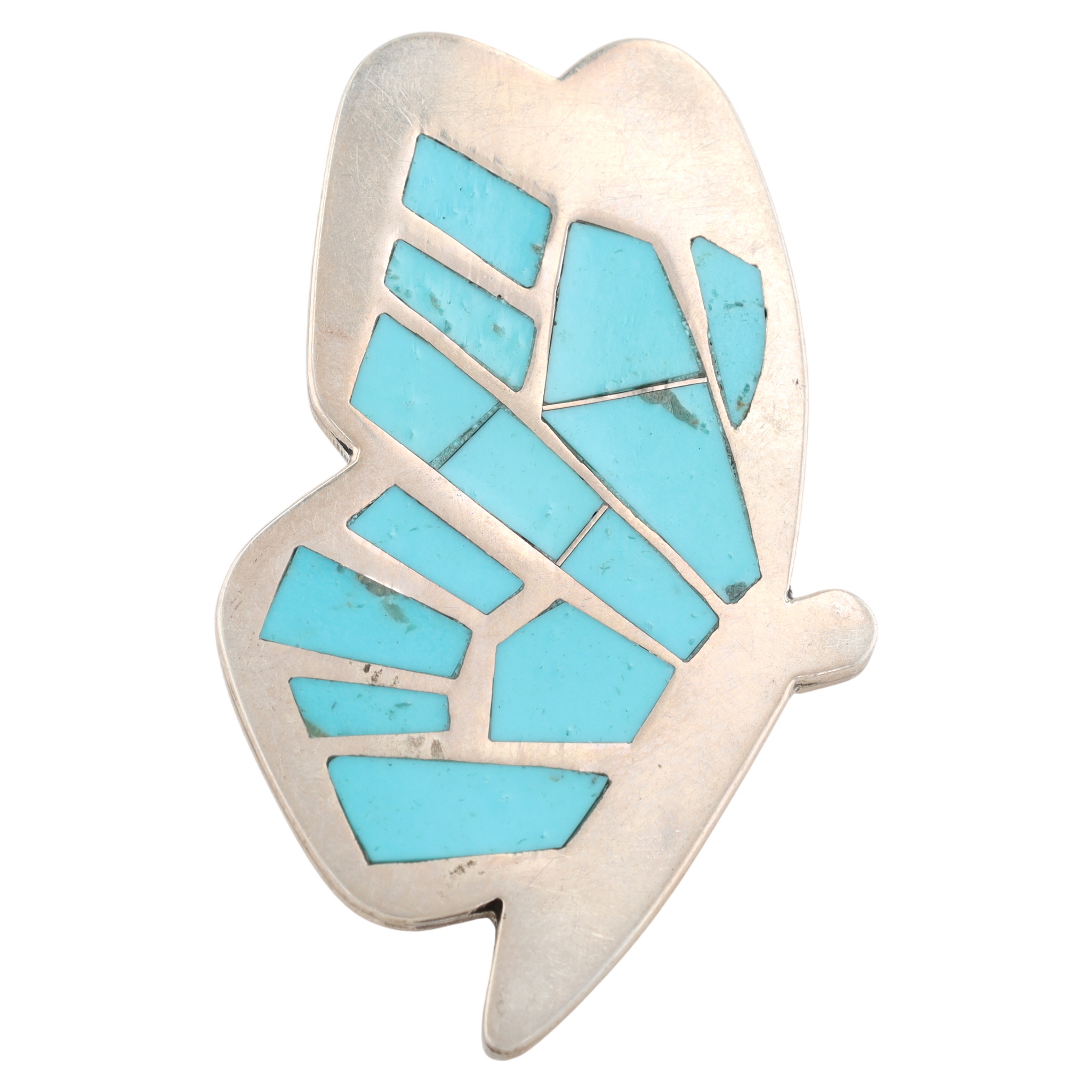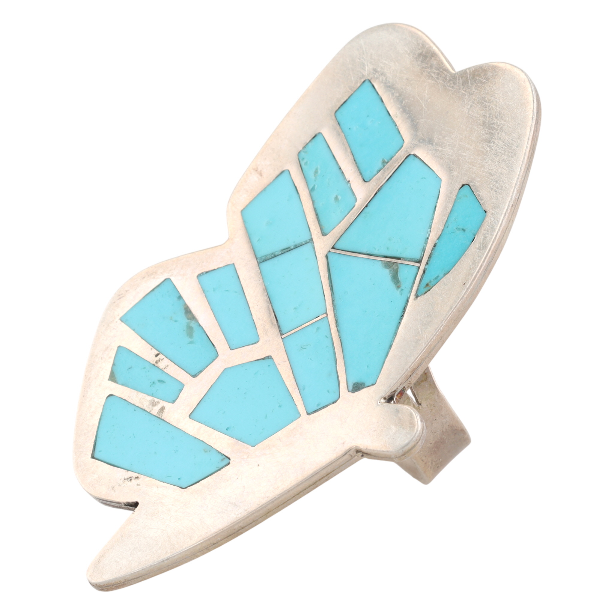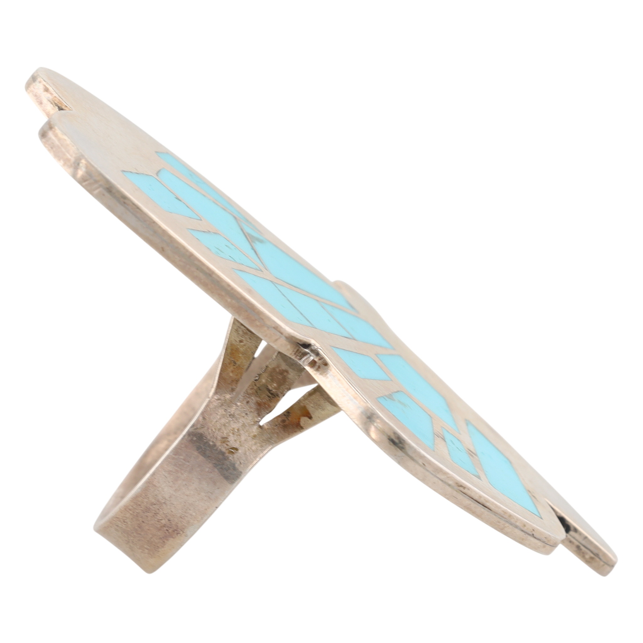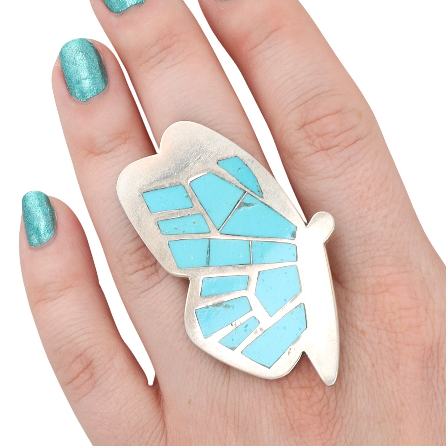 Gerard Burns Sr. Zuni Native American Sterling Silver Turquoise Inlay Butterfly Ring