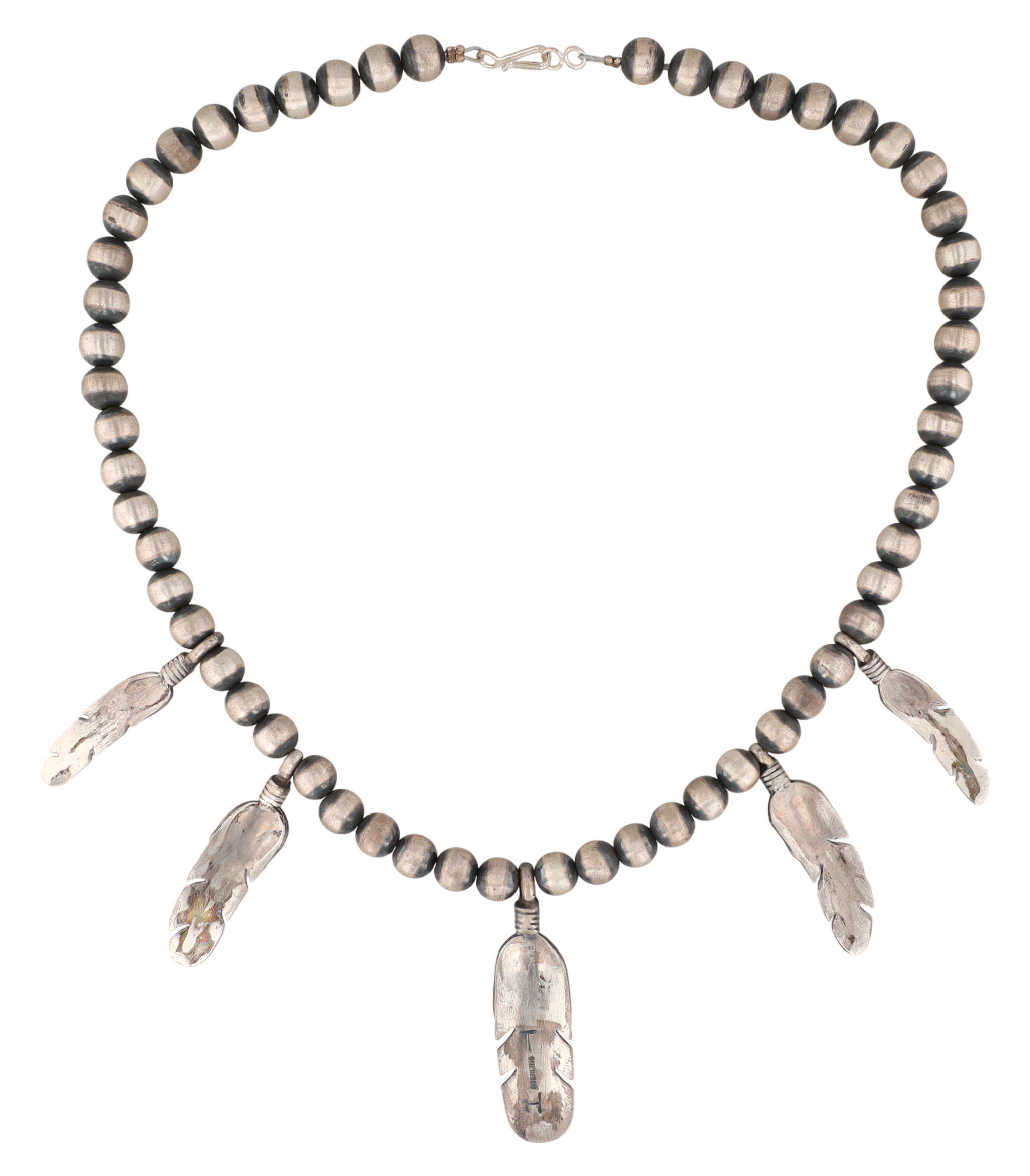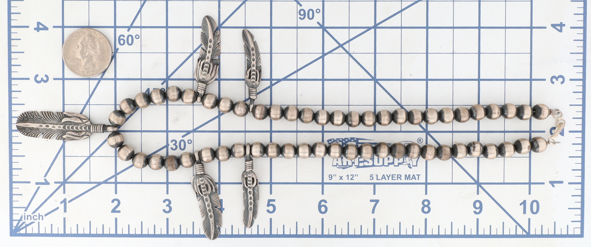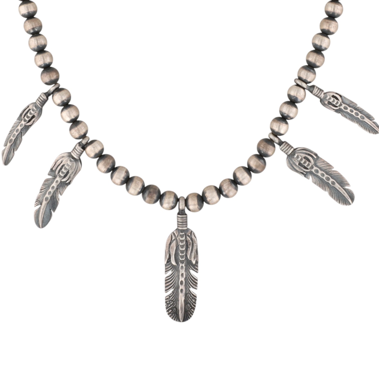 Lorenzo James Sterling Navajo Pearls Feather Pendant Necklace