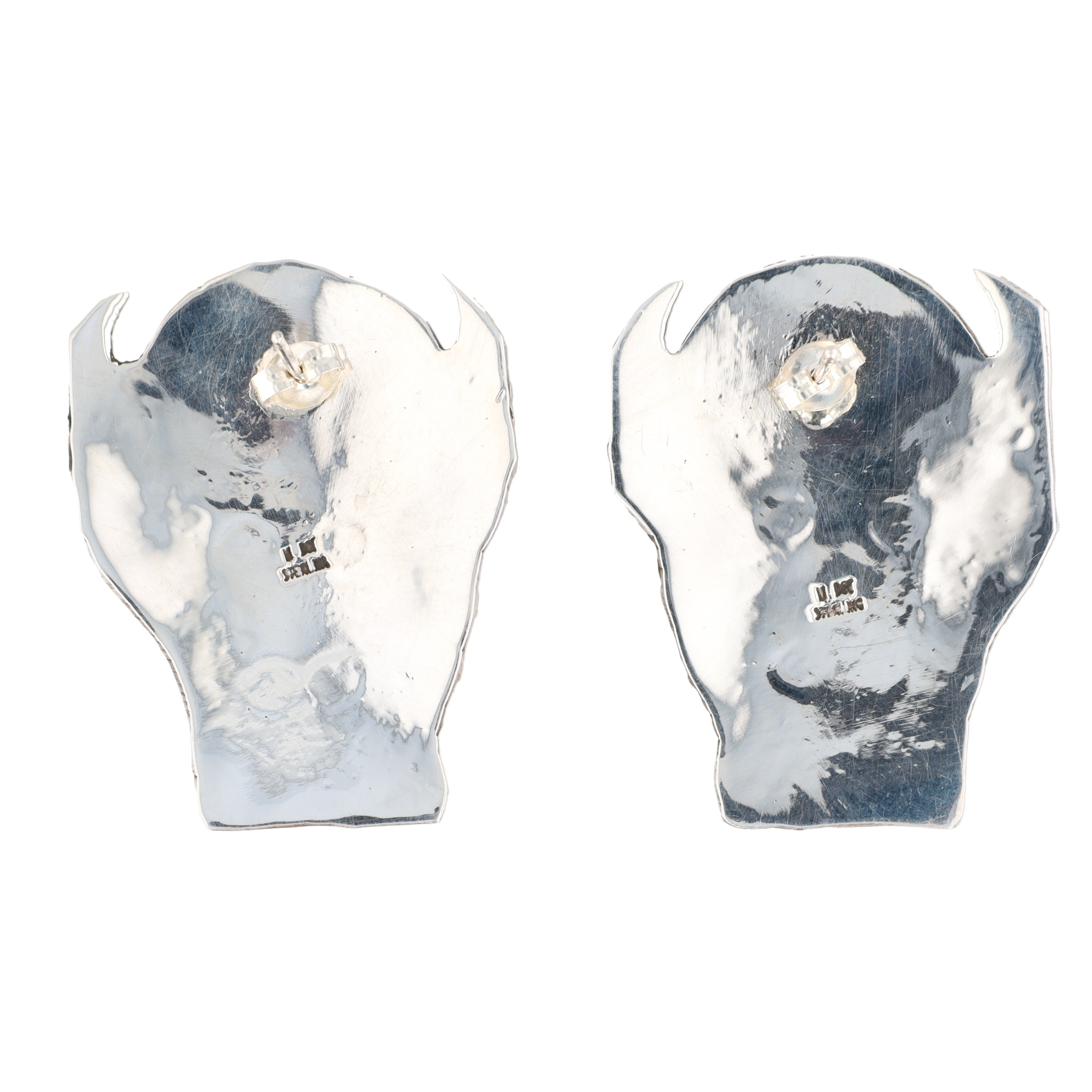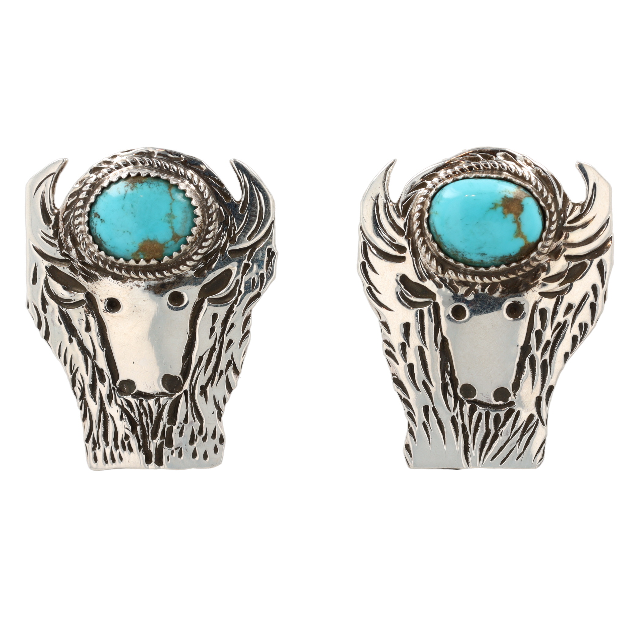 Lloyd Becenti Navajo Sterling Silver Turquoise Buffalo Head Earrings