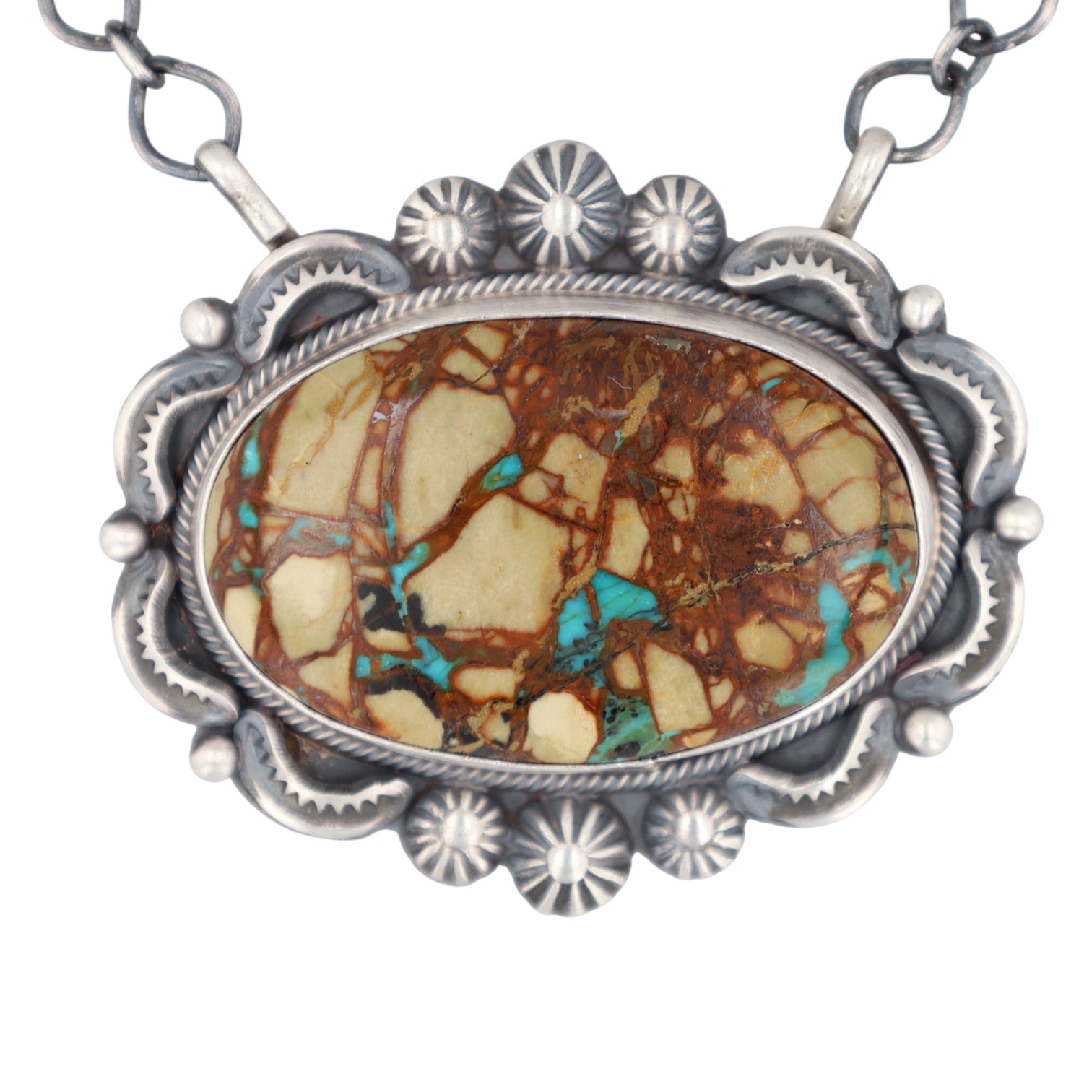 Navajo Sterling Silver and Sonoran Gold Turquoise Necklace by Bennie Ramone
