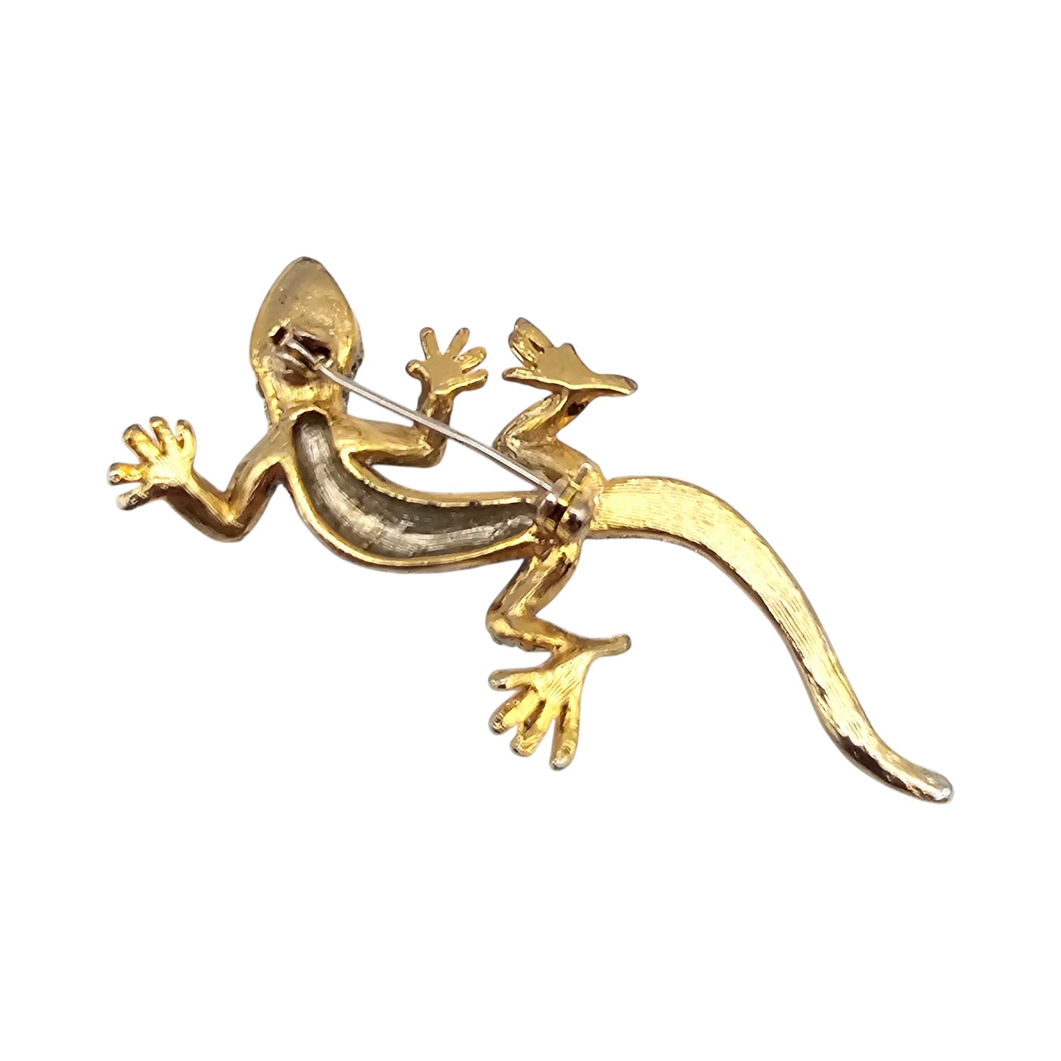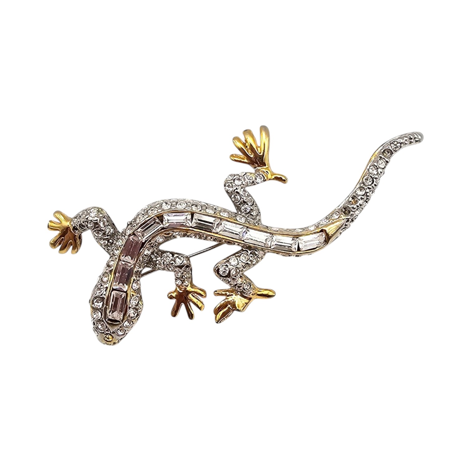 Clear Rhinestone Gold Tone Lizard Brooch