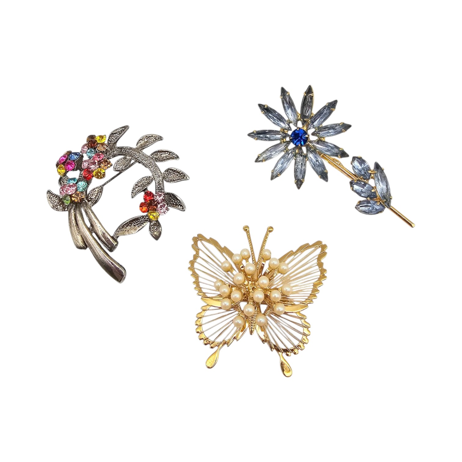 Vintage Lot Faux Pearl Rhinestone Brooches