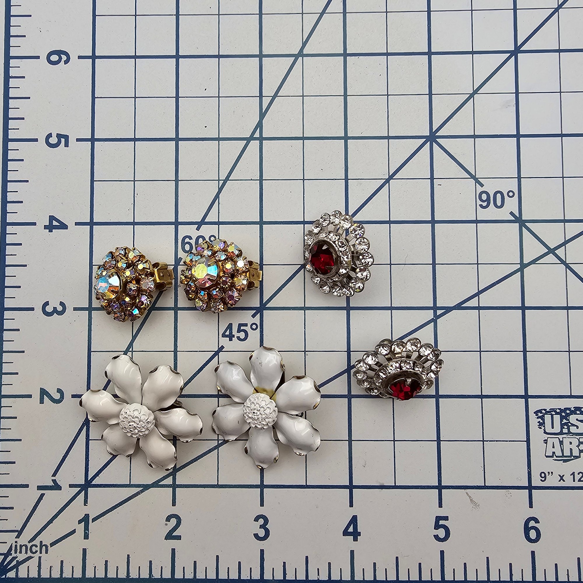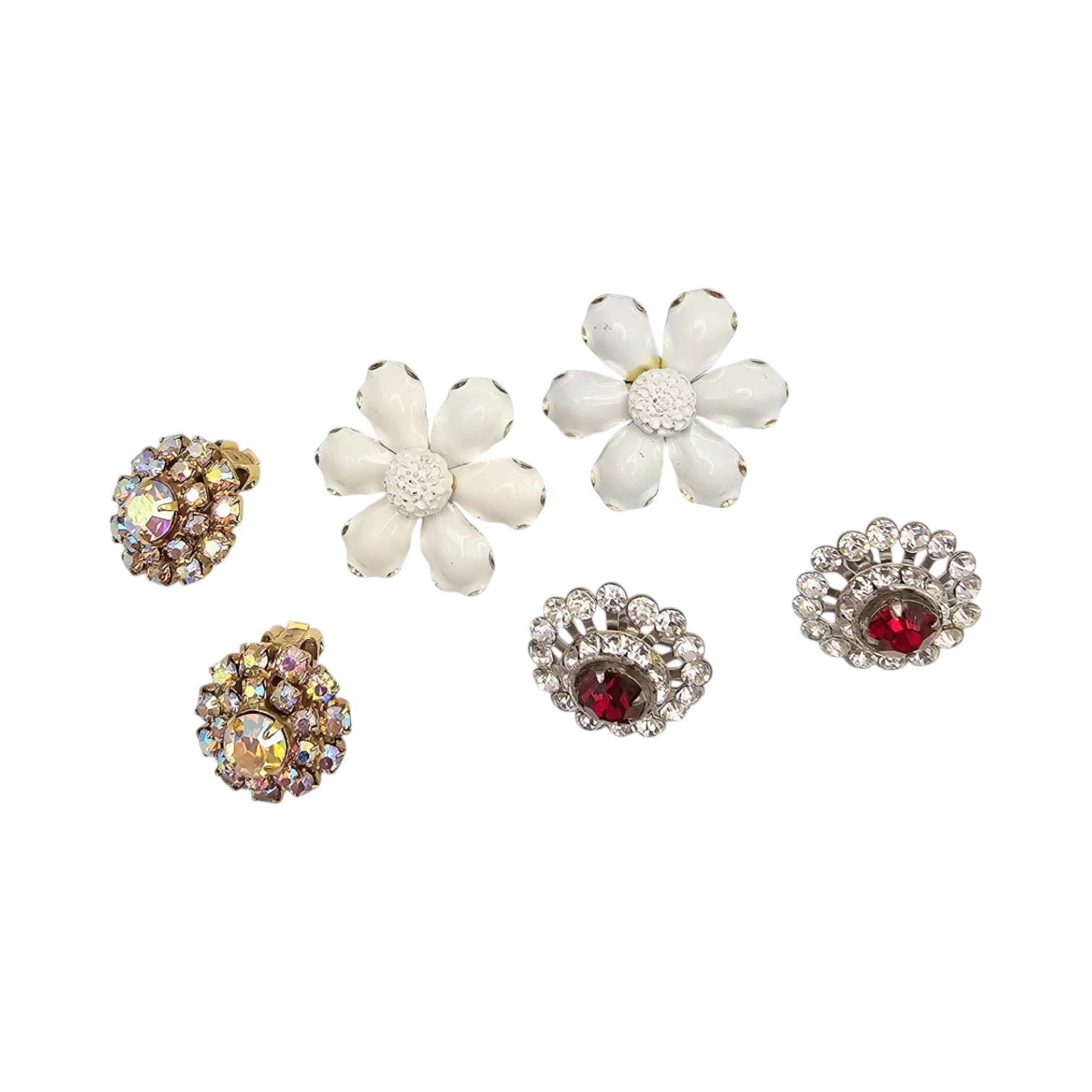 Vintage Lot 3 Enamel Rhinestone Earrings