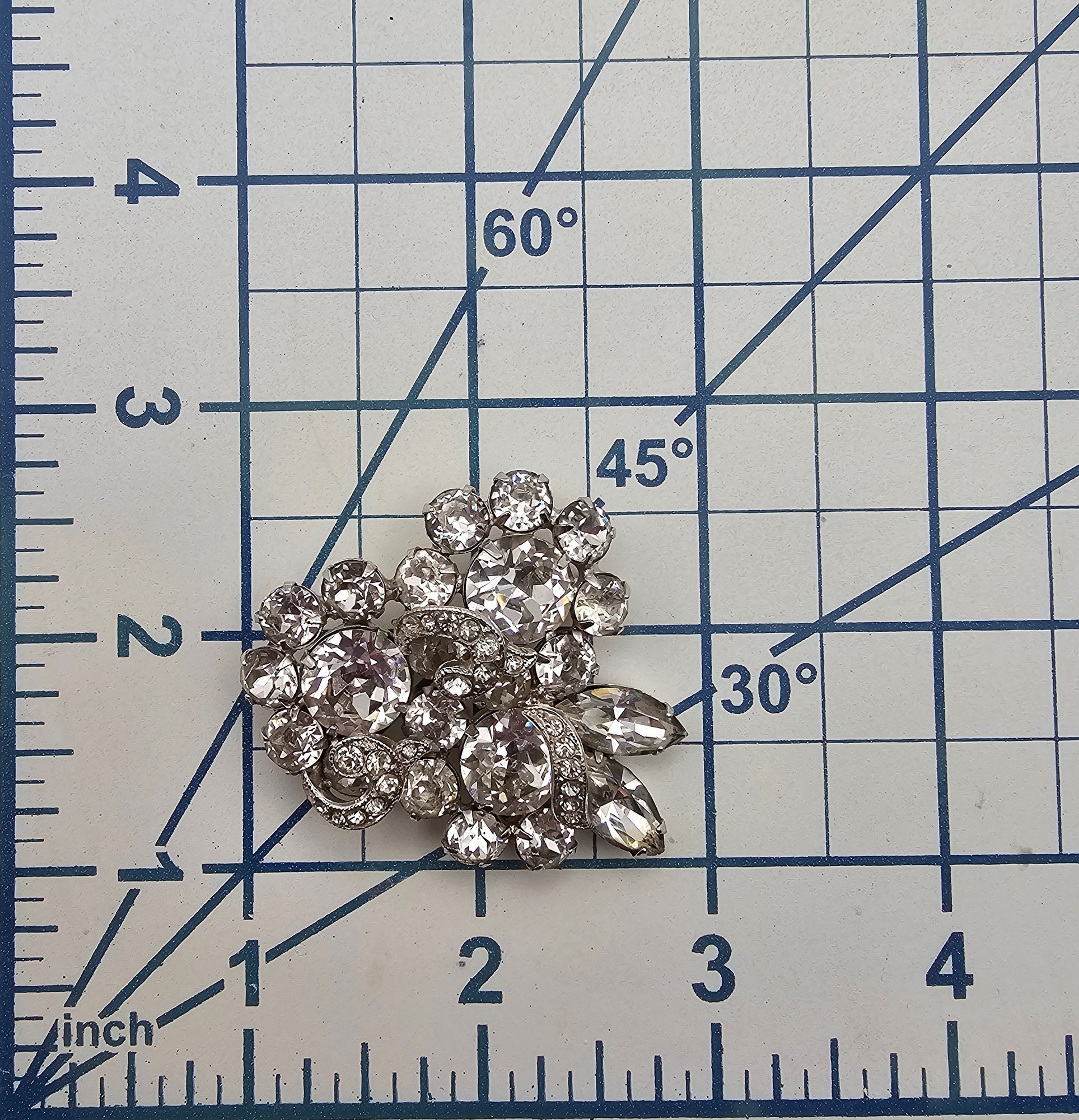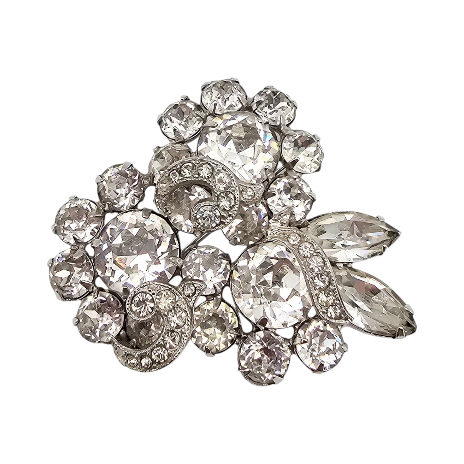 Eisenberg Rhinestone Layered Silver Tone Brooch