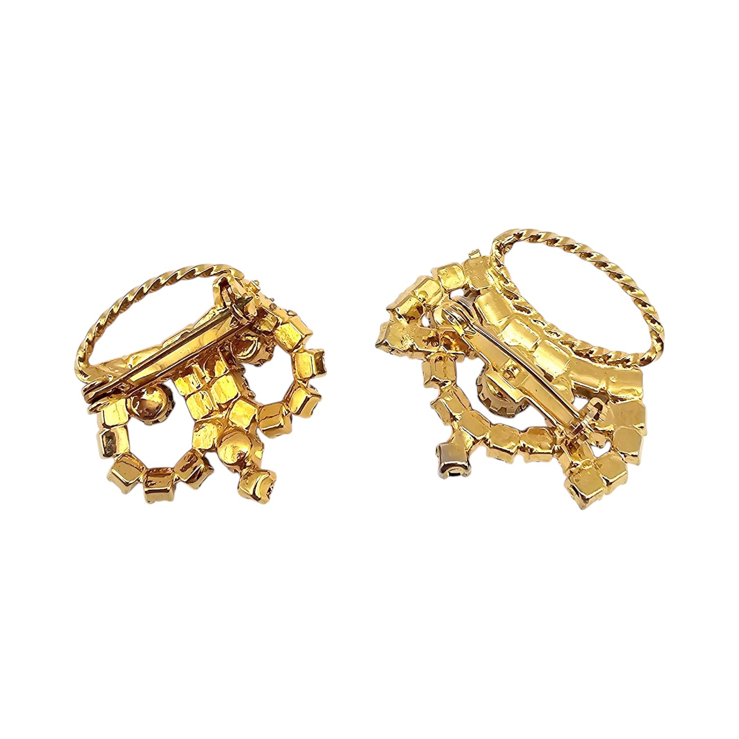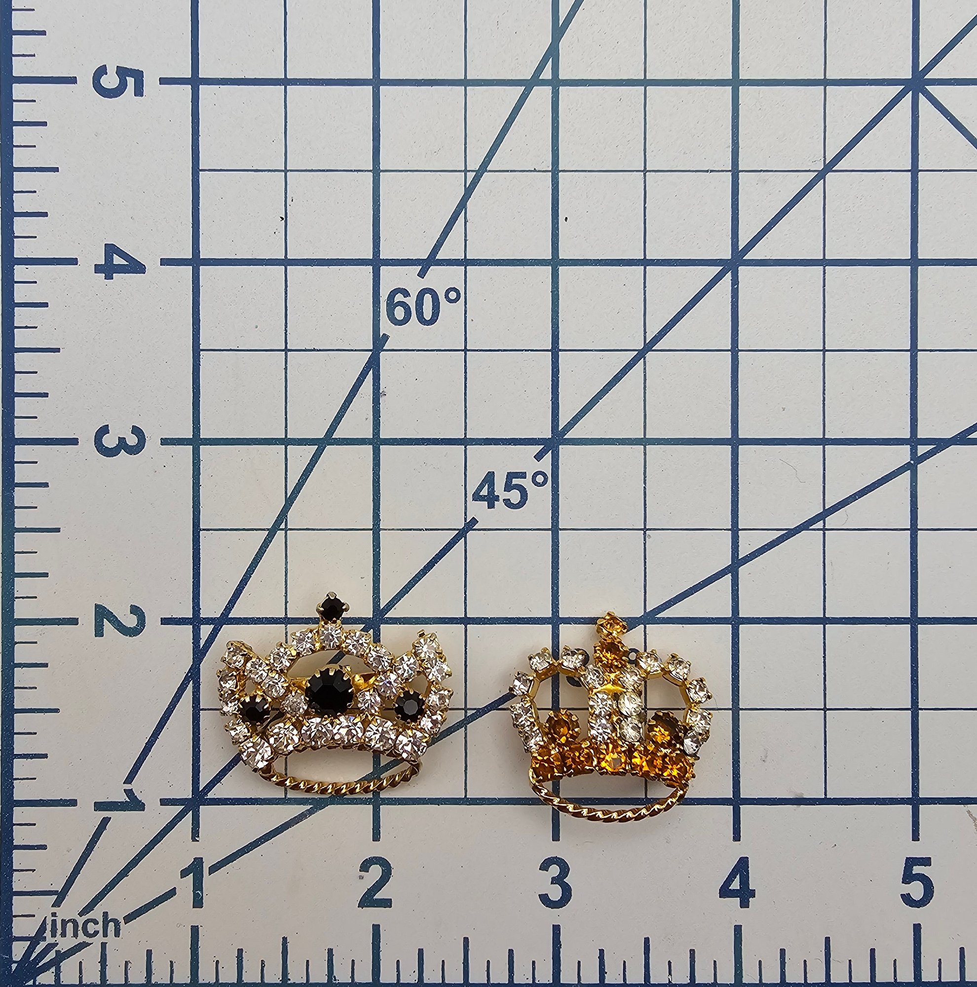 Lot 2 Yellow Black Clear Rhinestone Gold Tone Crown Brooches