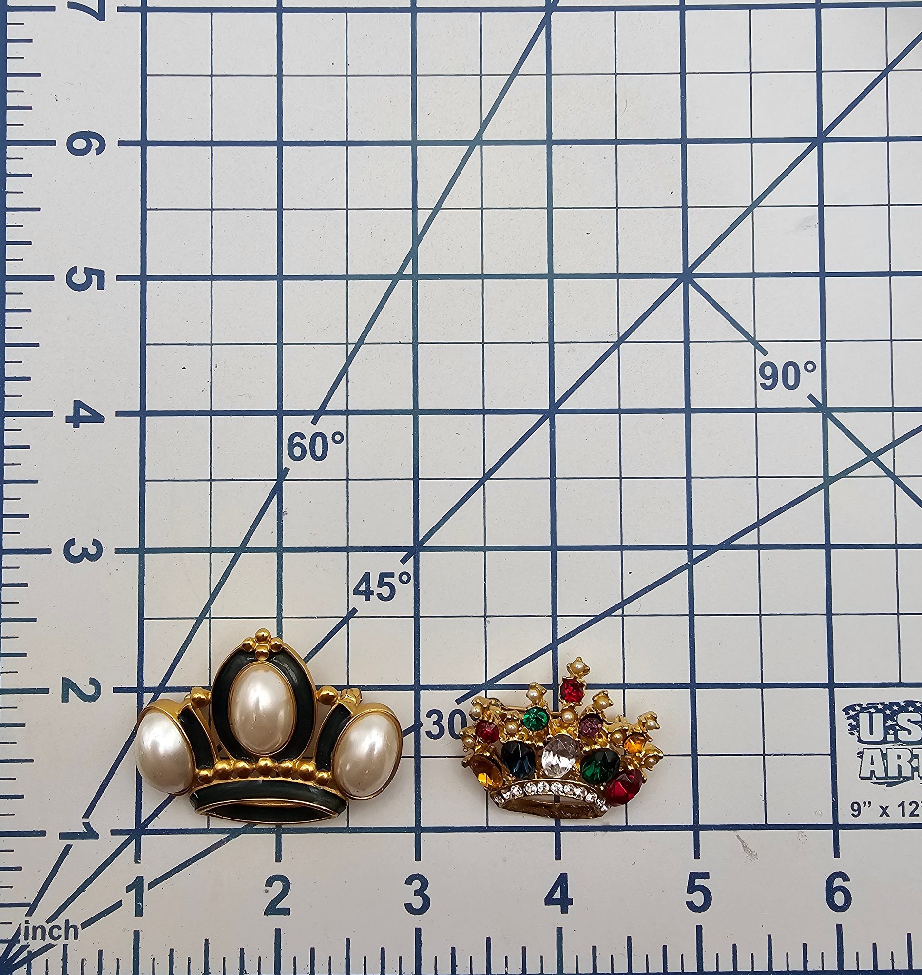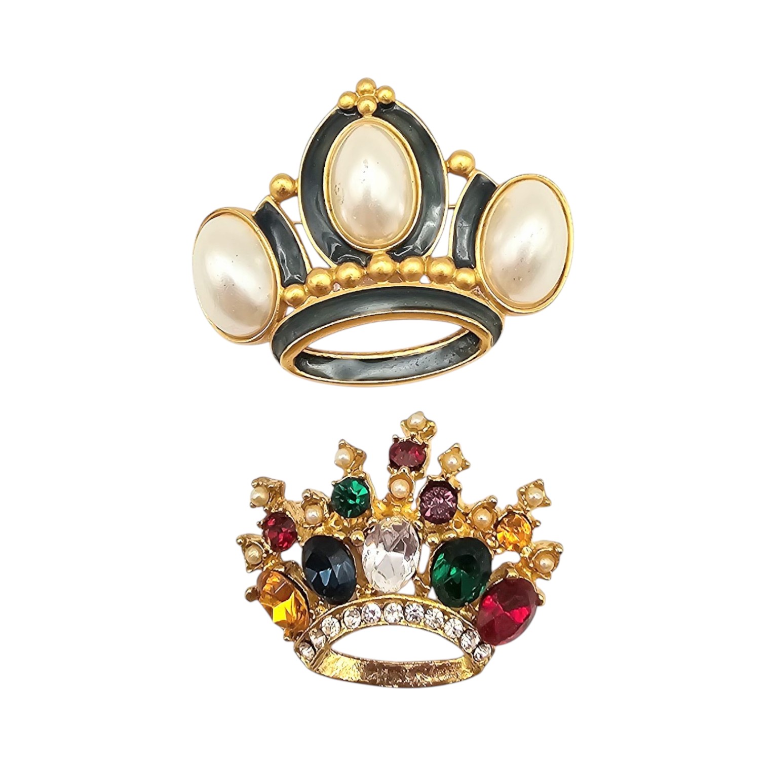 Lot 2 Faux Pearl Enamel Rhinestone Crown Brooches