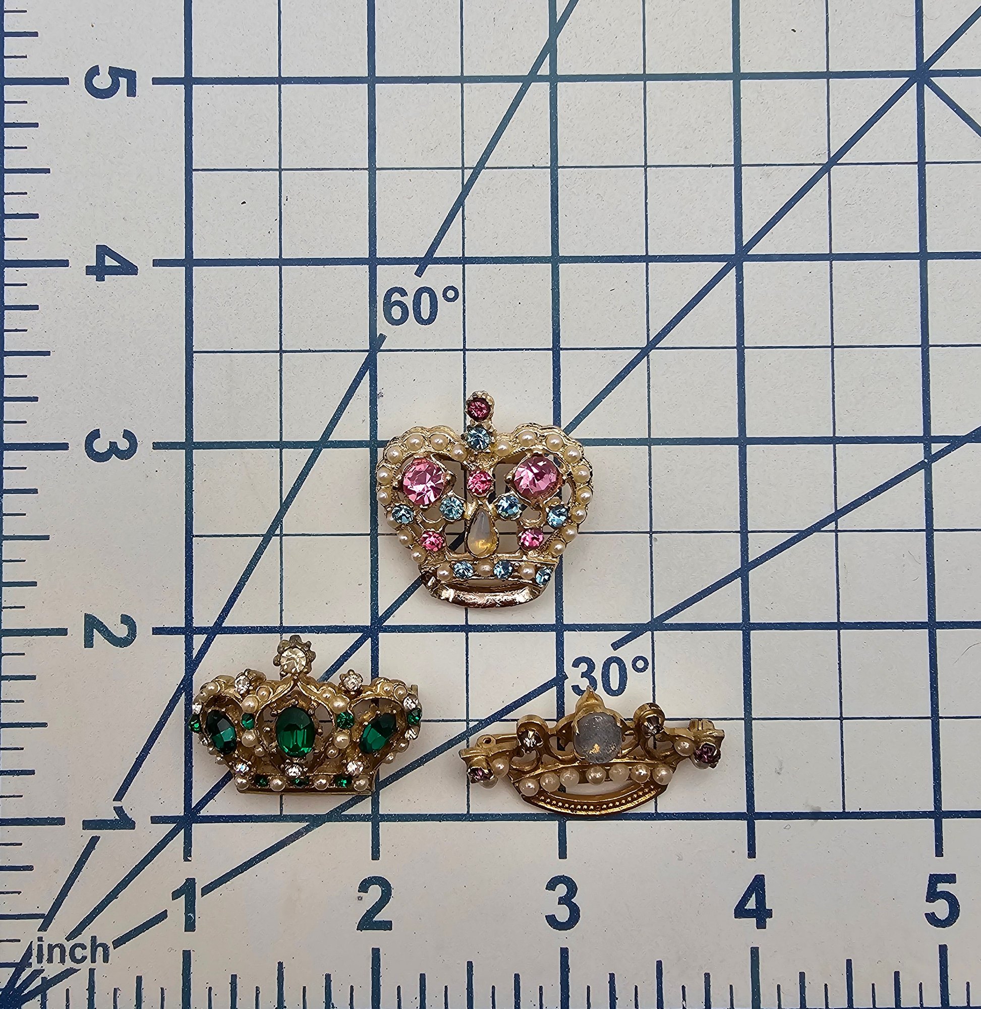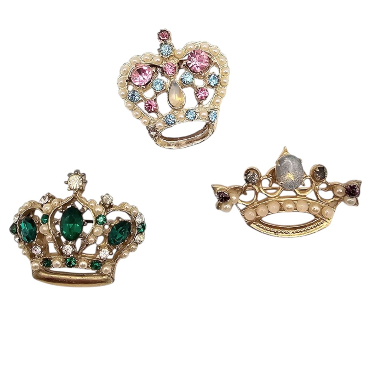 Vintage Lot Faux Pearl Rhinestone Crown Brooches