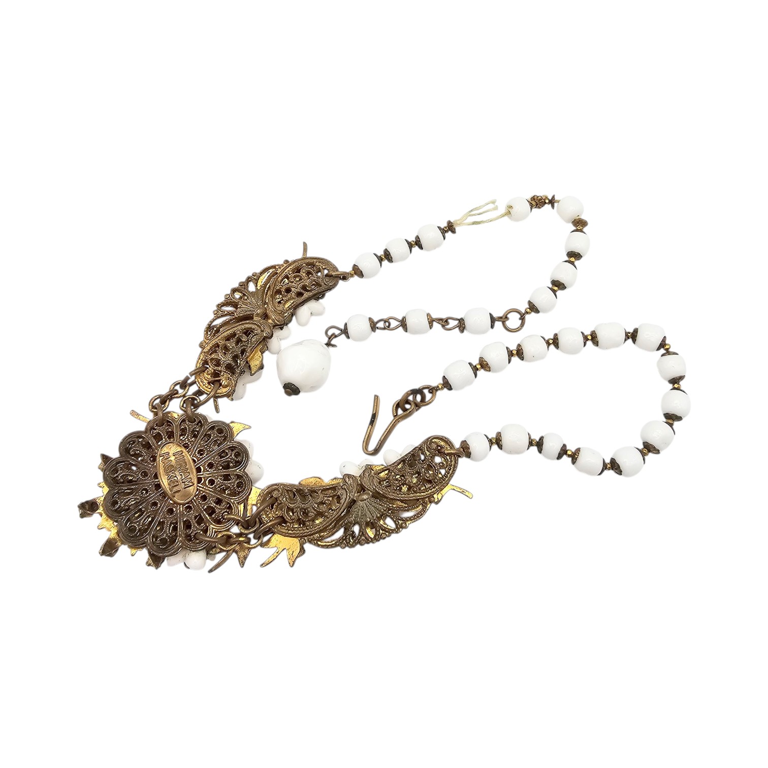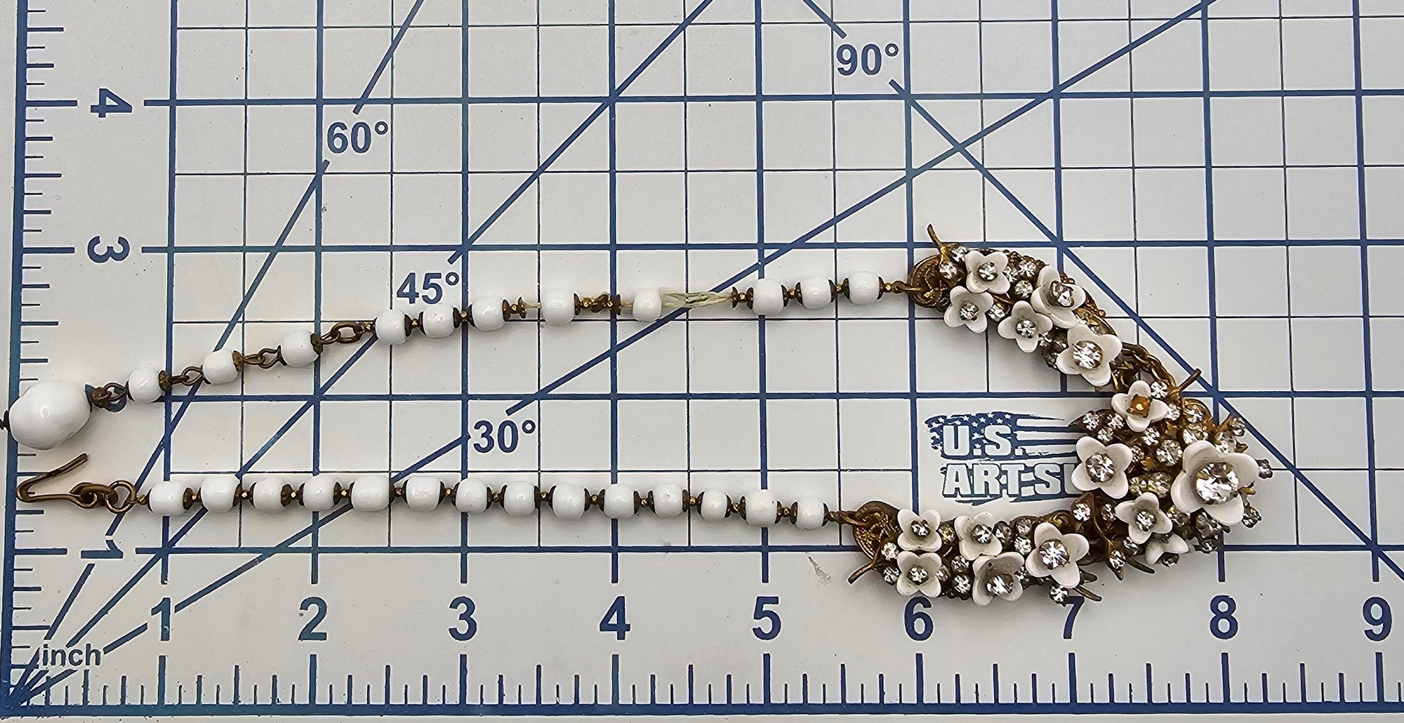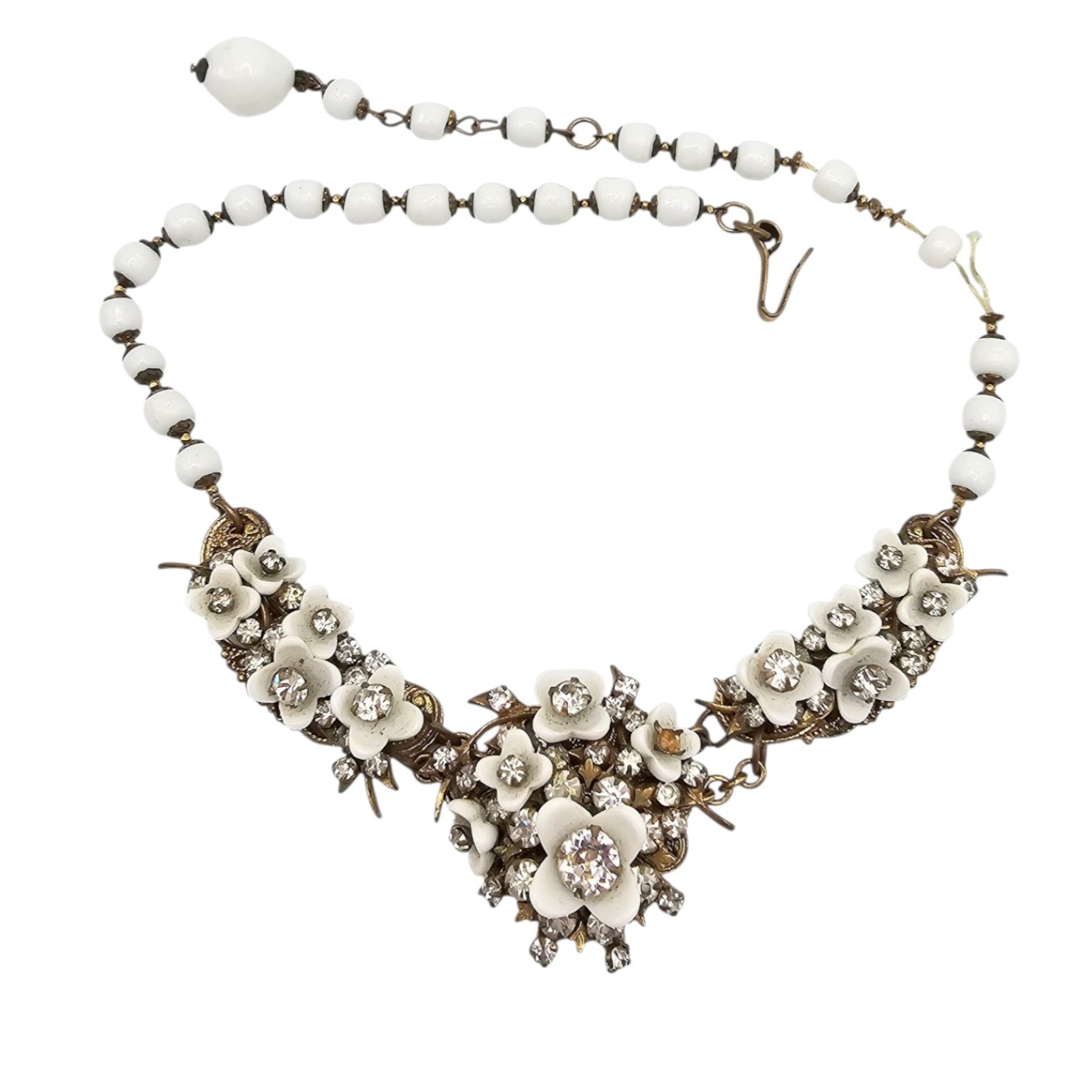 Miriam Haskell White Rhinestone Gold Tone Floral Necklace As is