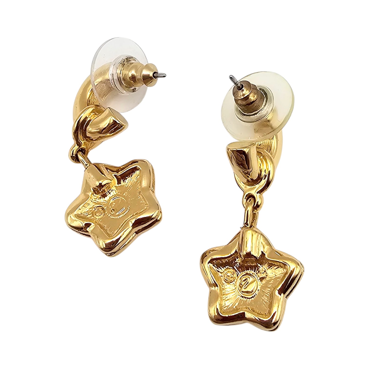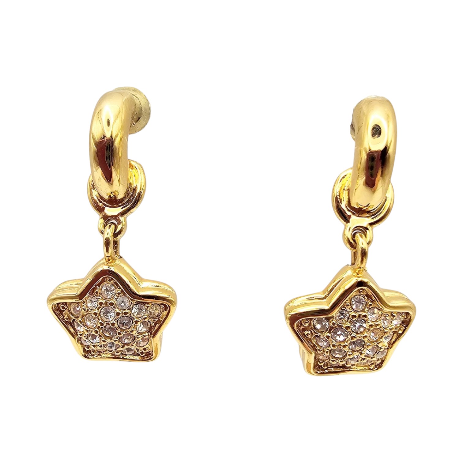 Swarovski Crystal Gold Tone Star Drop Dangle Earrings
