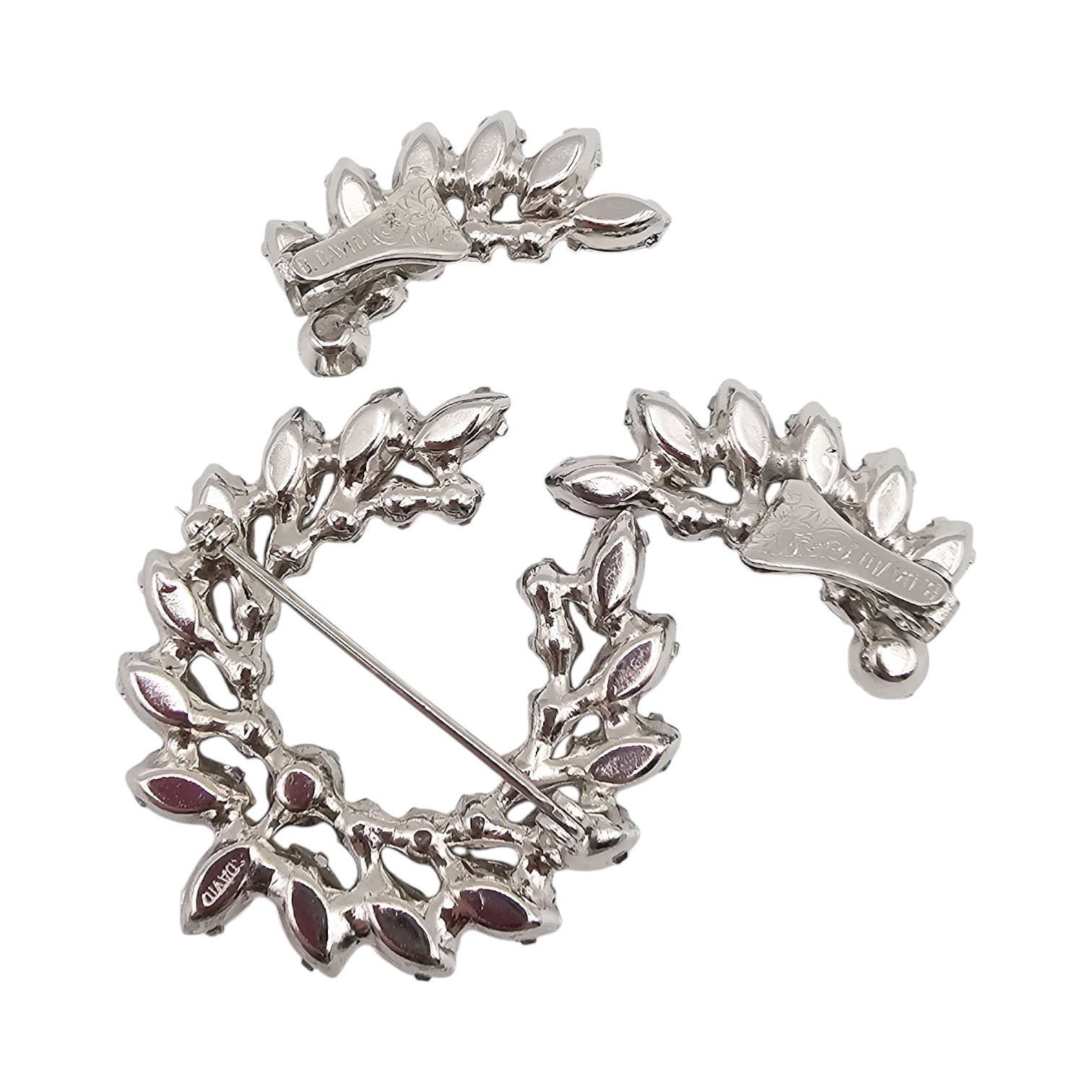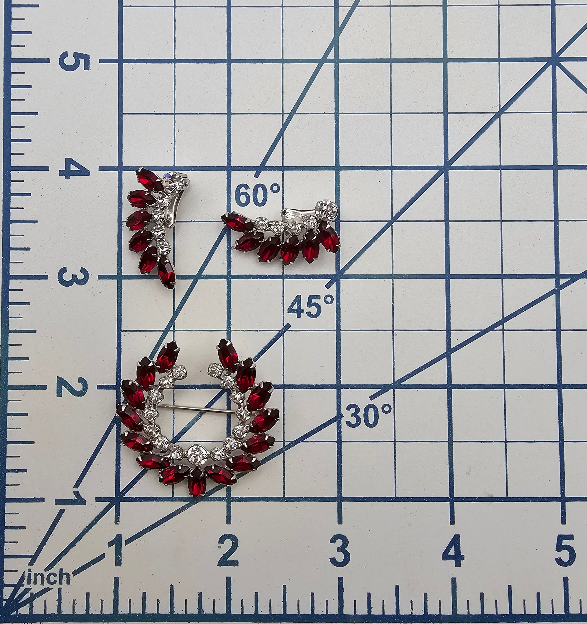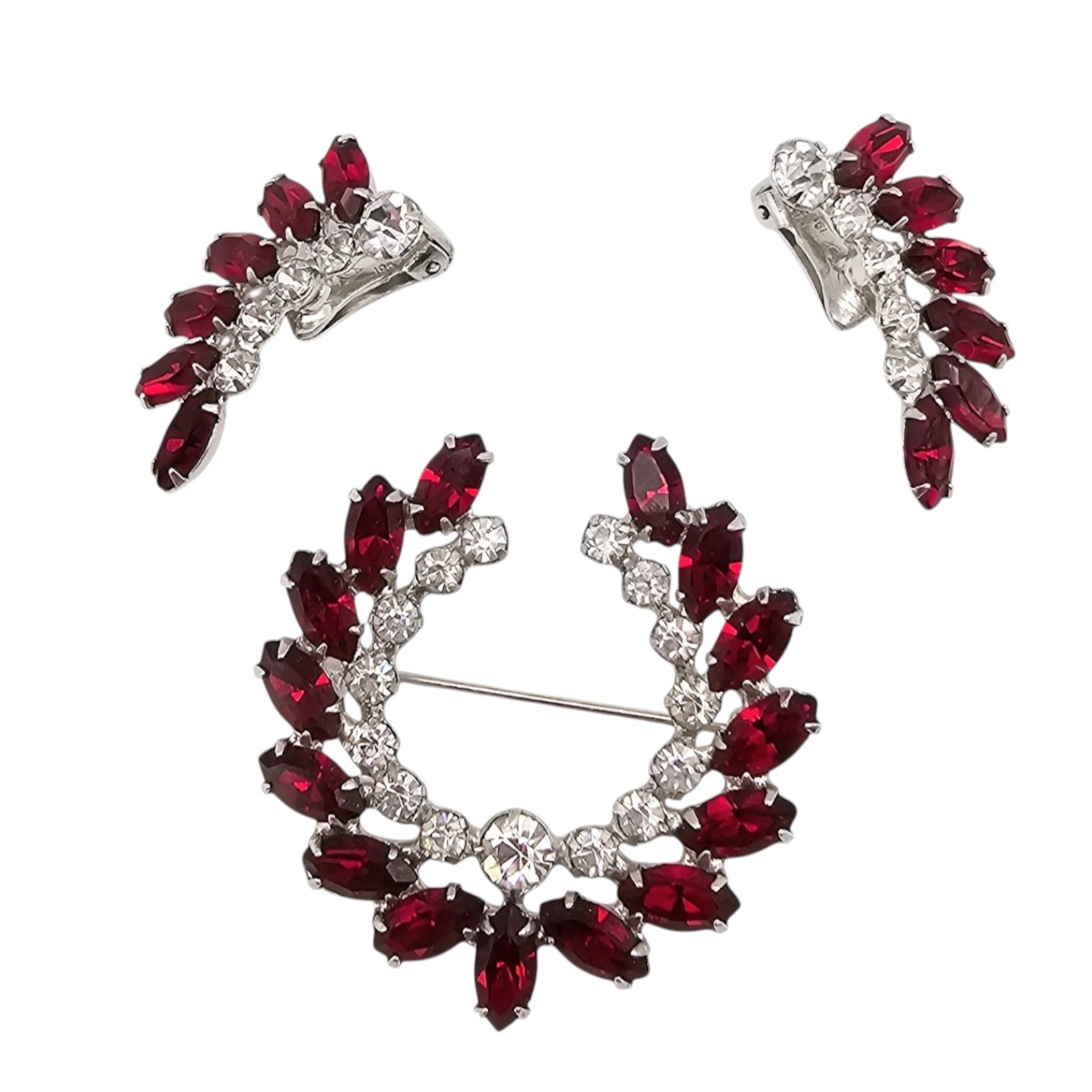 B David Red Clear Rhinestone Wreath Brooch Earrings Set